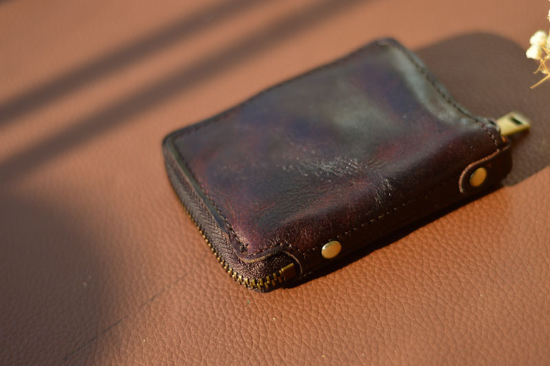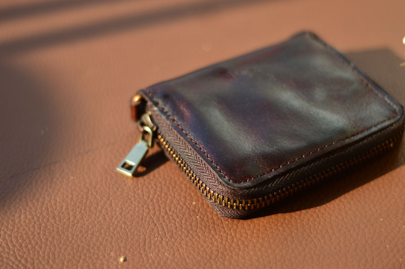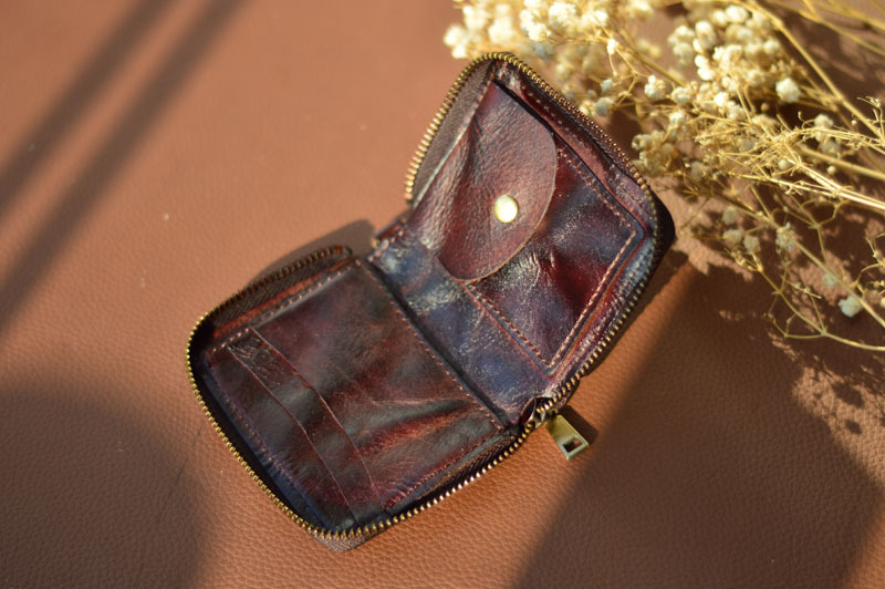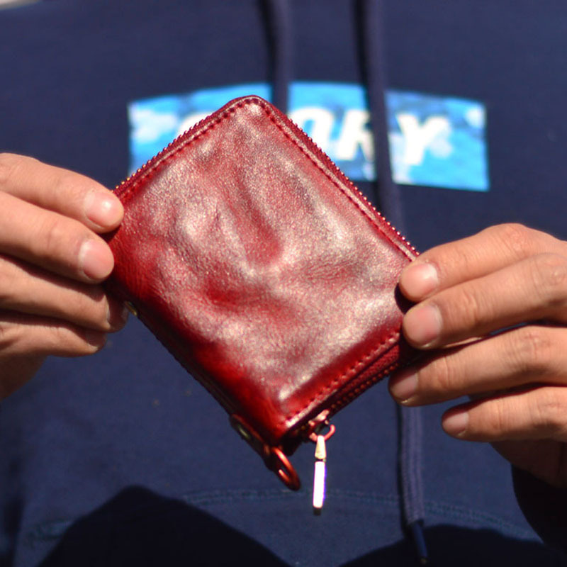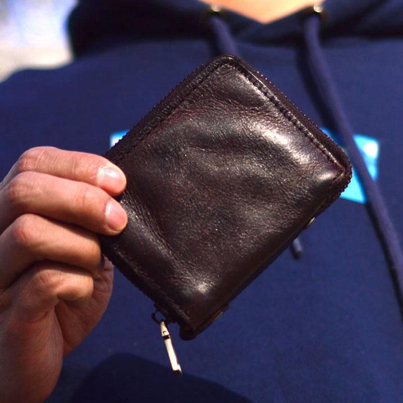 남성 정품 가죽 지갑 지퍼 짧은 수직 지갑 작은 수제 야채 태닝 순수 탑 레이어 Cowhide 유행 빈티지스토어 가기