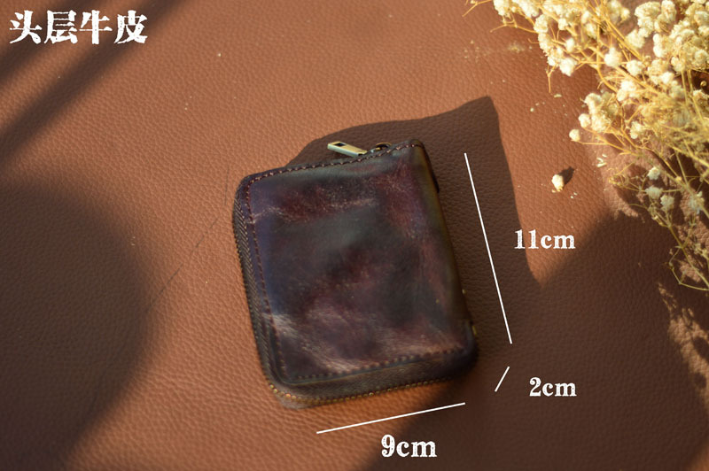 남성 정품 가죽 지갑 지퍼 짧은 수직 지갑 작은 수제 야채 태닝 순수 탑 레이어 Cowhide 유행 빈티지