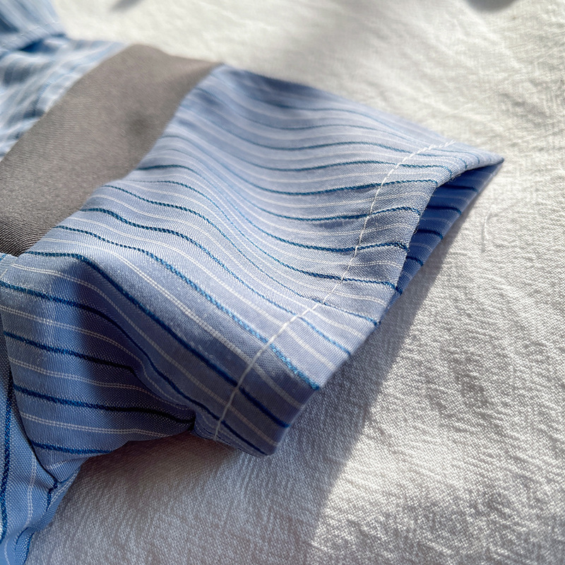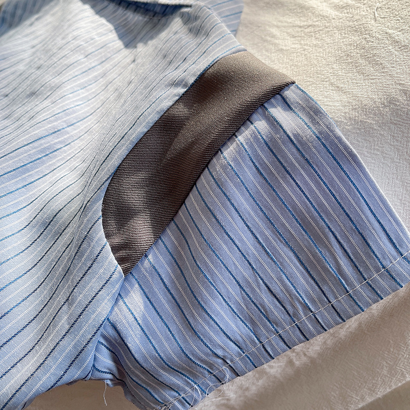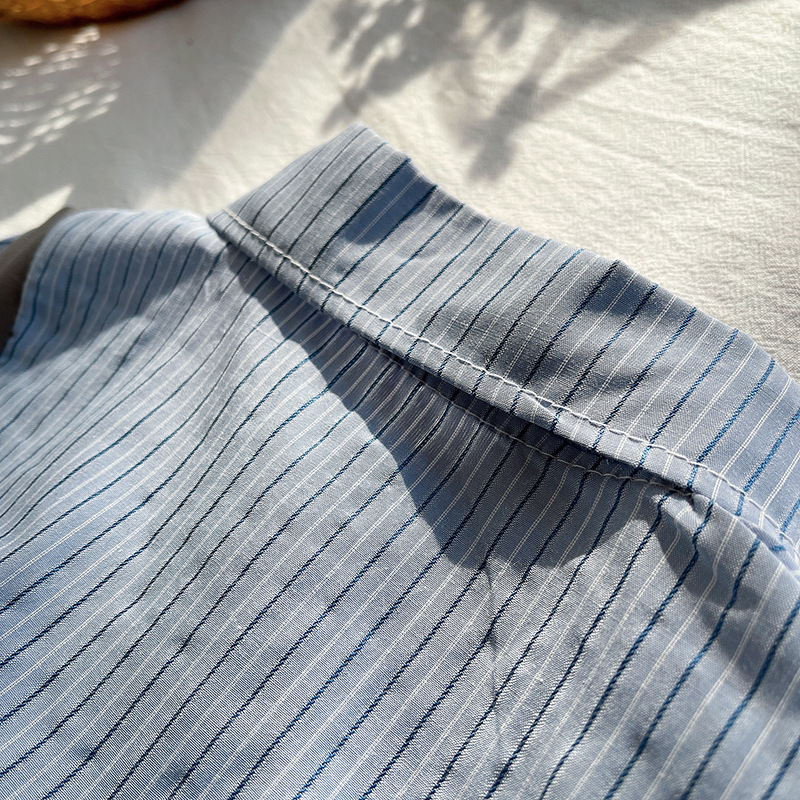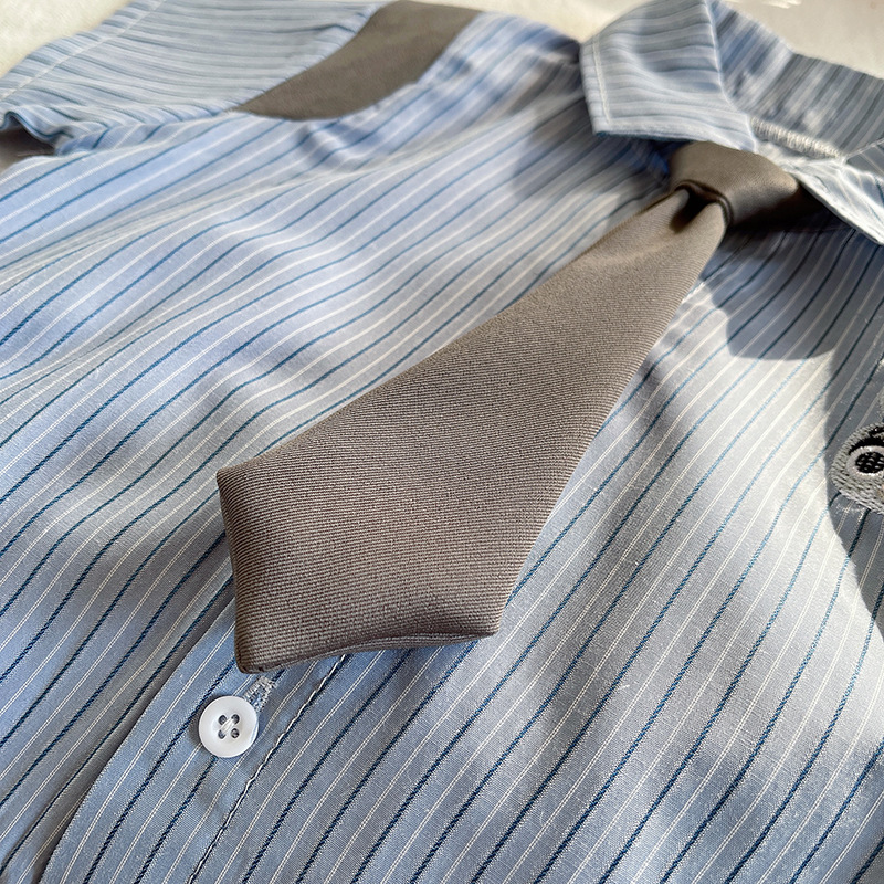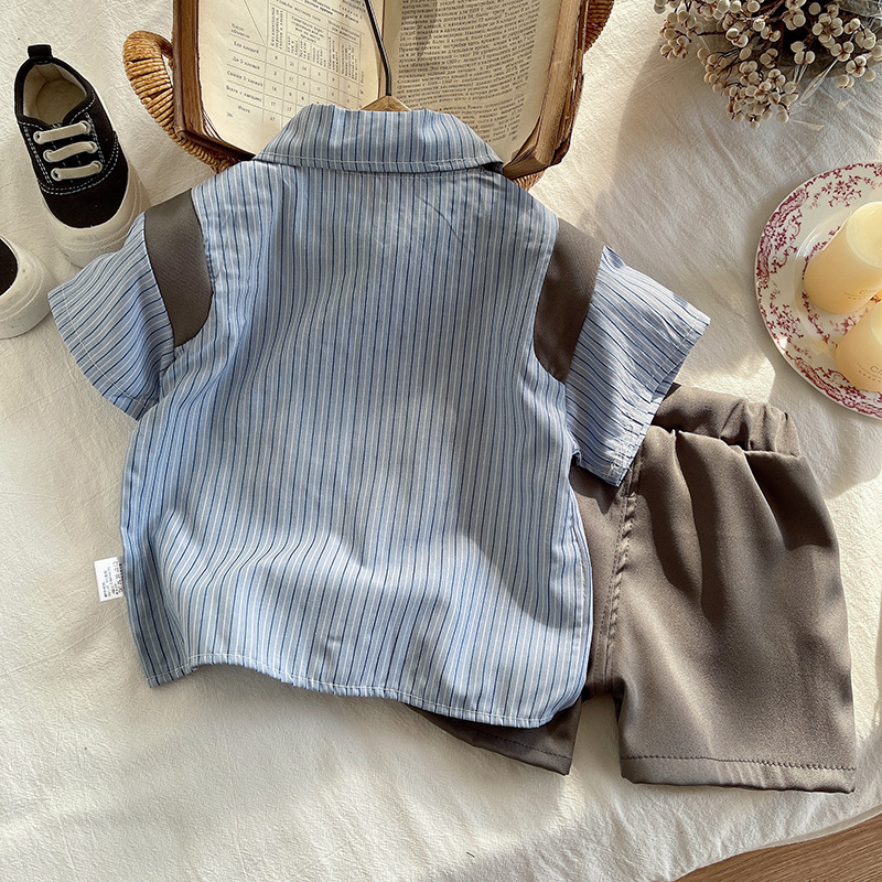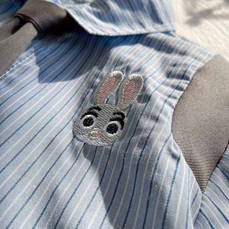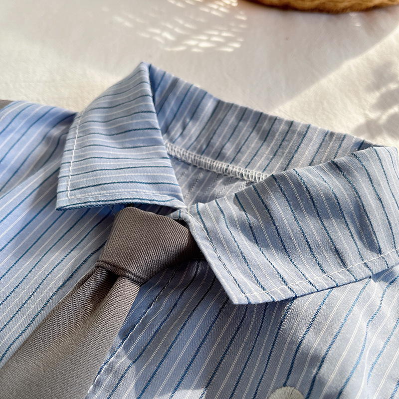 토끼 경찰관] 소년 셔츠 세트 2024 여름 새로운 줄무늬 대학 토끼 자수 2 피스 도매