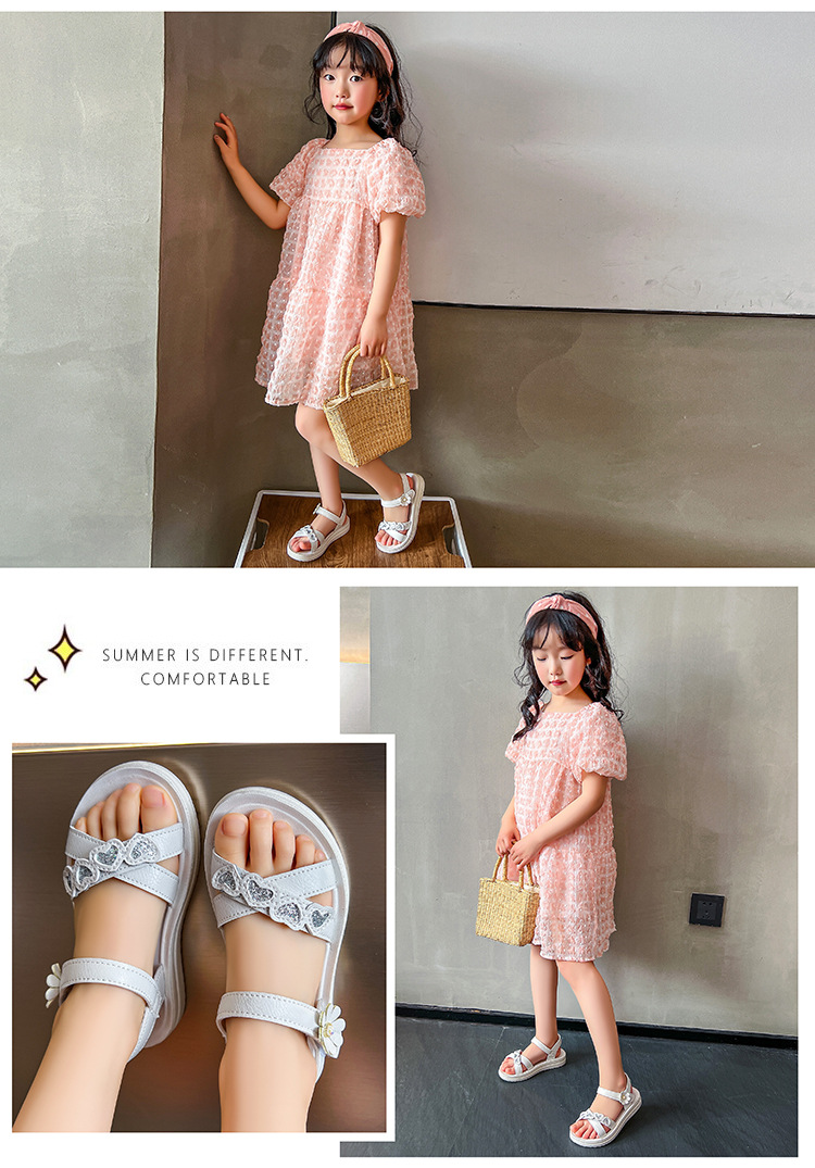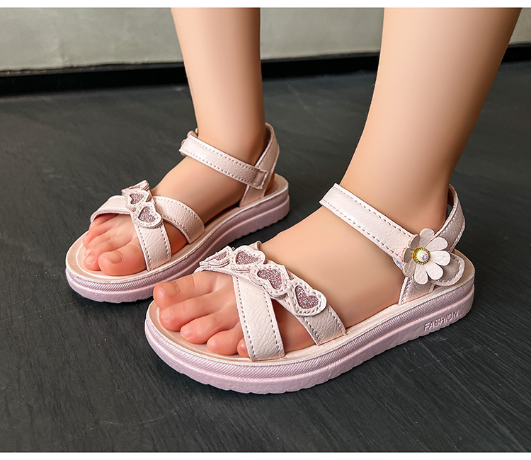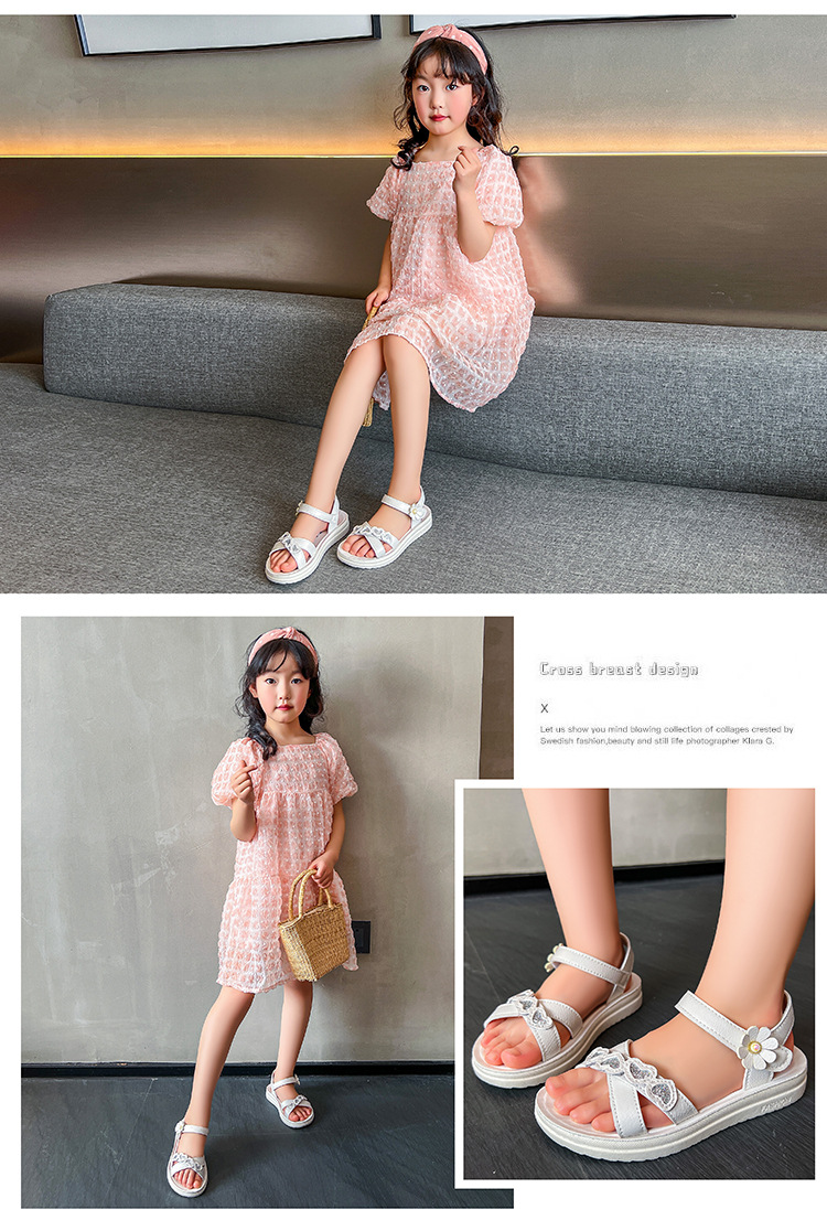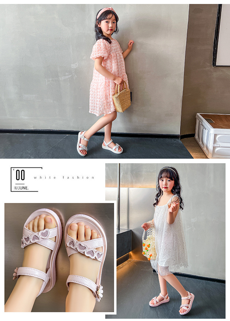 소녀 샌들 2025 여름 큰 아이들과 어린 소녀 소녀 소녀 보물 공주 신발을위한 새로운 부드러운 밑창 비치 신발스토어 가기