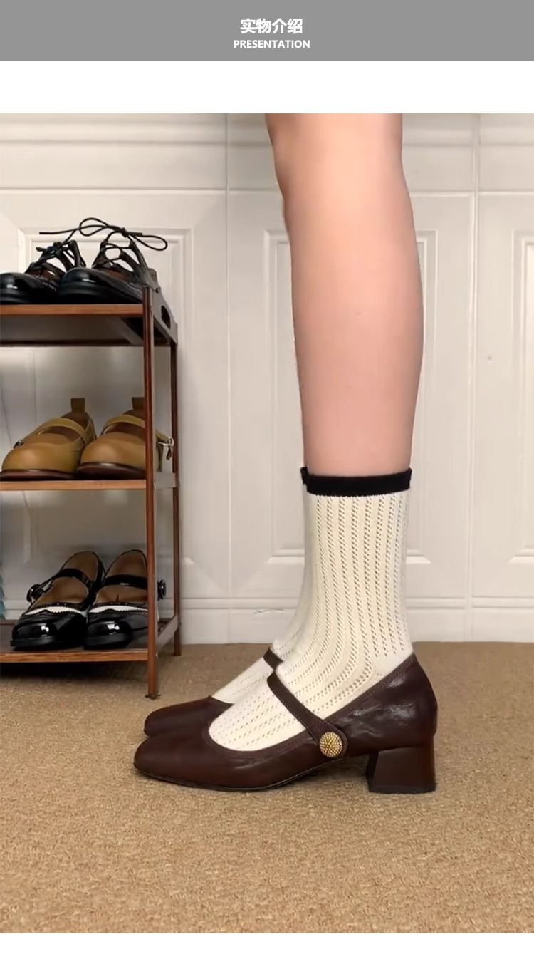 양가죽 버전 ~ 정품 가죽 복고풍 두꺼운 힐 Mary Jane 신발 여성의 2025 새로운 한 줄 버클 얕은 입 신발 작은 가죽 신발스토어 가기