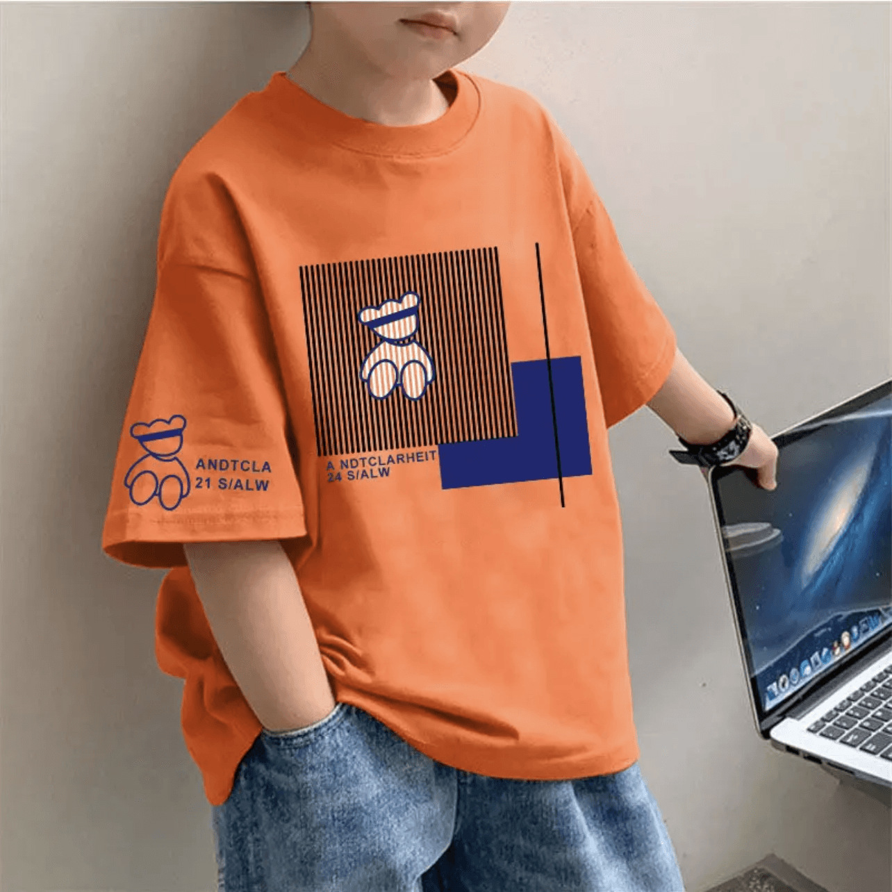 • 오렌지라인 곰 [소맷단에 큰 그림이 인쇄되어 있음]
