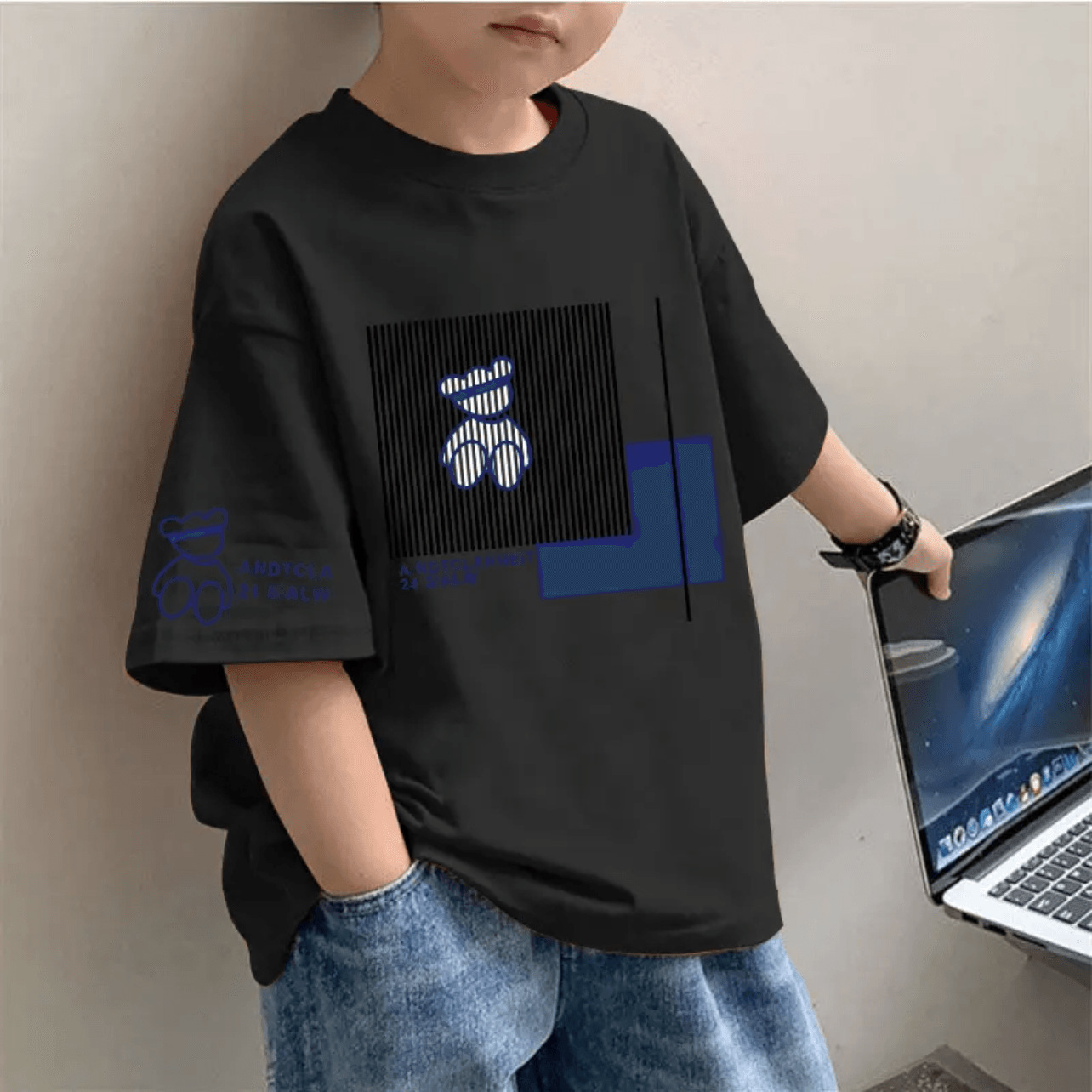 보이즈 코튼 반팔 티셔츠 폭발성 인터넷 인기 패션 어린이 올매치 여름 반소매 느슨한 유행 학생 Ins스토어 가기