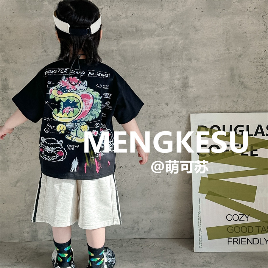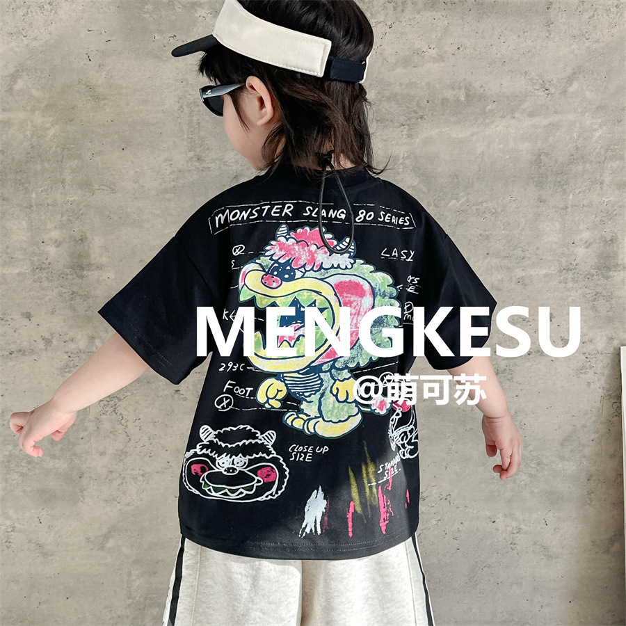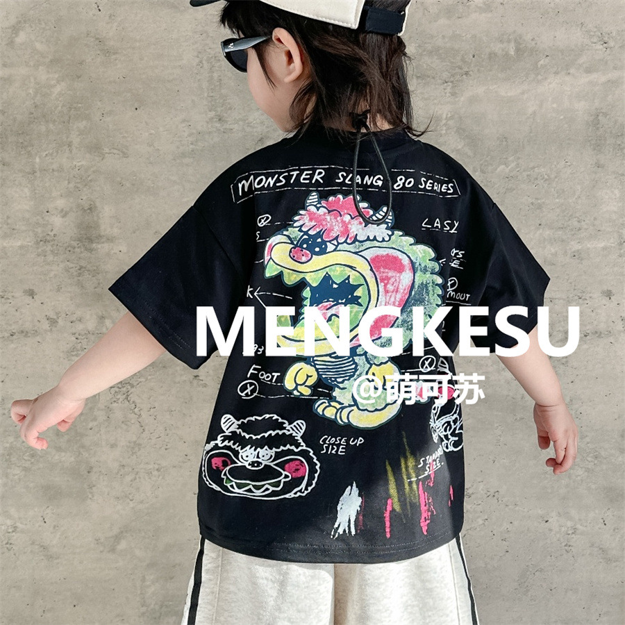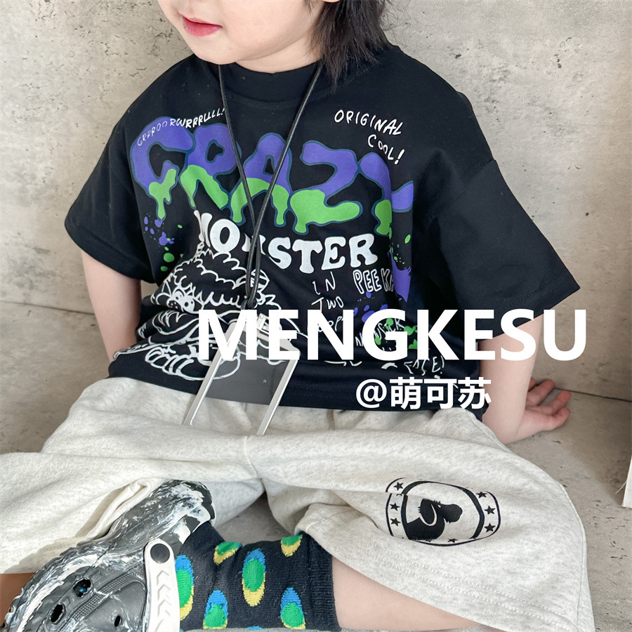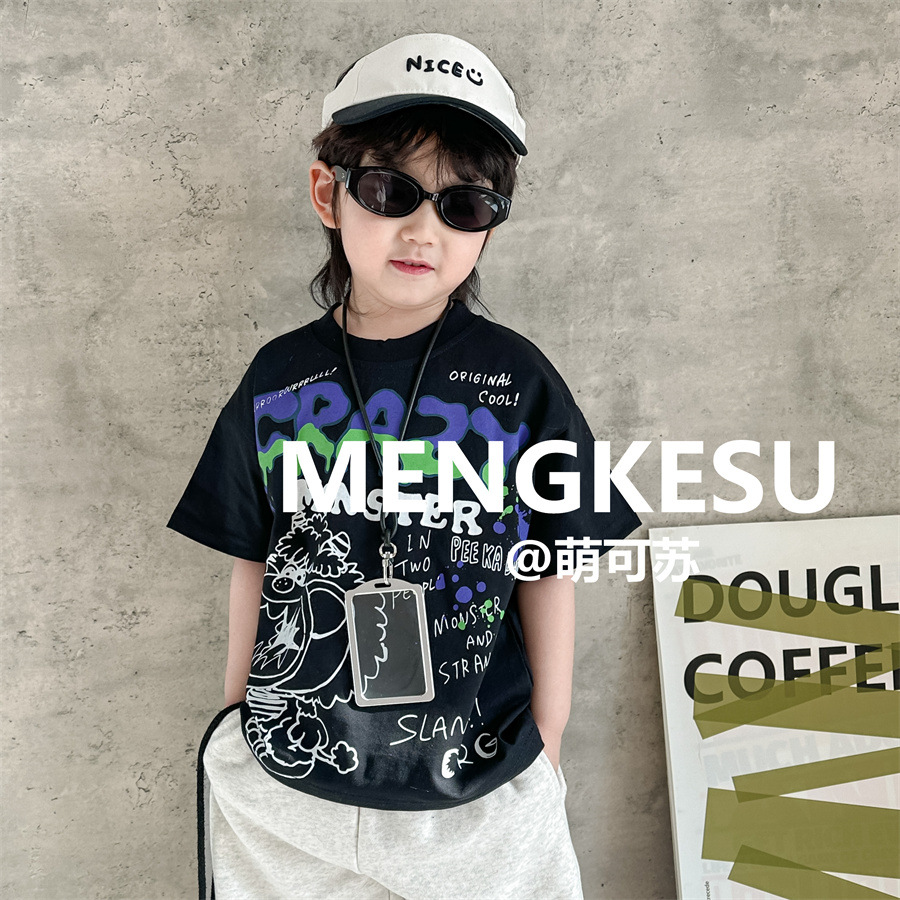 Moe Su Boys 반팔 티셔츠 2025 새로운 어린이 만화 티셔츠 여름 베이비 코튼 패션 브랜드 반소매 티셔츠 탑스토어 가기