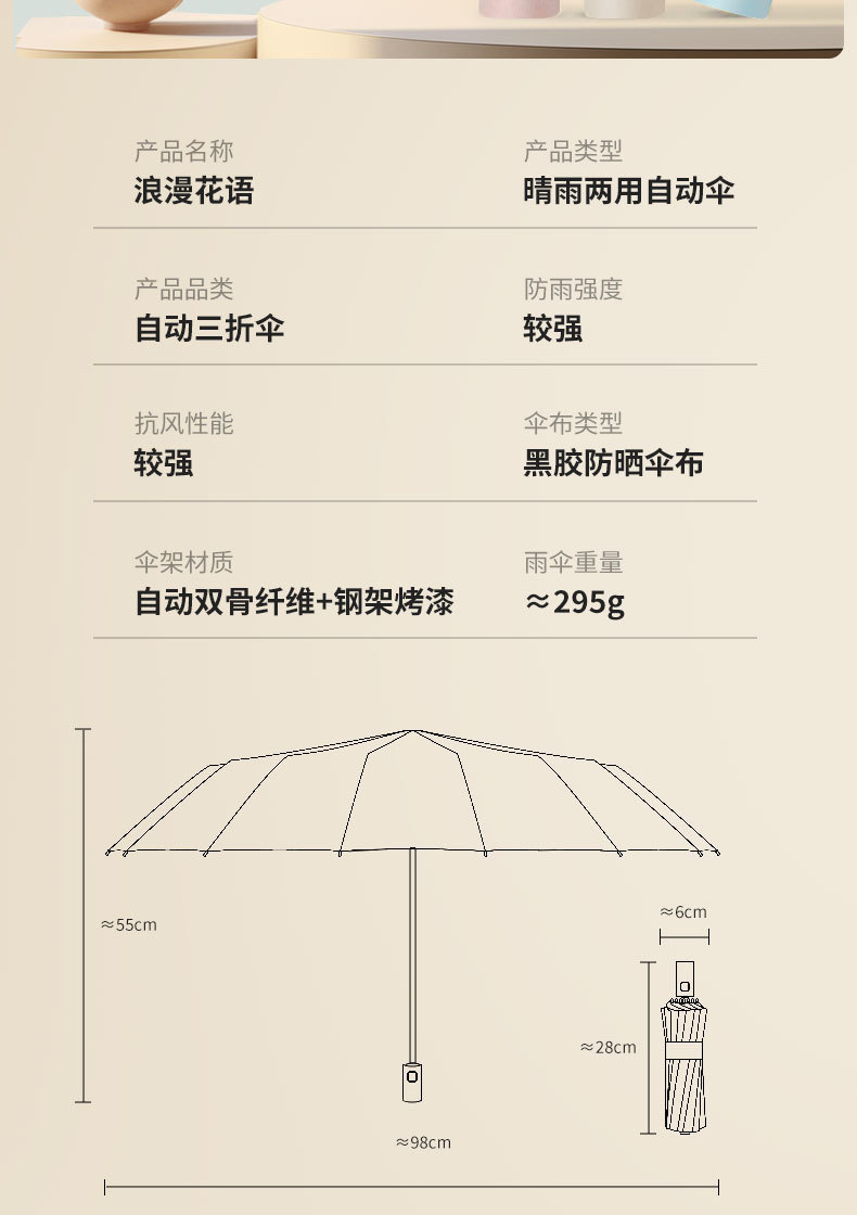 로맨틱한 꽃무늬 접이식 우산 도매, 햇빛과 비 모두를 막아주는 우산, 자외선 차단, 방수 기능