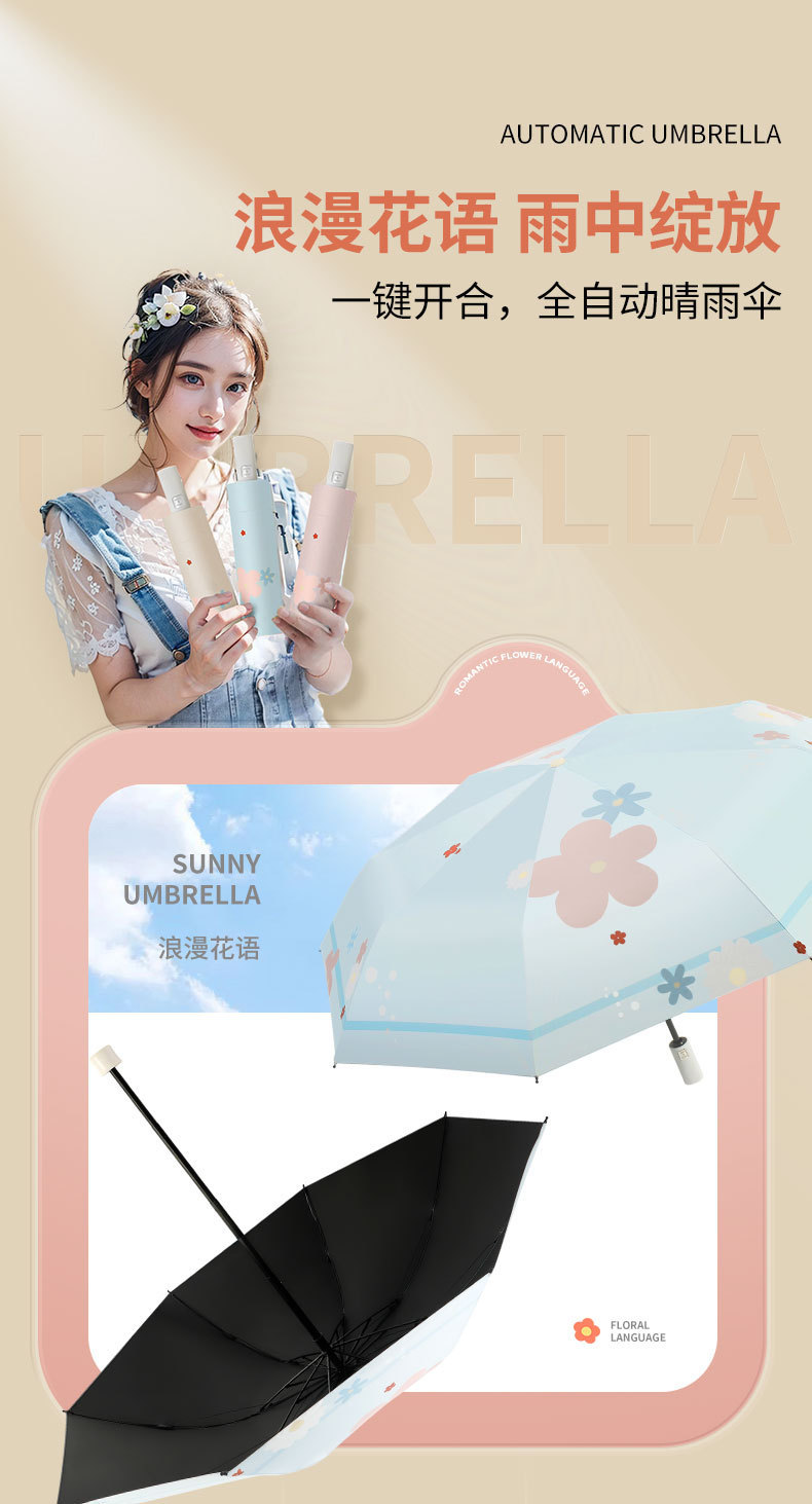 로맨틱한 꽃무늬 접이식 우산 도매, 햇빛과 비 모두를 막아주는 우산, 자외선 차단, 방수 기능스토어 가기