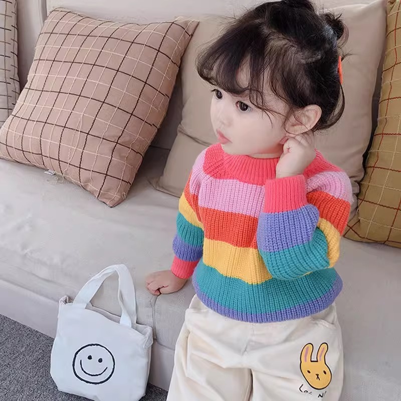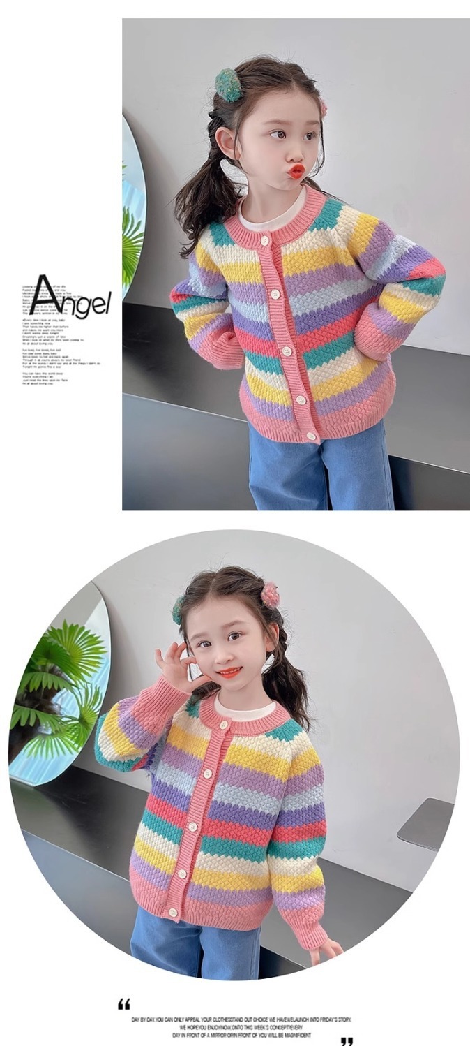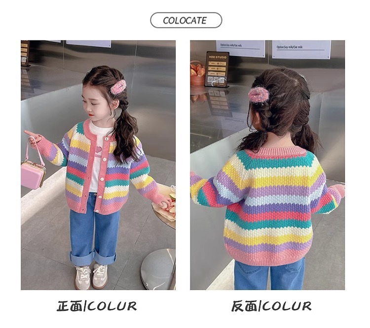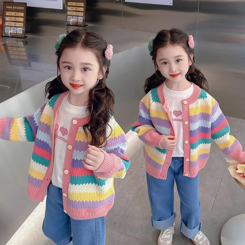소녀 스웨터 2025 신식 탑 아기의 니트 카디건 봄과 가을 어린이 가을 레인보우 코트스토어 가기
