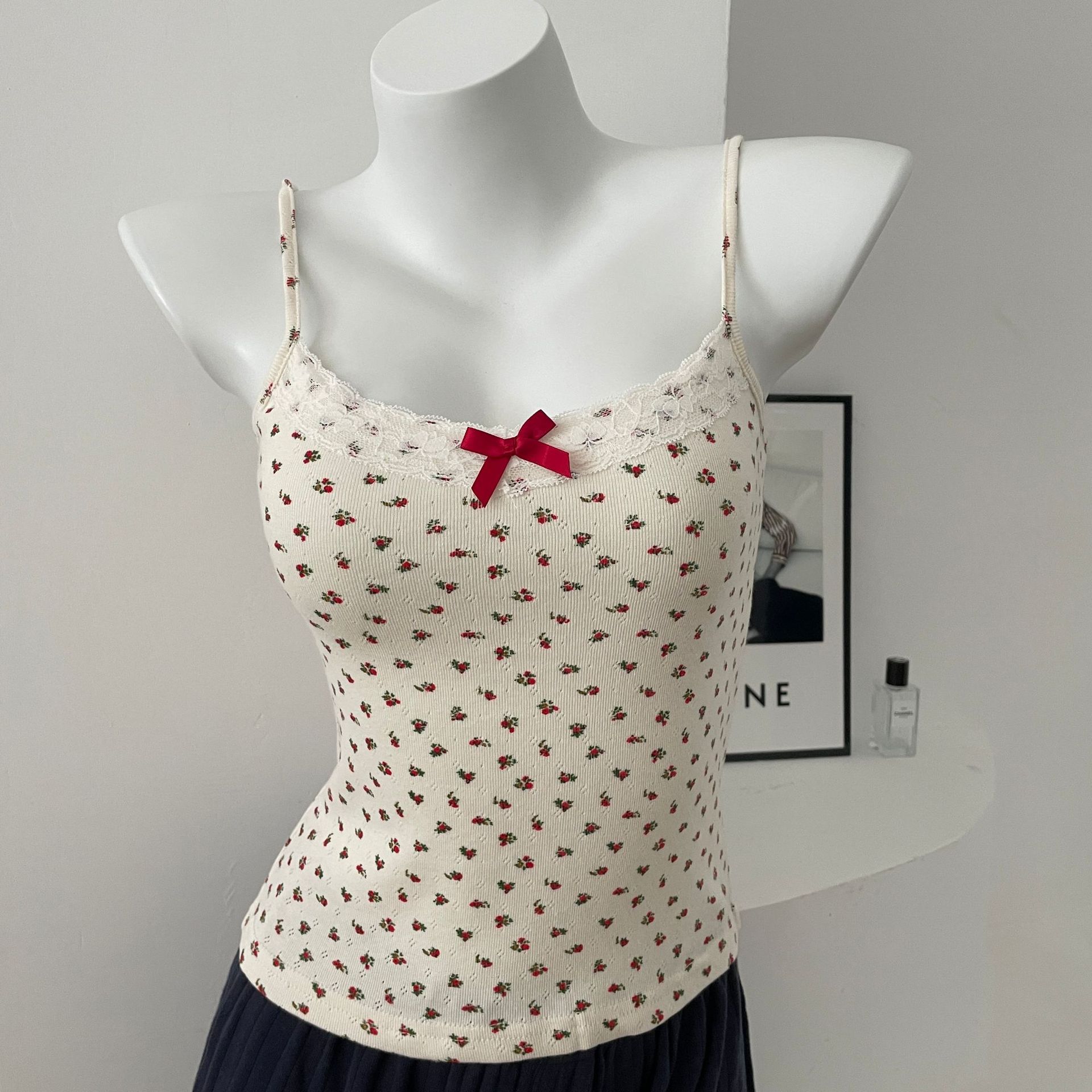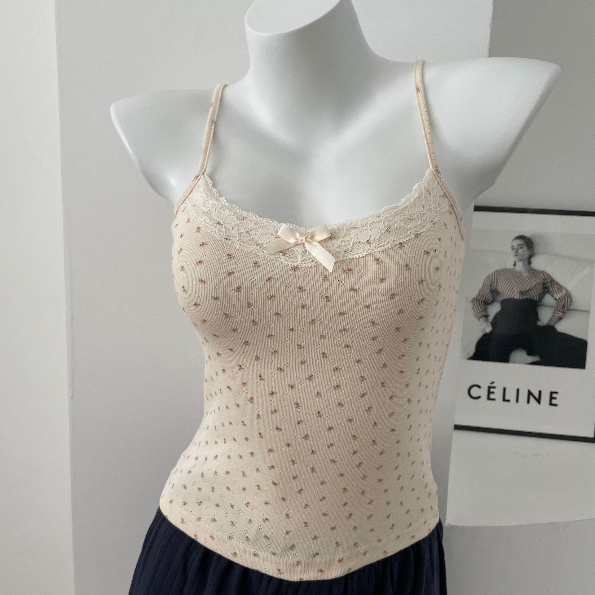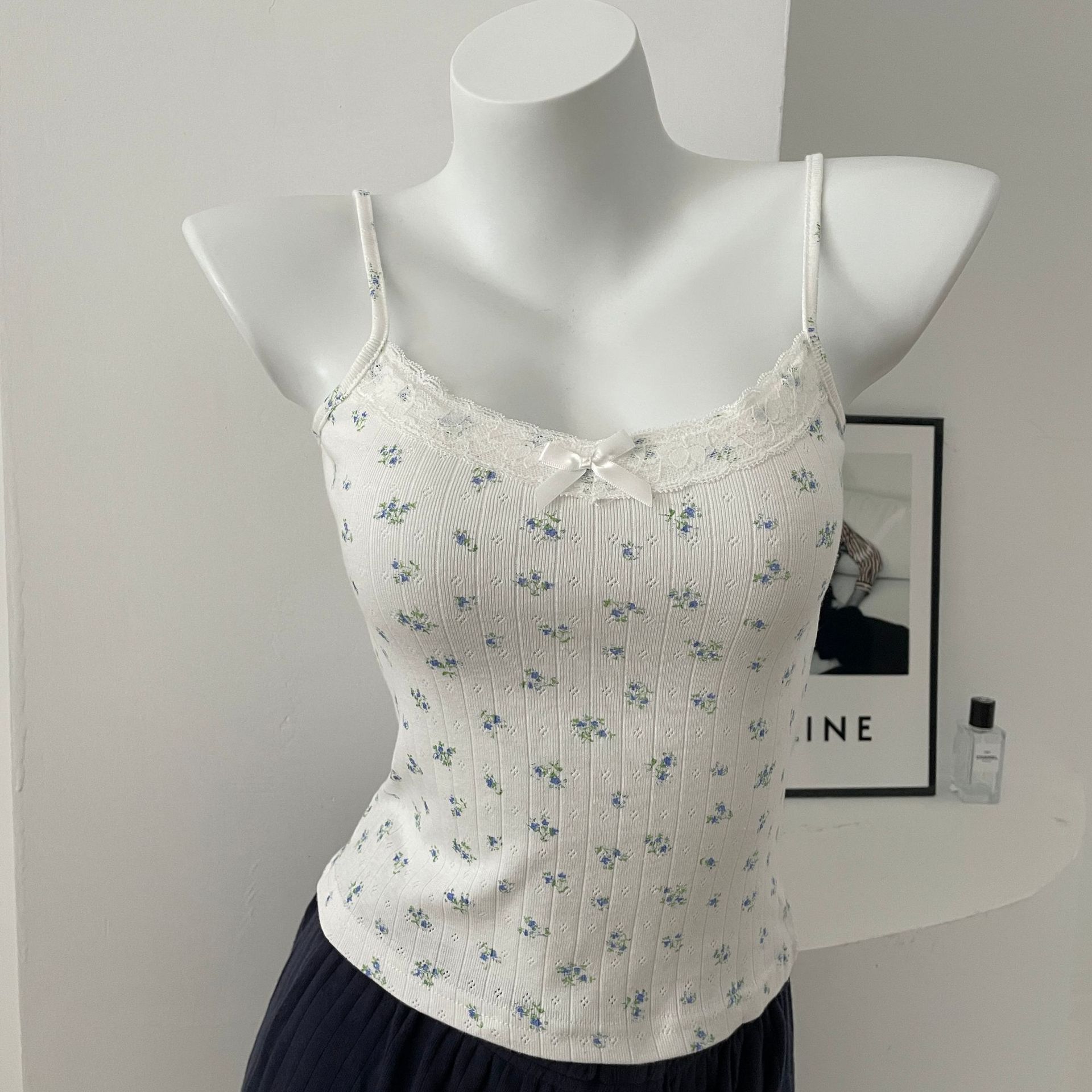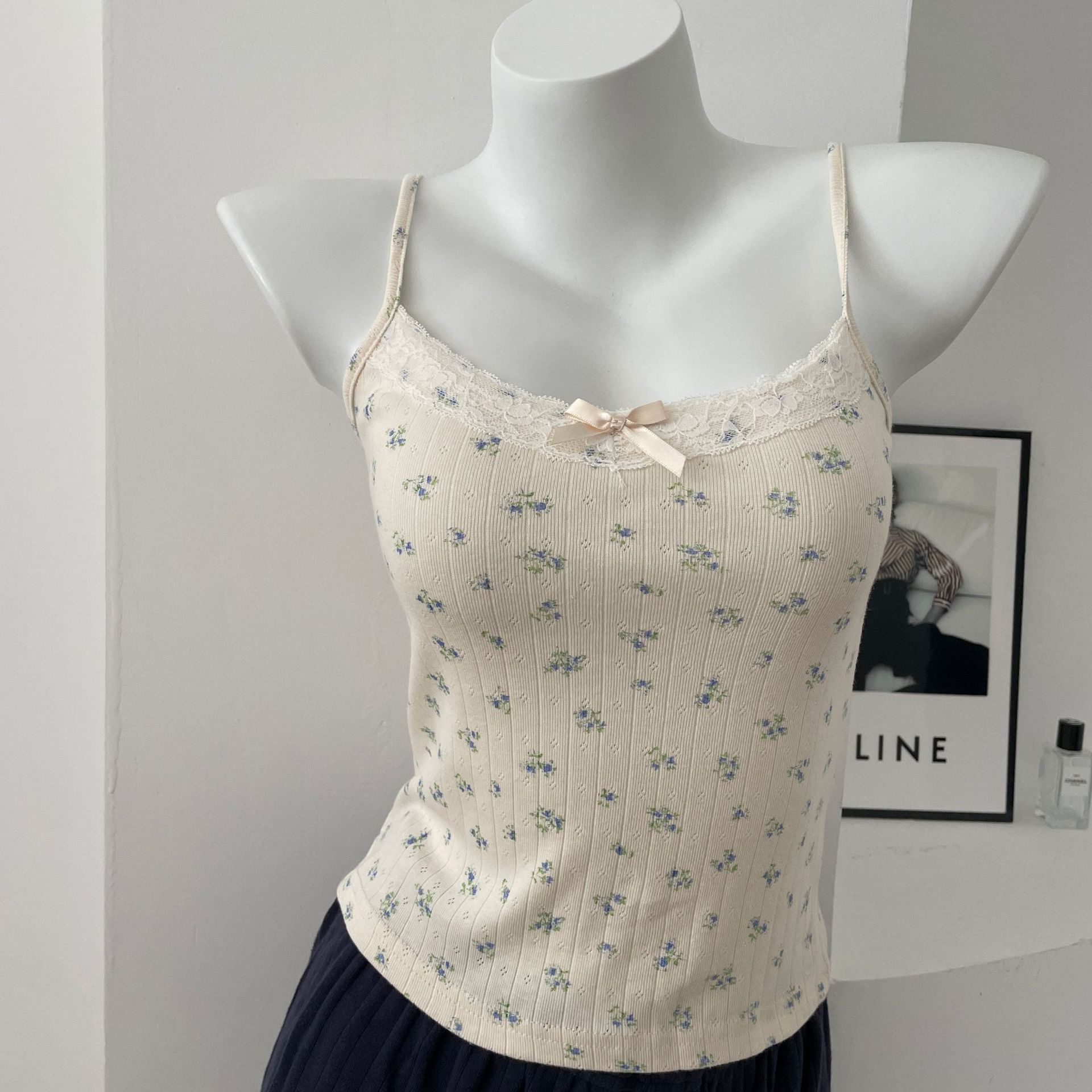 BM 순수한 욕망 꽃 레이스 활 작은 카미솔 여성의 봄과 여름 짧은 슬림 핏 아우터 착용 내부 탑