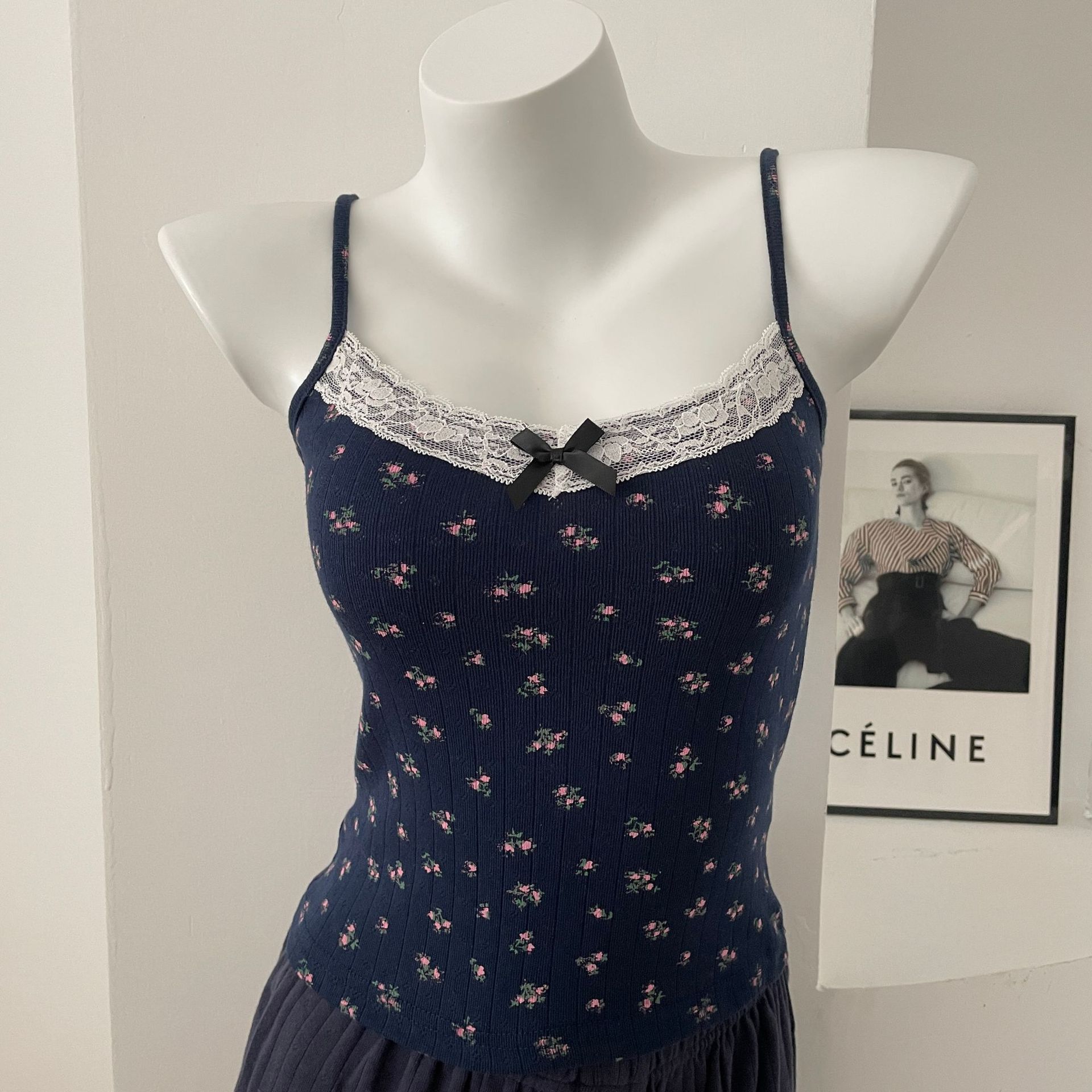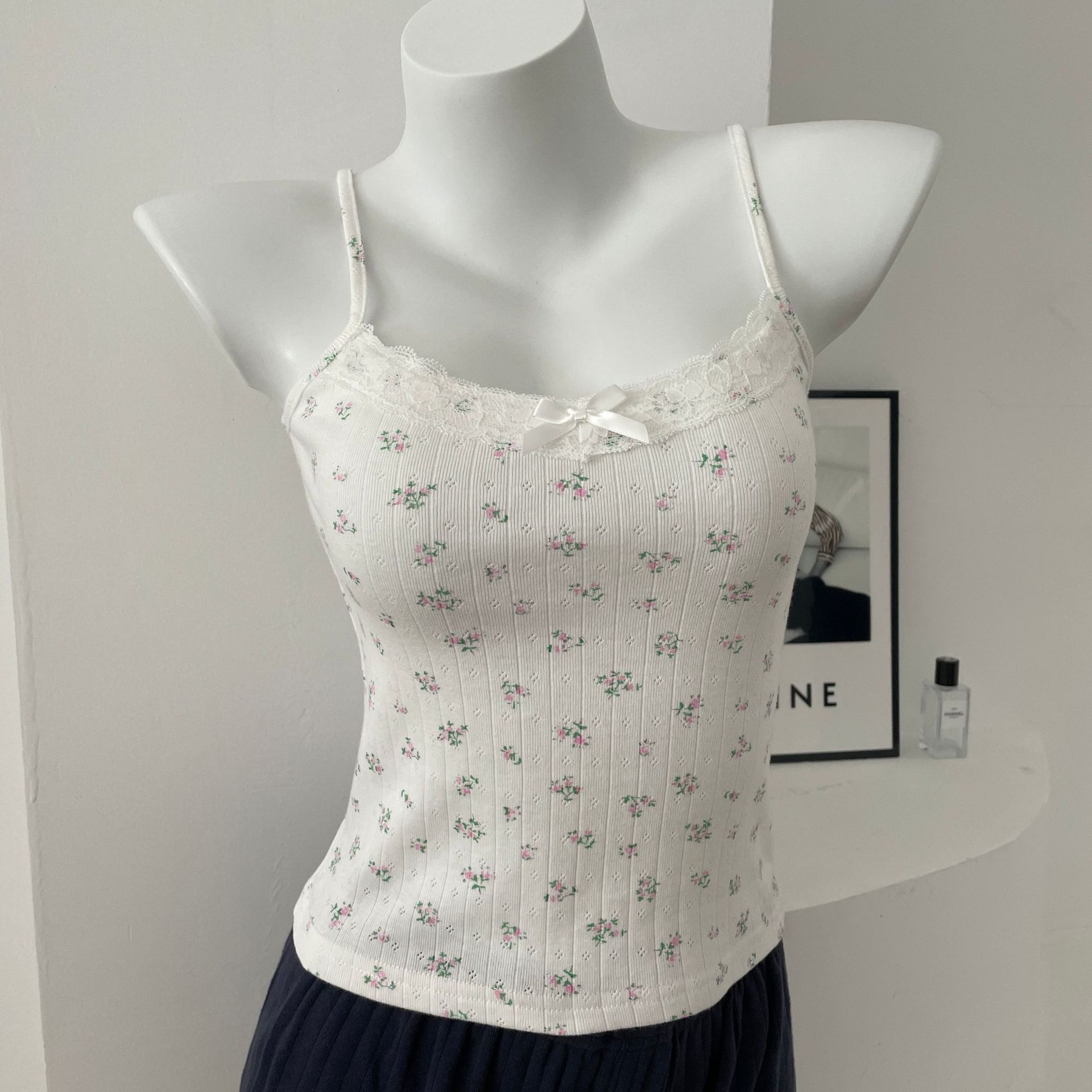 BM 순수한 욕망 꽃 레이스 활 작은 카미솔 여성의 봄과 여름 짧은 슬림 핏 아우터 착용 내부 탑스토어 가기