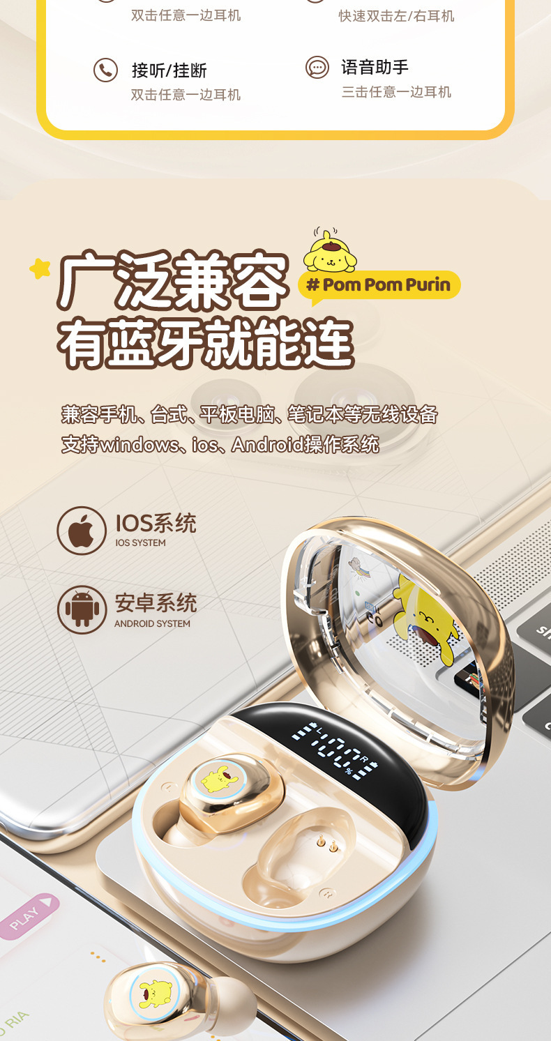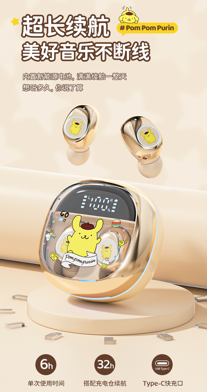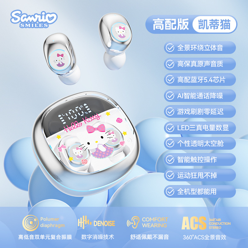 산리오 정품 공인 무선 블루투스 헤드셋 높은 음질 스포츠 긴 내구성 절반 인 귀 유니섹스스토어 가기