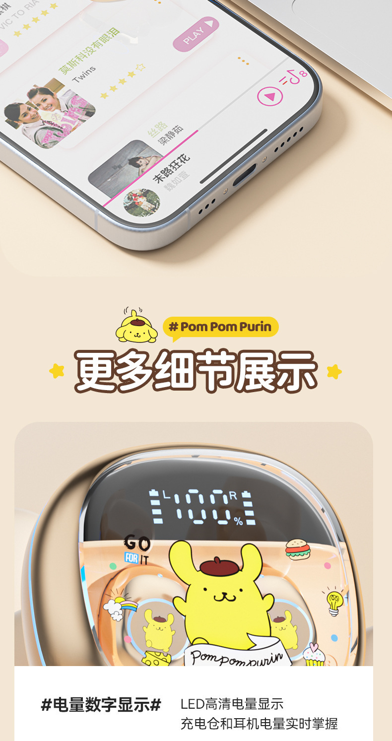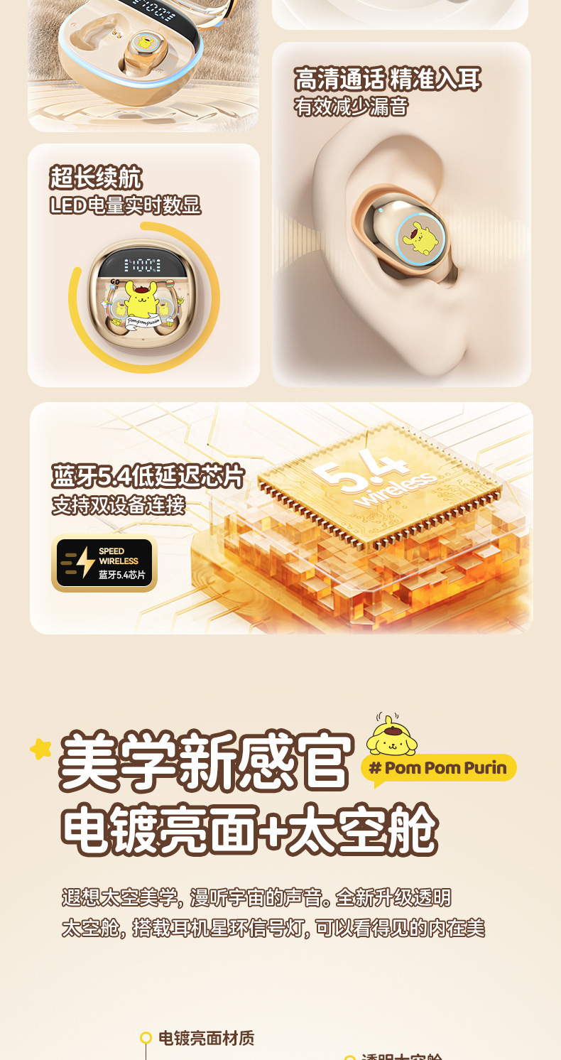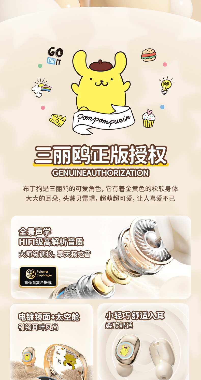 산리오 정품 공인 무선 블루투스 헤드셋 높은 음질 스포츠 긴 내구성 절반 인 귀 유니섹스스토어 가기