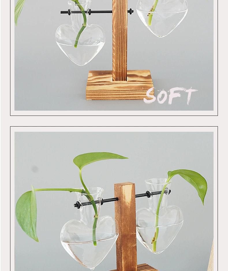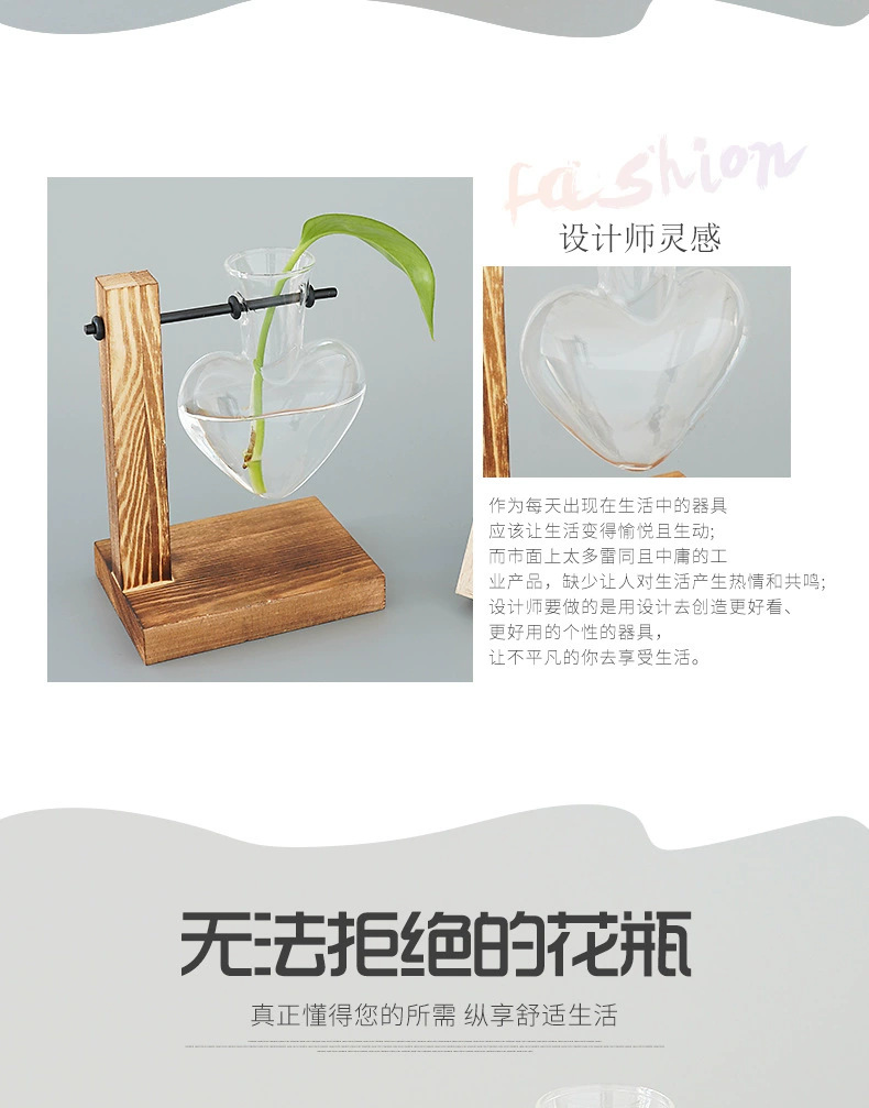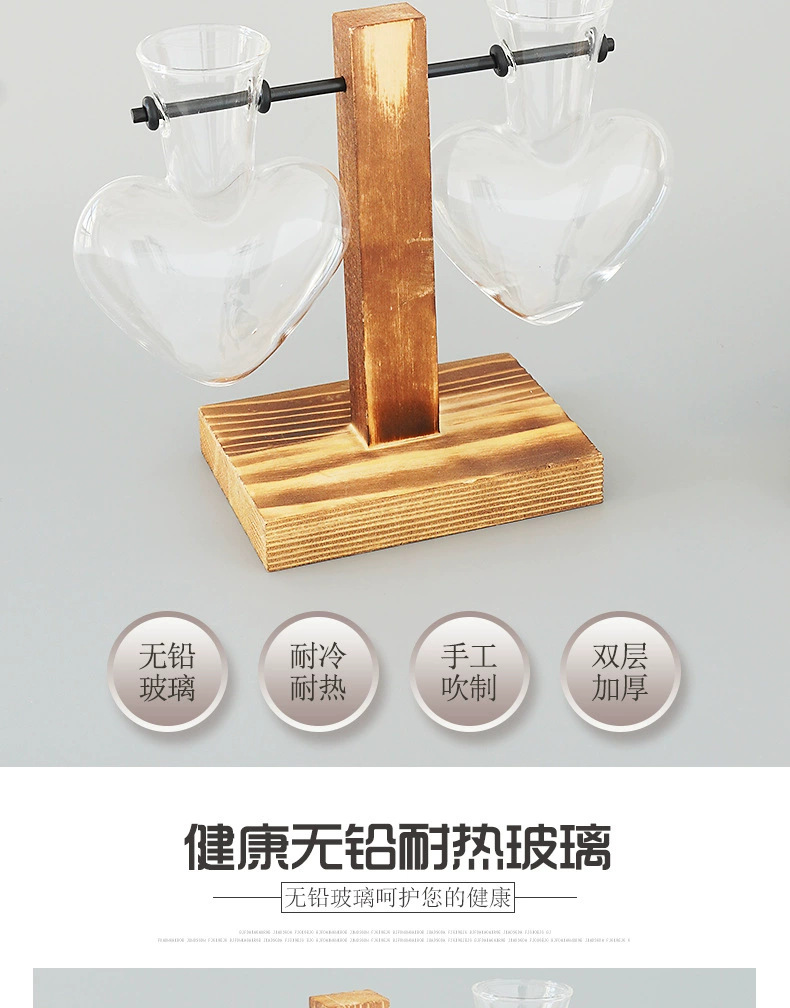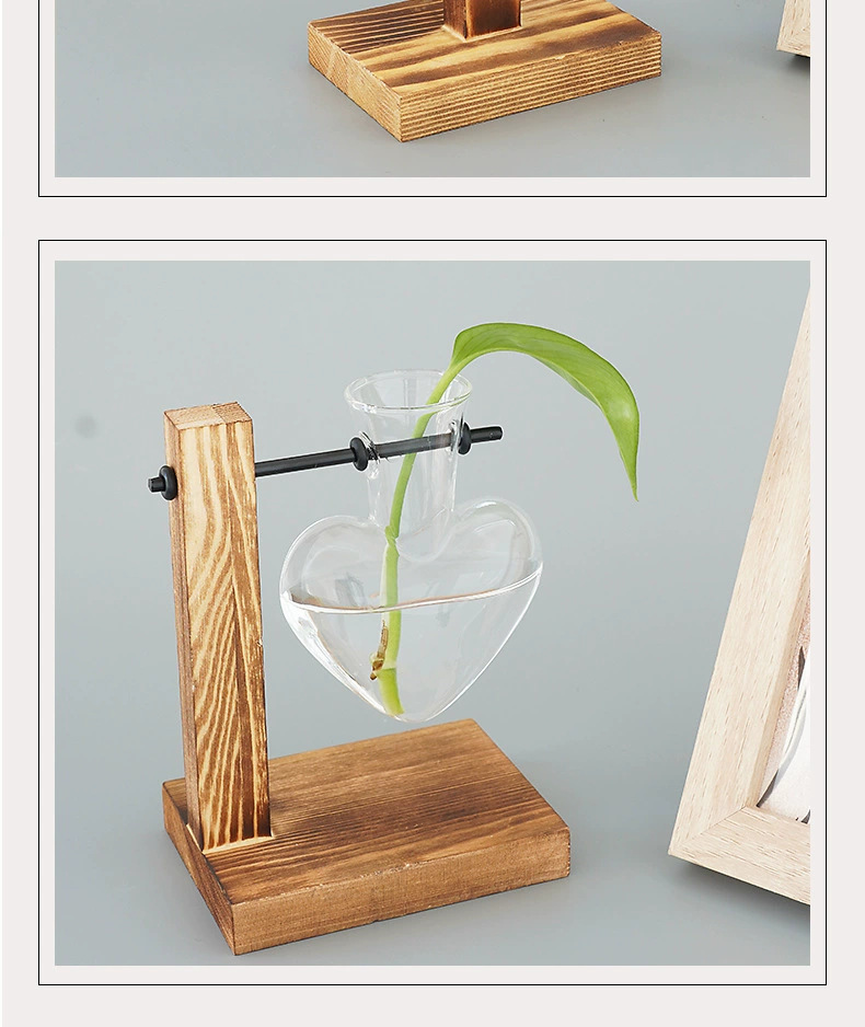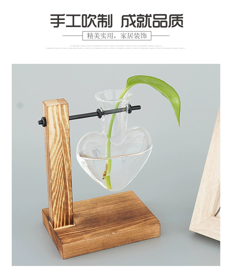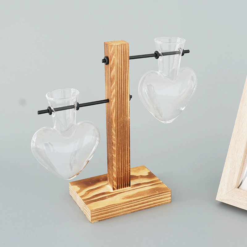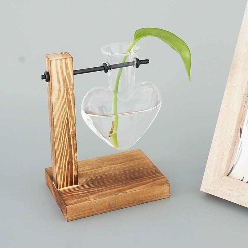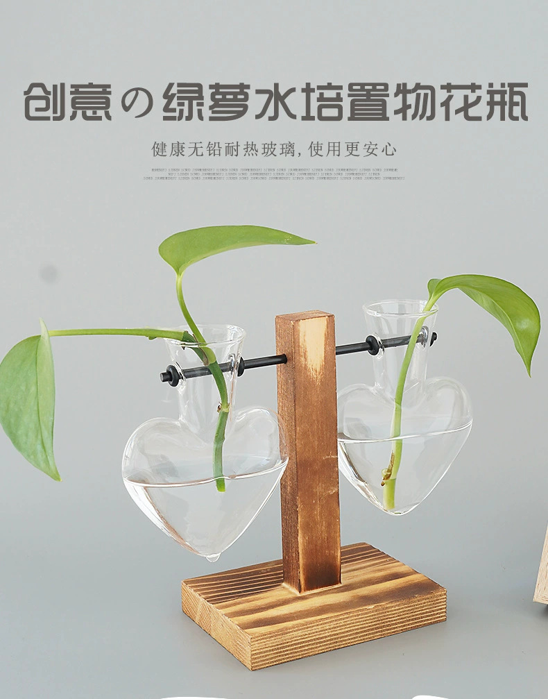 창조적 인 데스크탑 작은 사랑 꽃병 거실 사무실 장식 수경 식물 녹색 장미 투명한 나무 꽃병스토어 가기