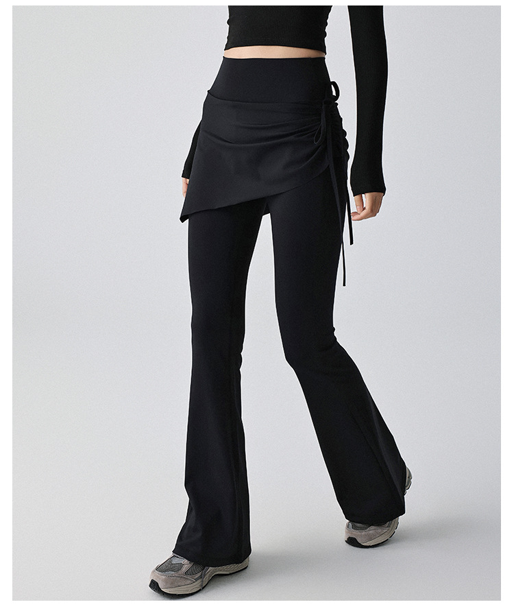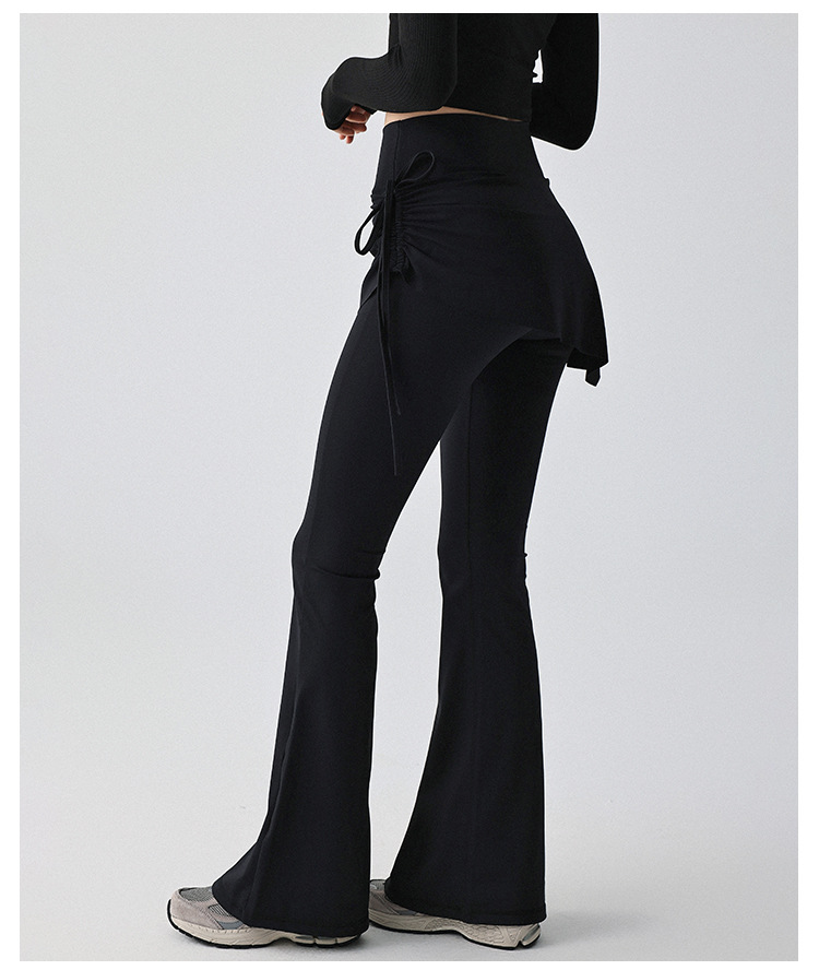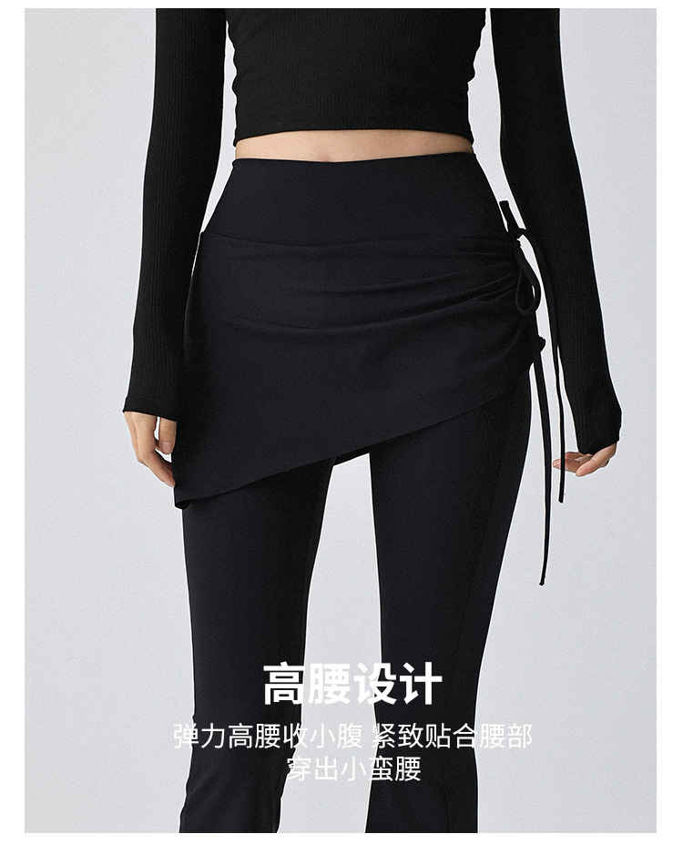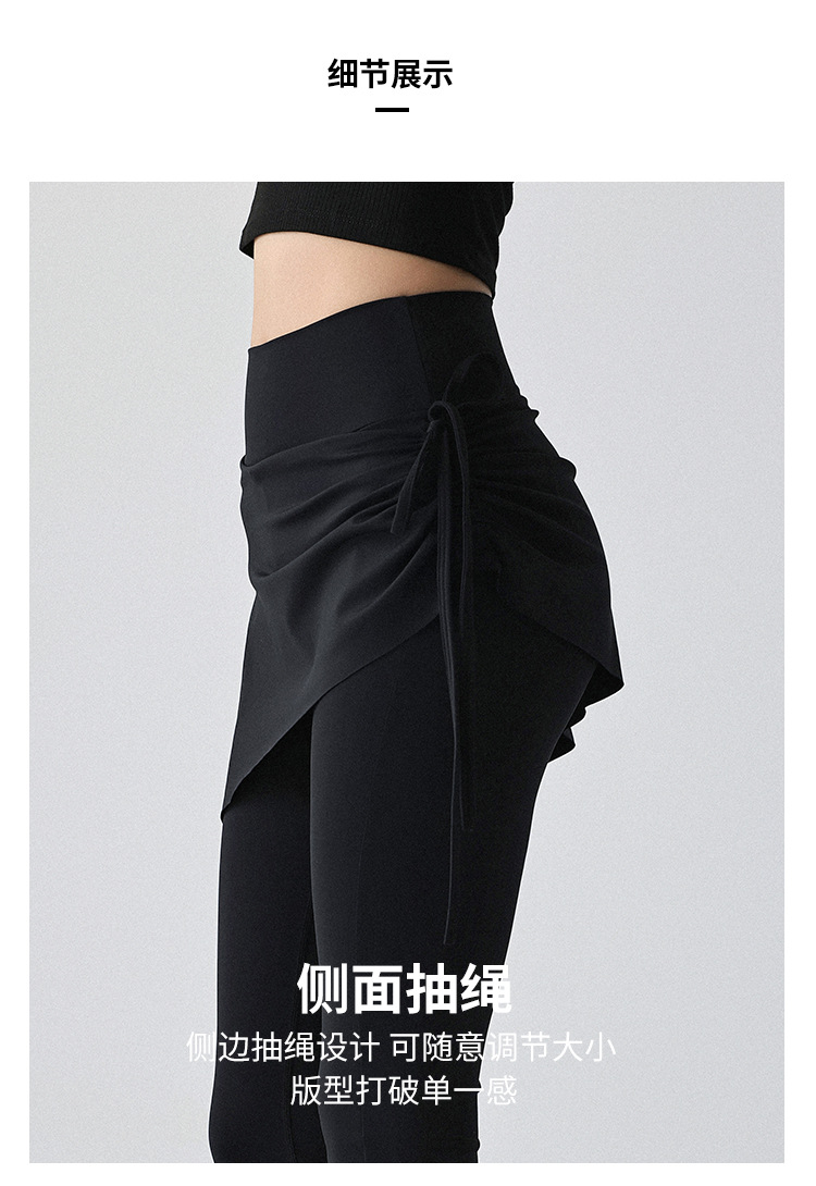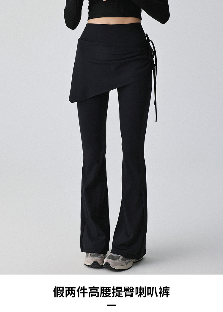 2025 새로운 핫 페이크 2 피스 요가 바지 여성 높은 허리 슬리밍 마이크로 피트니스 바지 새로운 측면 드로스트링 커버 엉덩이