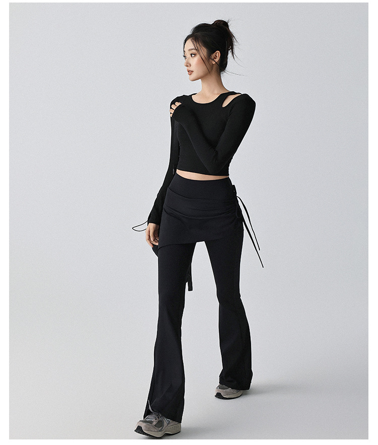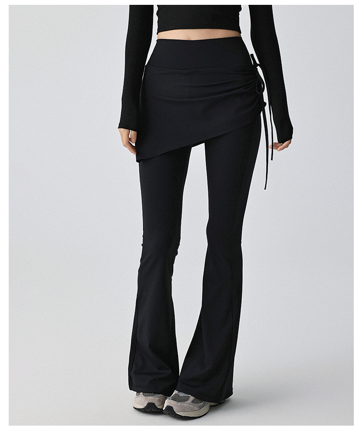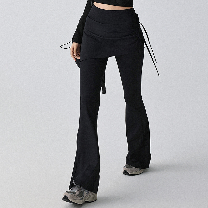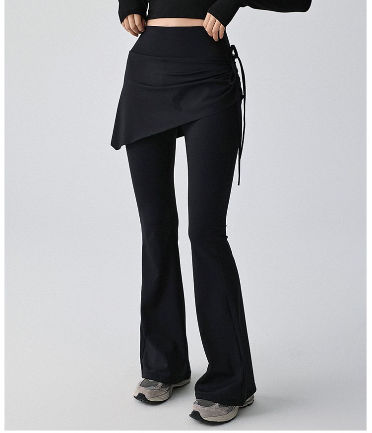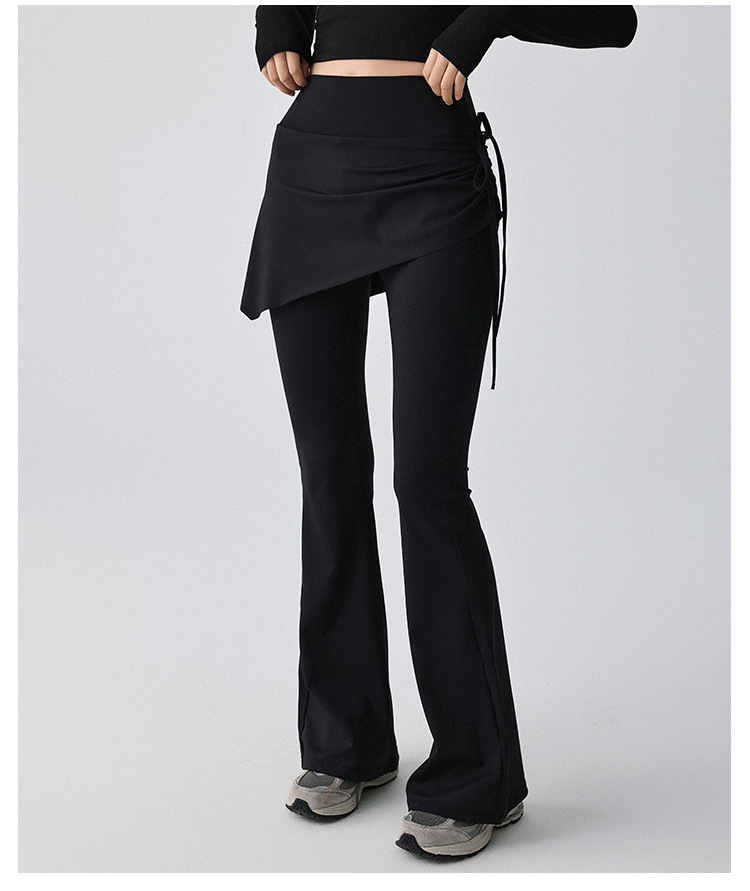 2025 새로운 핫 페이크 2 피스 요가 바지 여성 높은 허리 슬리밍 마이크로 피트니스 바지 새로운 측면 드로스트링 커버 엉덩이