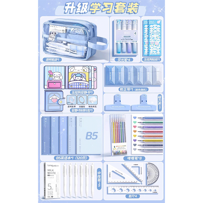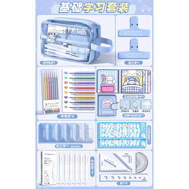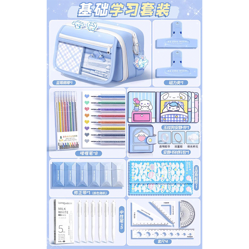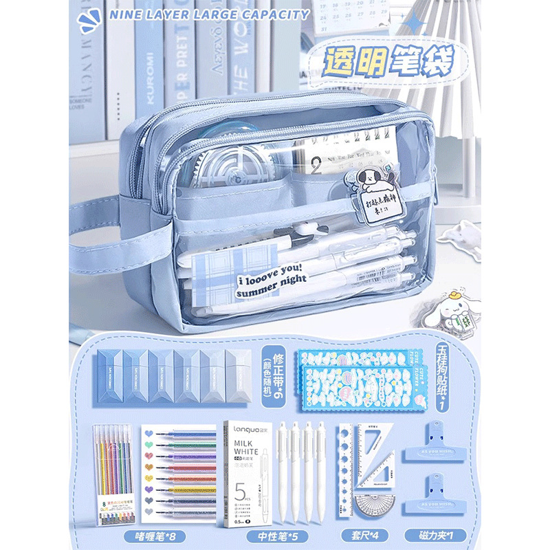 • 9단 필통_자세트 + 스티커 + 자석클립 + 펜 + 수정테이프 포함