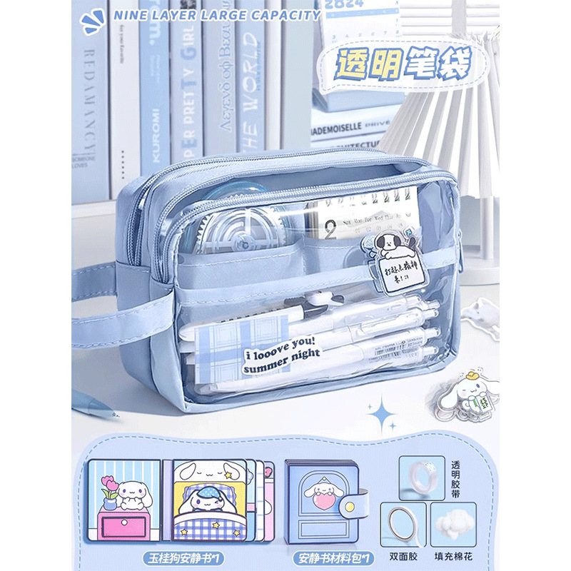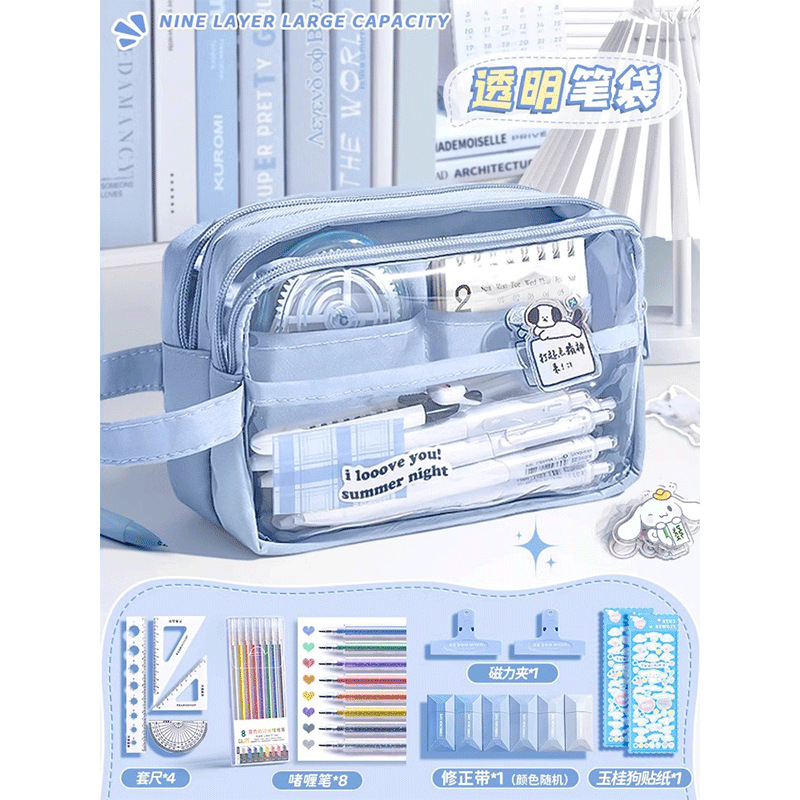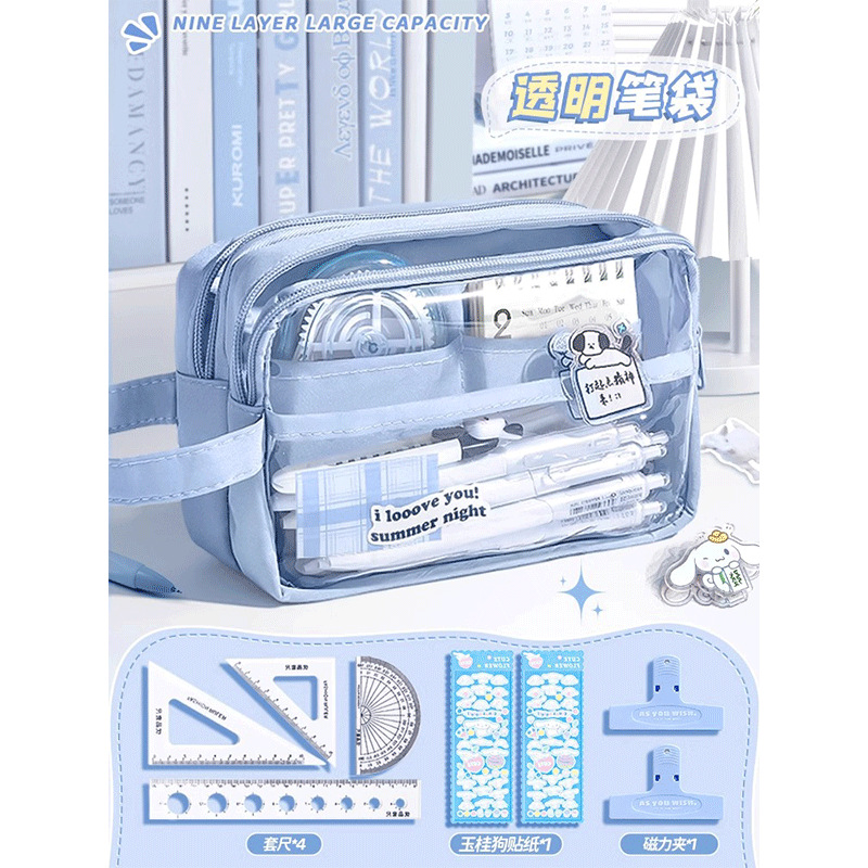 • 5단 투명 필통_자세트+스티커+자석클립 포함