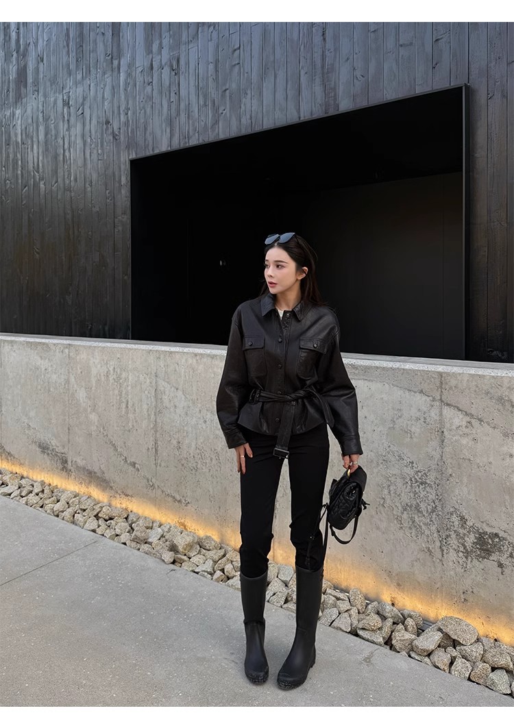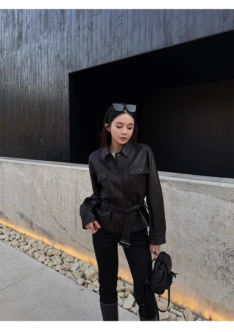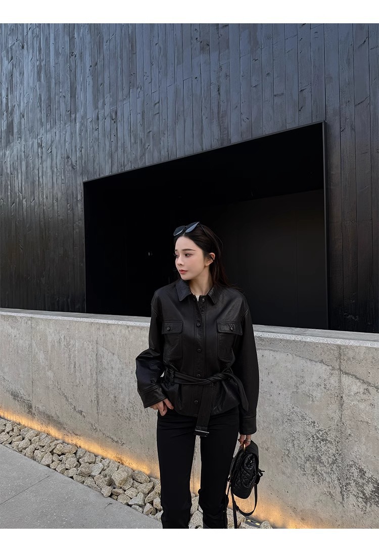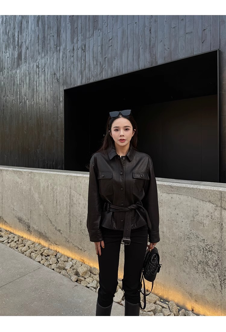2025 가을 여성용 천연 가죽 재킷, 허리 조절끈, 양가죽, 캐주얼, 다용도, 겨울용 두꺼운 슬림핏스토어 가기