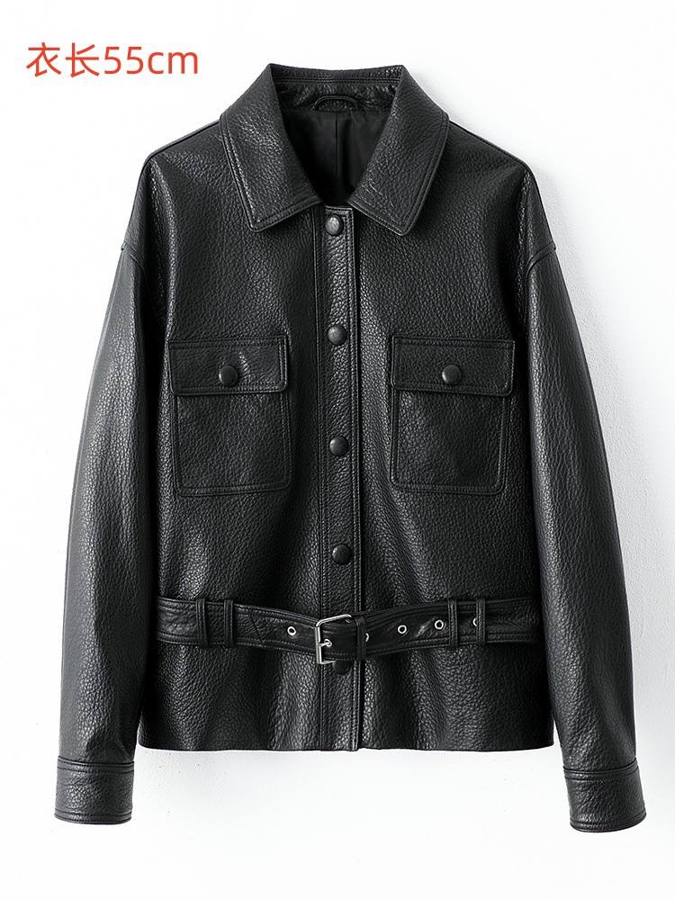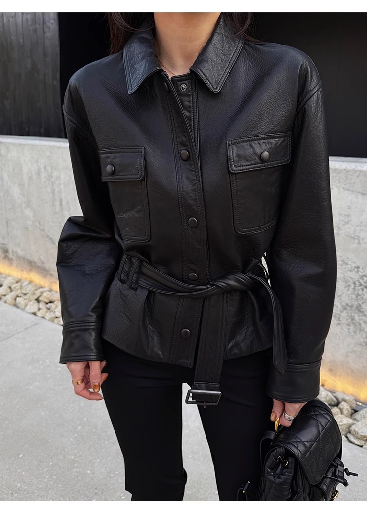 2025 가을 여성용 천연 가죽 재킷, 허리 조절끈, 양가죽, 캐주얼, 다용도, 겨울용 두꺼운 슬림핏
