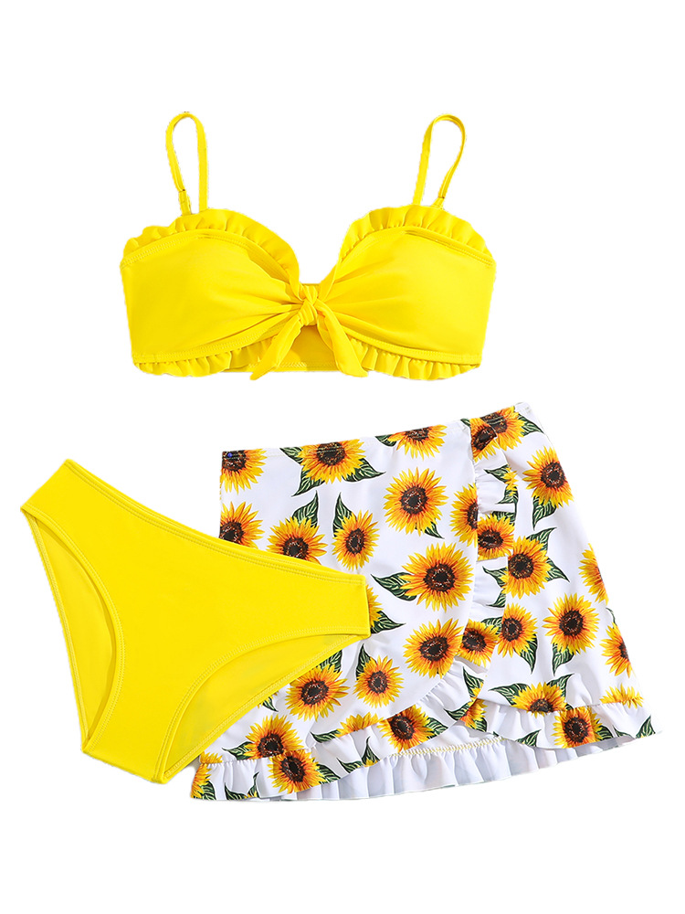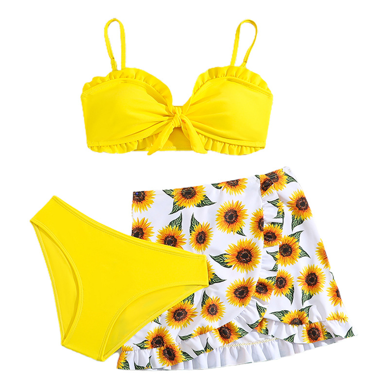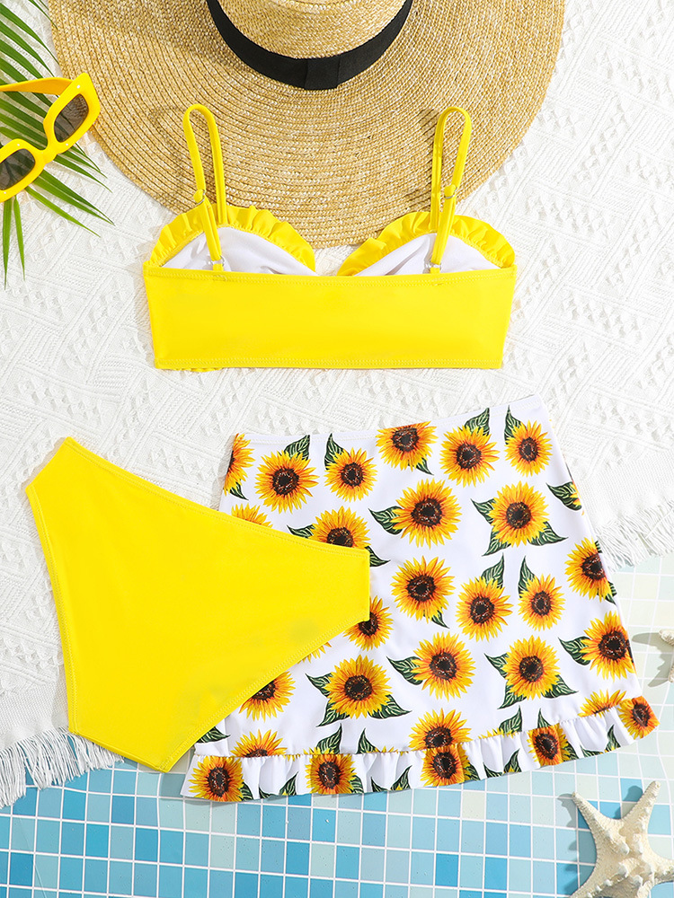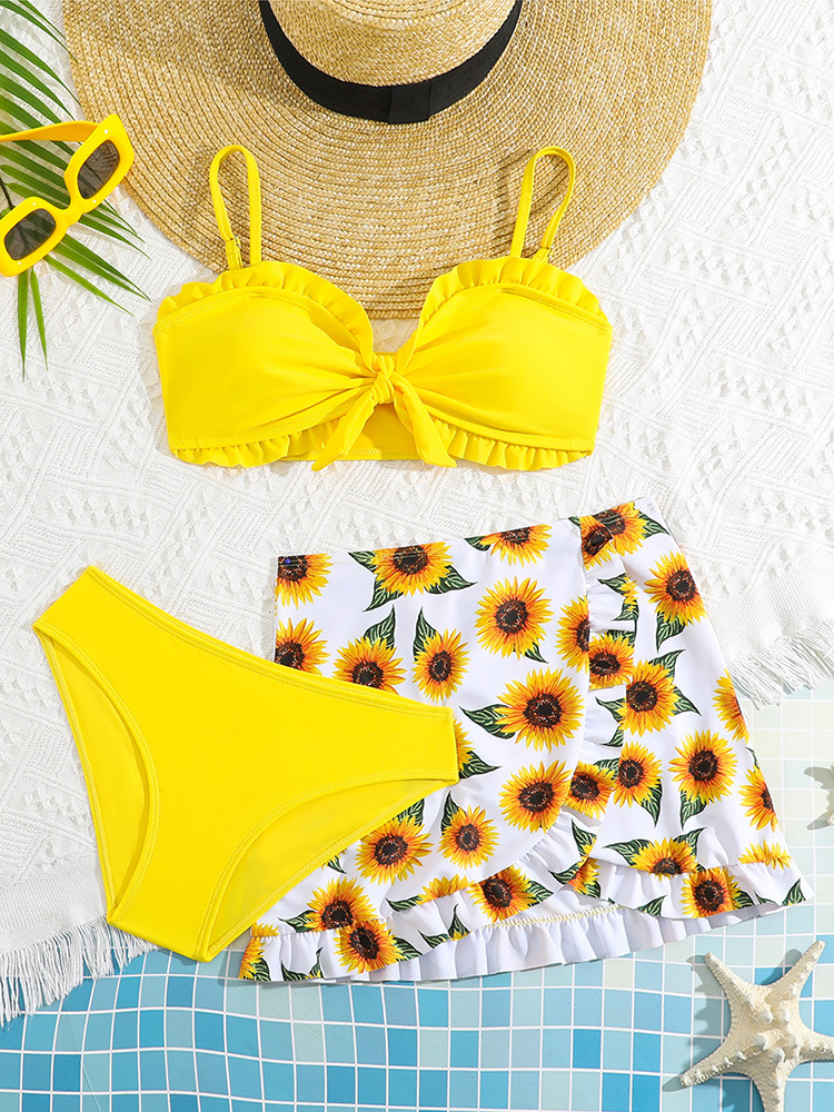 2025 유럽과 미국의 새로운 귀여운 어린이 수영복 소녀 스플릿 빅 키즈 아마존 해바라기 수영 3 종 세트