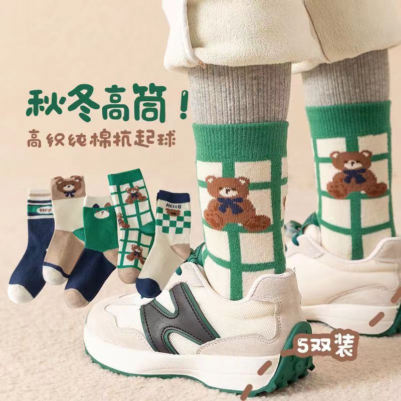 2025 새로운 소년 봄과 가을 새로운 어린이 양말 만화 급유 오리 어린이 아기 양말 제조 업체 도매스토어 가기