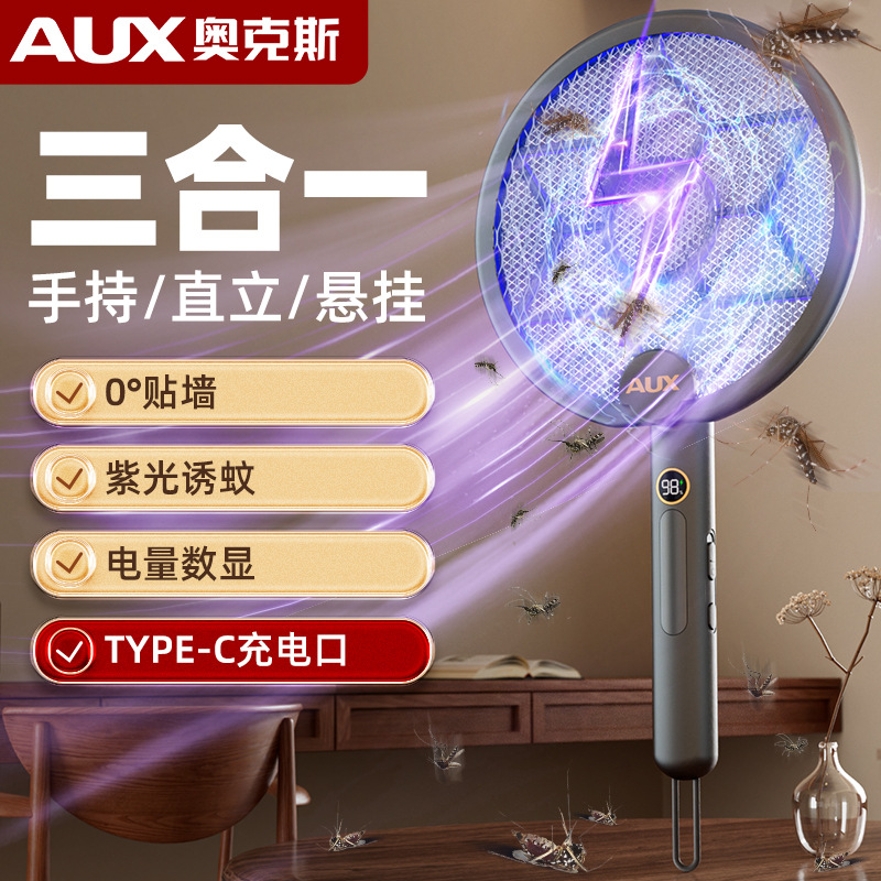 오크스 전기 모기채 충전식 가정용 자동 모기 유인 및 제거 램프 2-in-1 모기 퇴치기 스마트 디지털 디스플레이스토어 가기