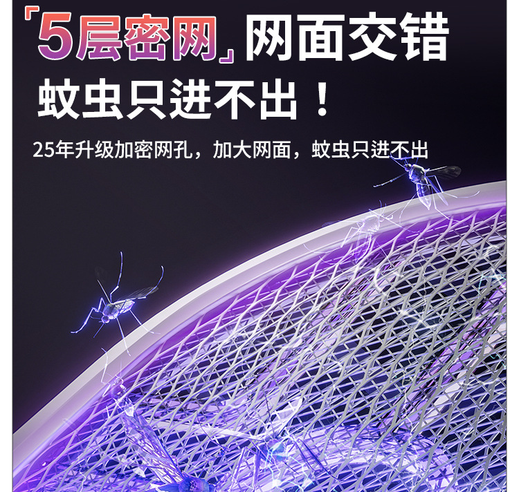 • 하이엔드 모델 익스트림 나이트 블랙 [보라색 모기덫 6개 + 대형 메쉬 + USB 충전 + 수직 베이스]