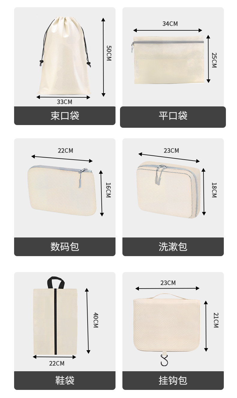 여행 압축 저장 가방 세트 국경 흰색 그물 비주얼은 저장 가방 세트 조합을 자유롭게 일치시킬 수 있습니다스토어 가기