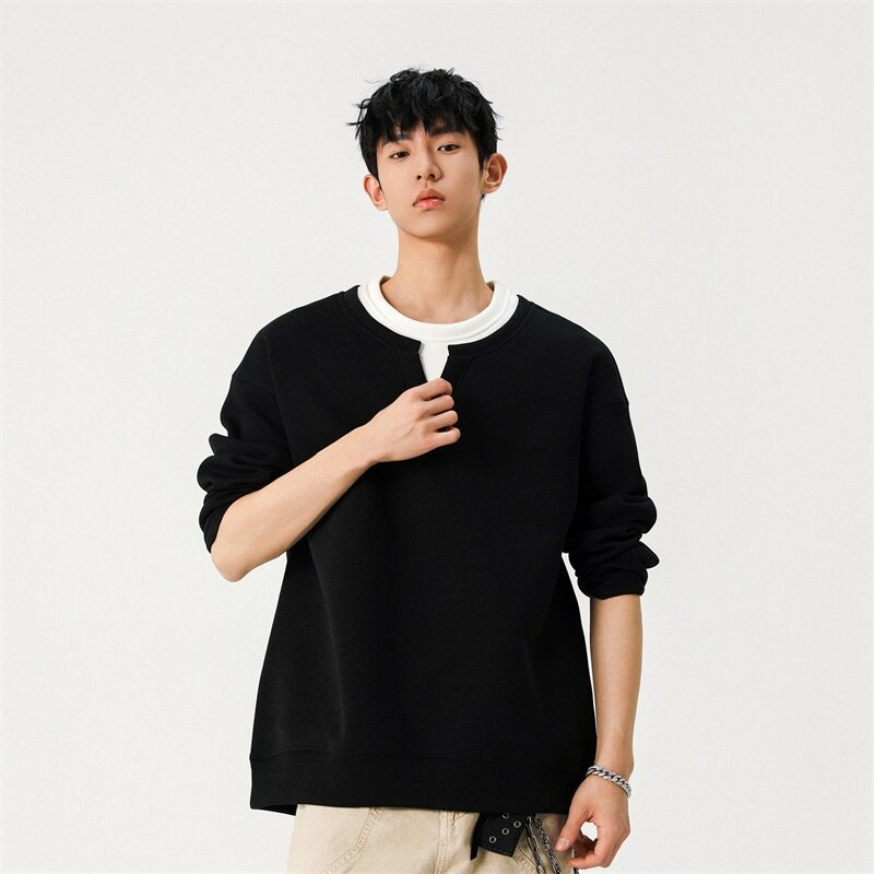 미국 헤비 페이크 2 피스 스웨트 셔츠 남성 봄과 가을 새로운 유행 브랜드 남성용 느슨한 내베이스 의류 재킷 남성