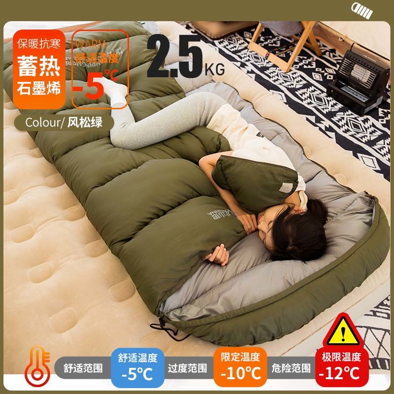 [넓은 디자인] 베이산랑 그래핀 침낭, 성인용 겨울용 두꺼운 야외 캠핑용 싱글 침낭