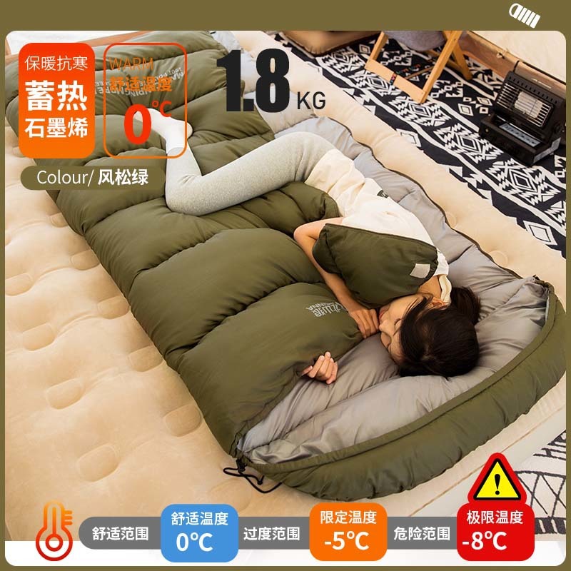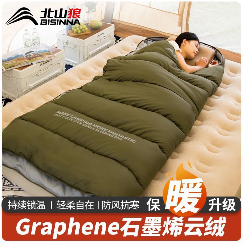 [넓은 디자인] 베이산랑 그래핀 침낭, 성인용 겨울용 두꺼운 야외 캠핑용 싱글 침낭스토어 가기