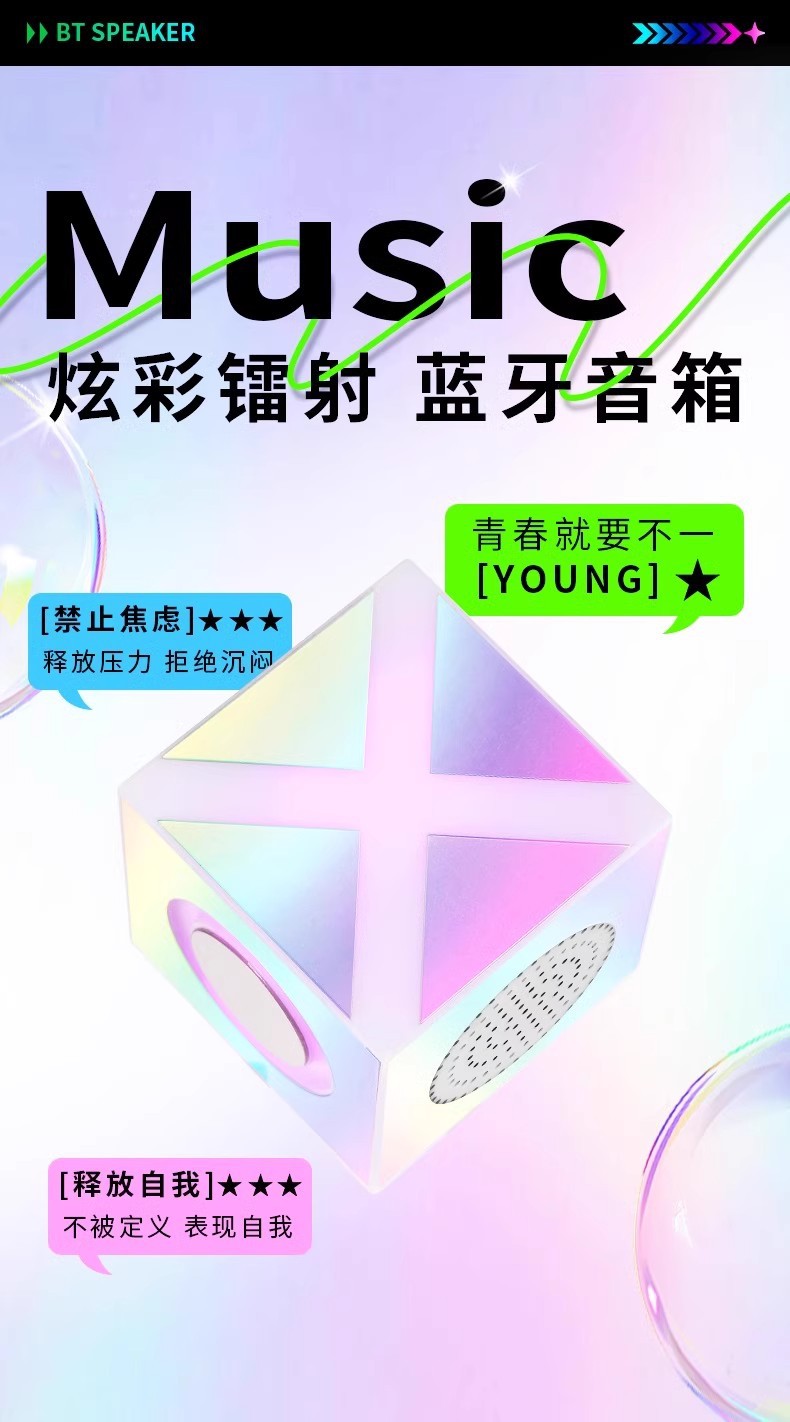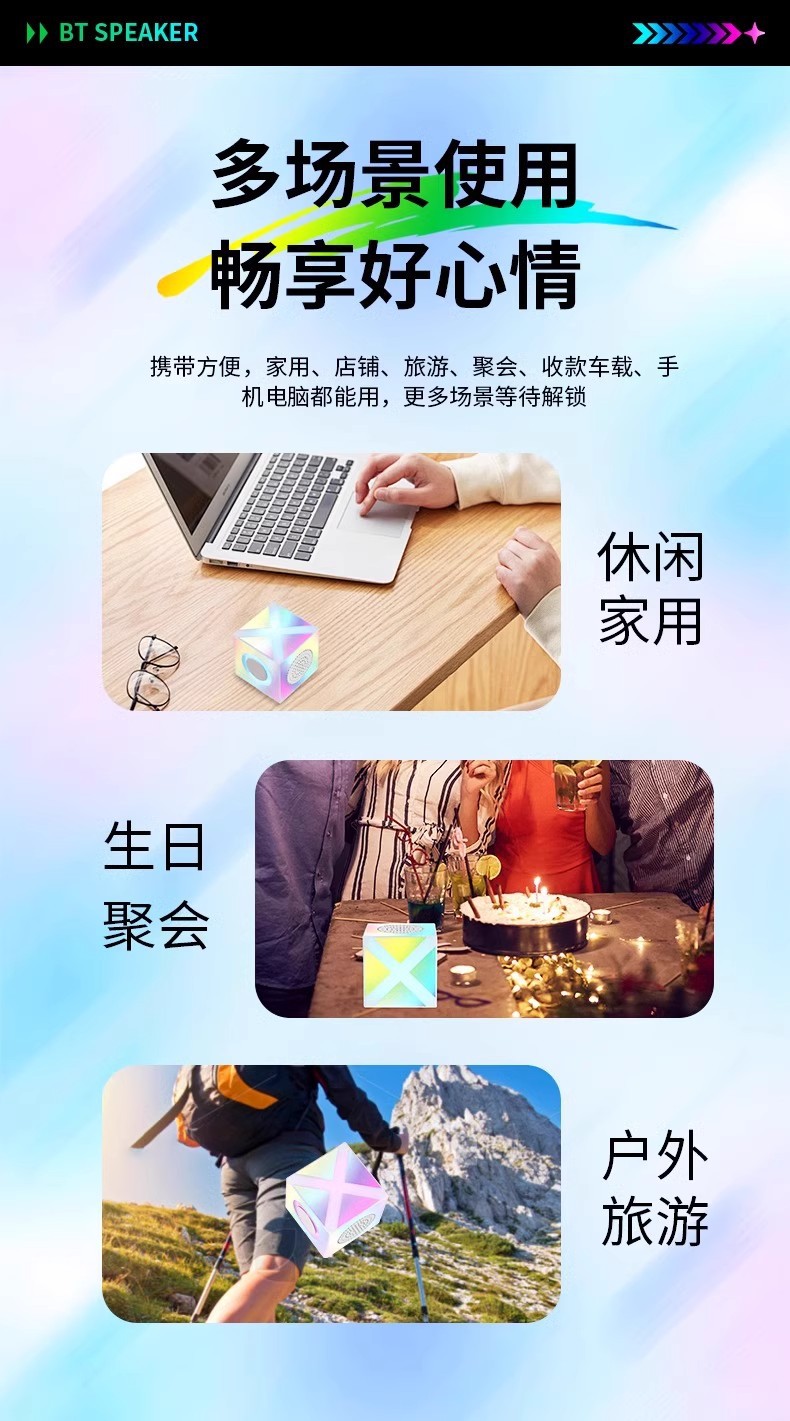 국경을 넘는 새로운 사각형 다채로운 레이저 소형 스피커, 휴대용 미니 블루투스 분위기 조명, 방수 기능 탑재스토어 가기