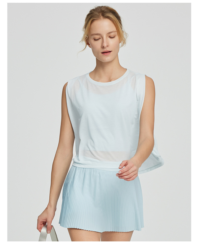 봄과 여름 새로운 요가 옷 여성의 얇은 스포츠 블라우스 최고 수분 흡수 빠른 건조 민소매 T 러닝 느슨한 피트니스 옷