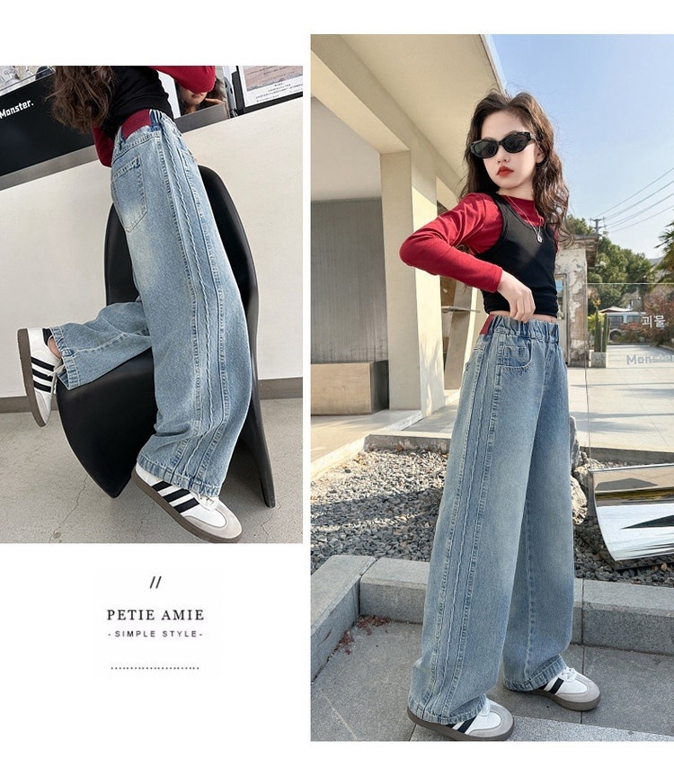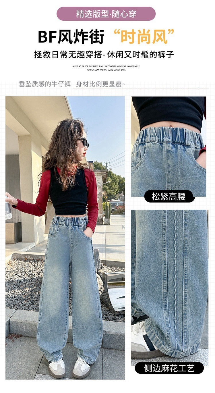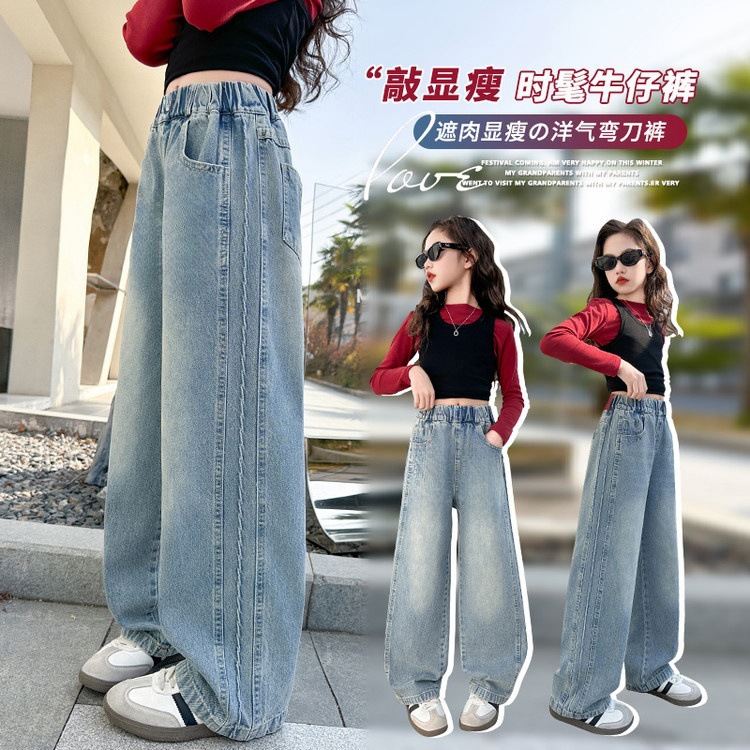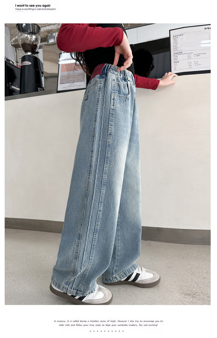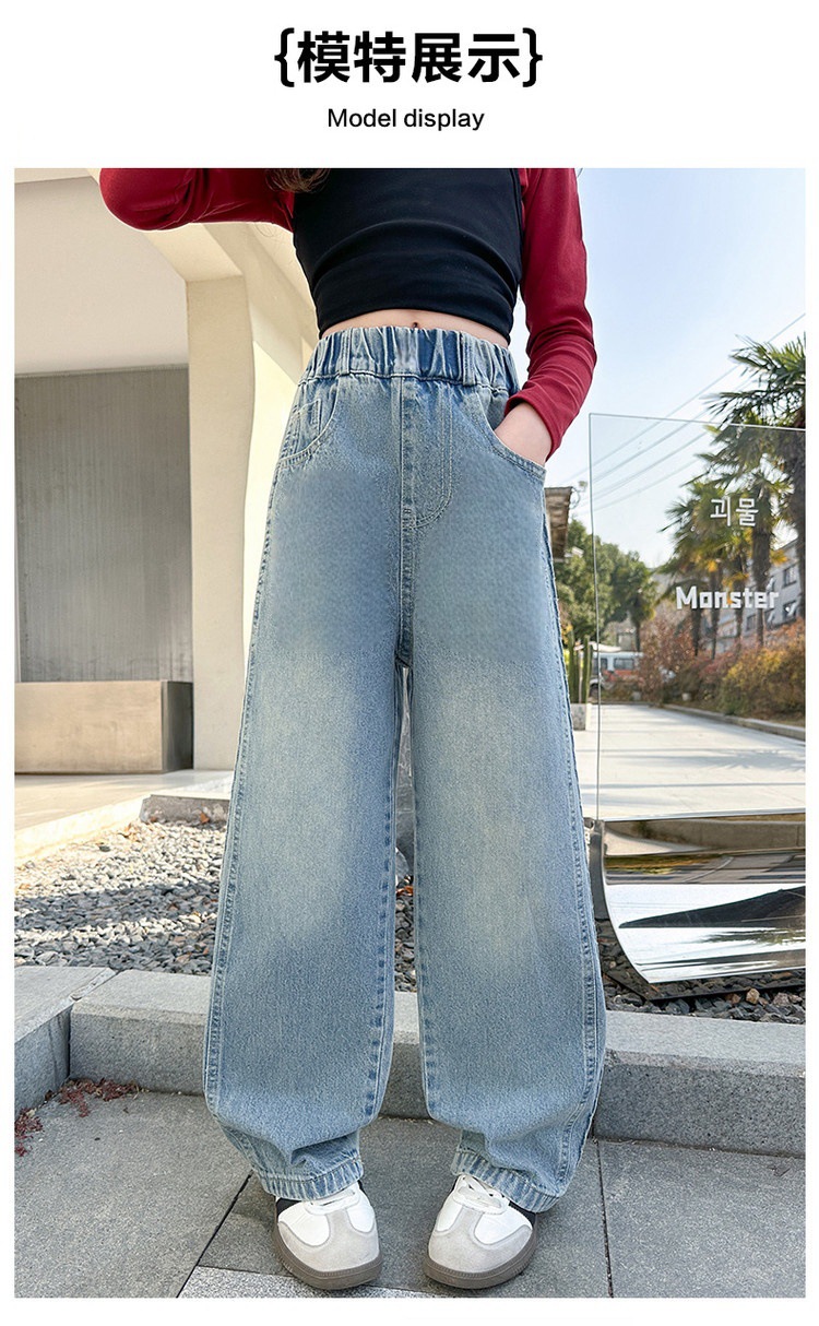 소녀의 바지 봄 2025 새로운 큰 소년 소녀의 봄과 가을 데님 스트레이트 다리 바지 느슨한 청바지 봄 착용스토어 가기