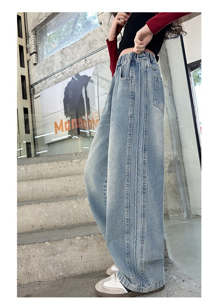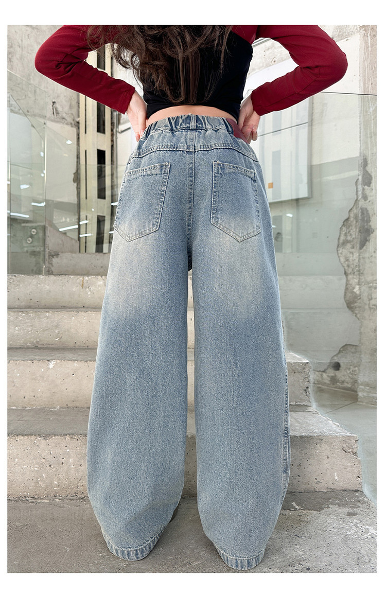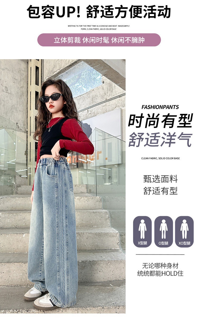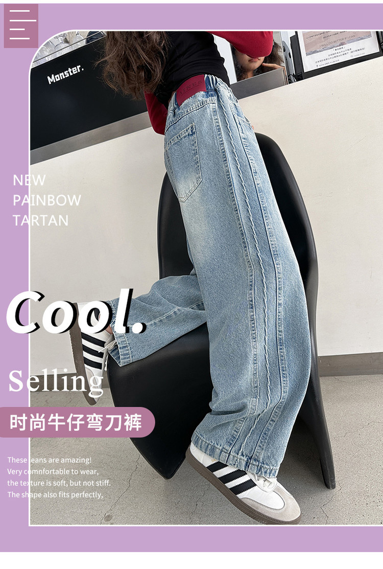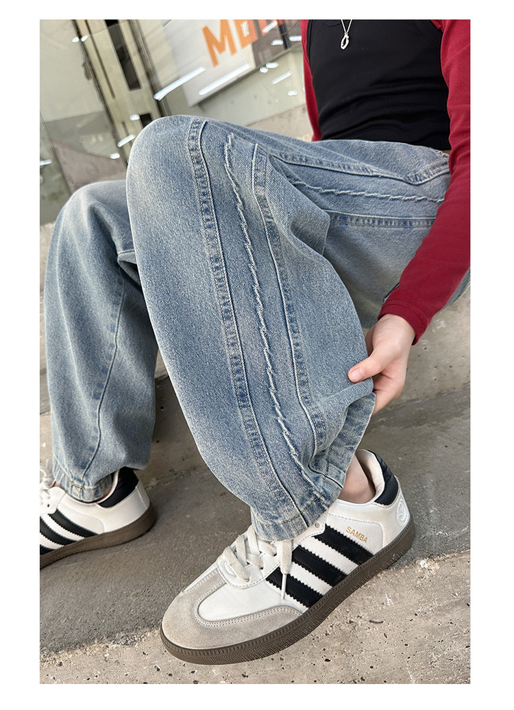 소녀의 바지 봄 2025 새로운 큰 소년 소녀의 봄과 가을 데님 스트레이트 다리 바지 느슨한 청바지 봄 착용스토어 가기