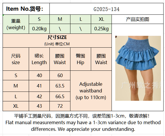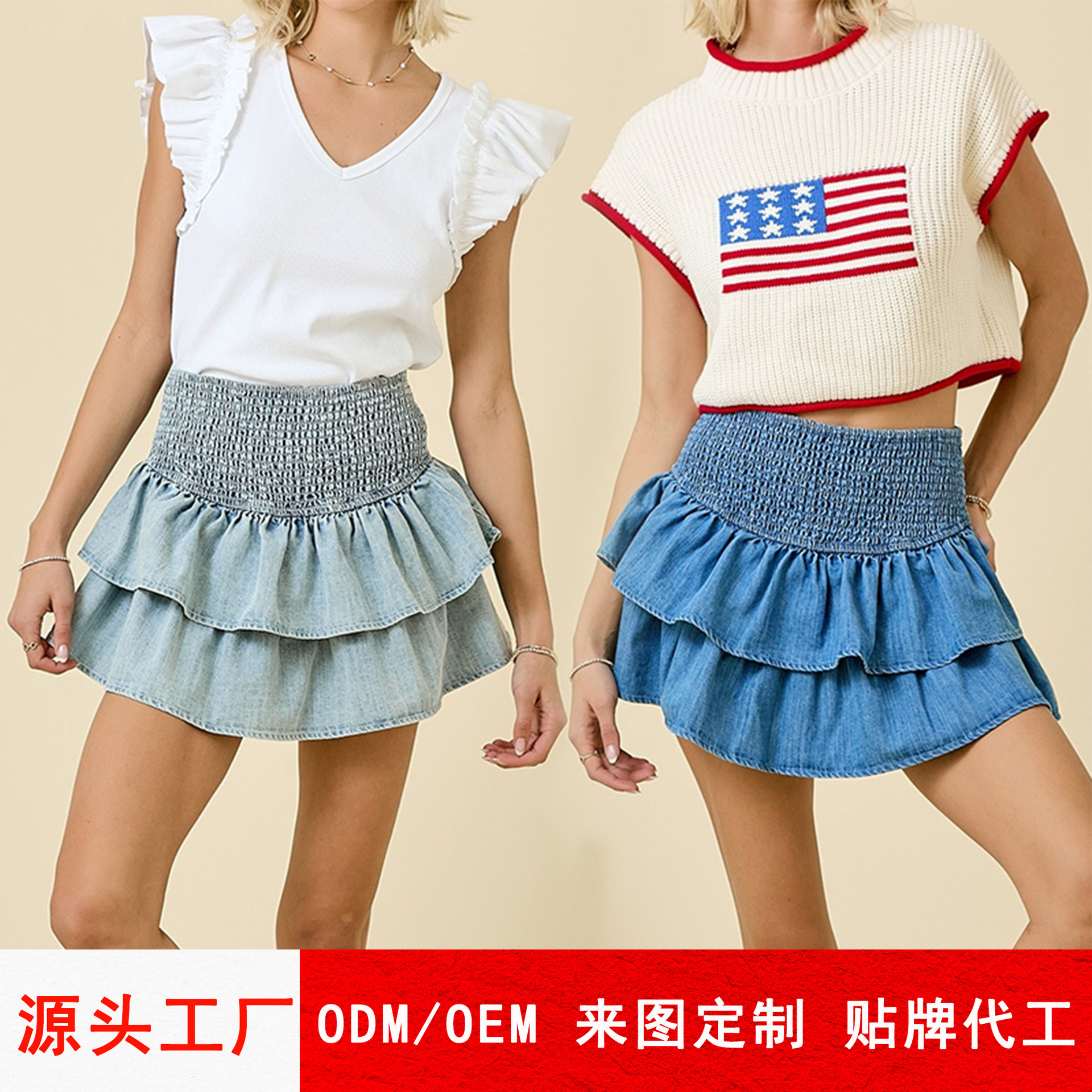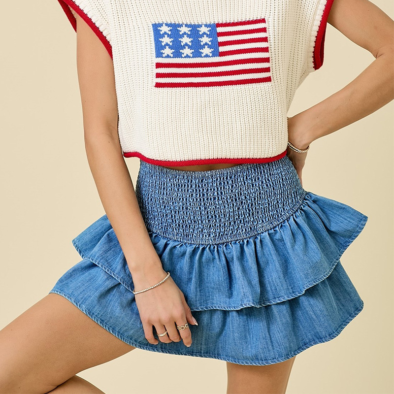 2026 봄/여름 크로스보더 미니스커트, 독립 사이트, 아메리칸 스타일의 순수하고 섹시한 디자인, 허리를 잘록하게 잡아주는 데님 케이크 스커트스토어 가기