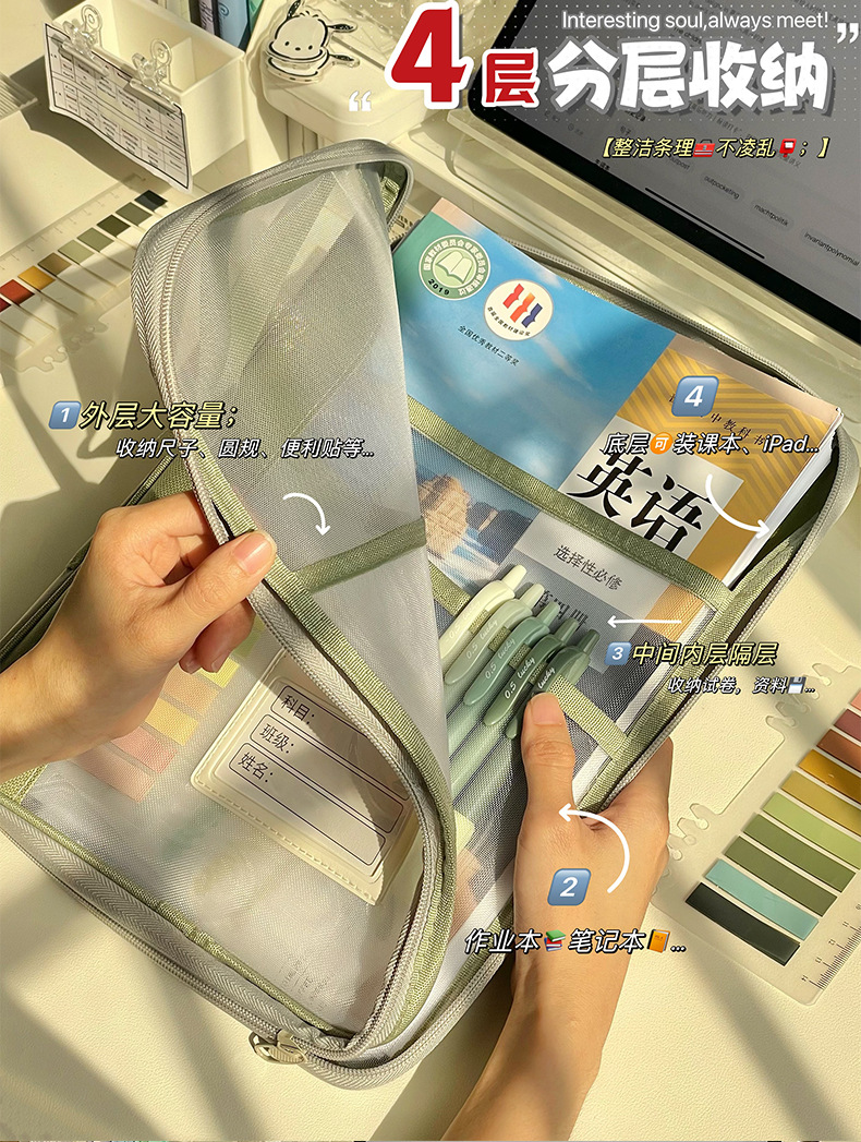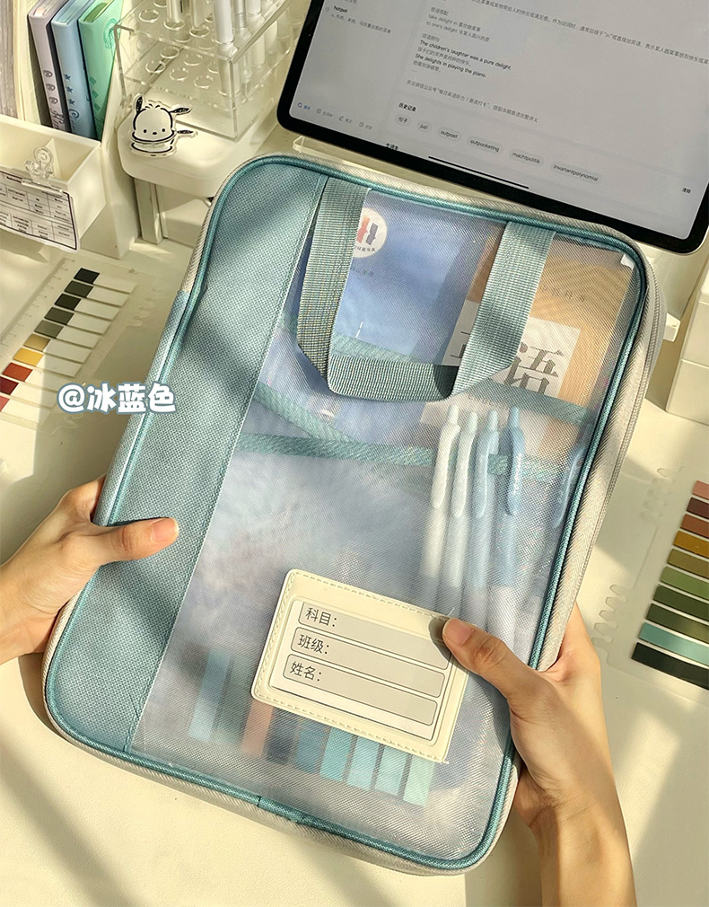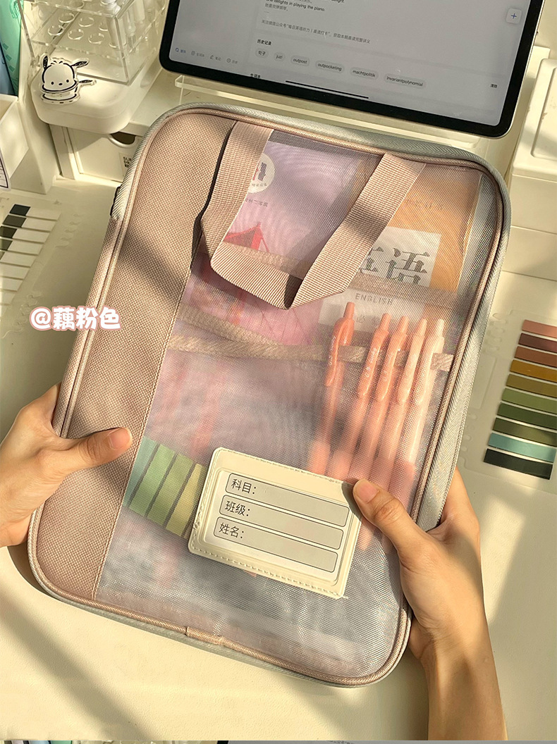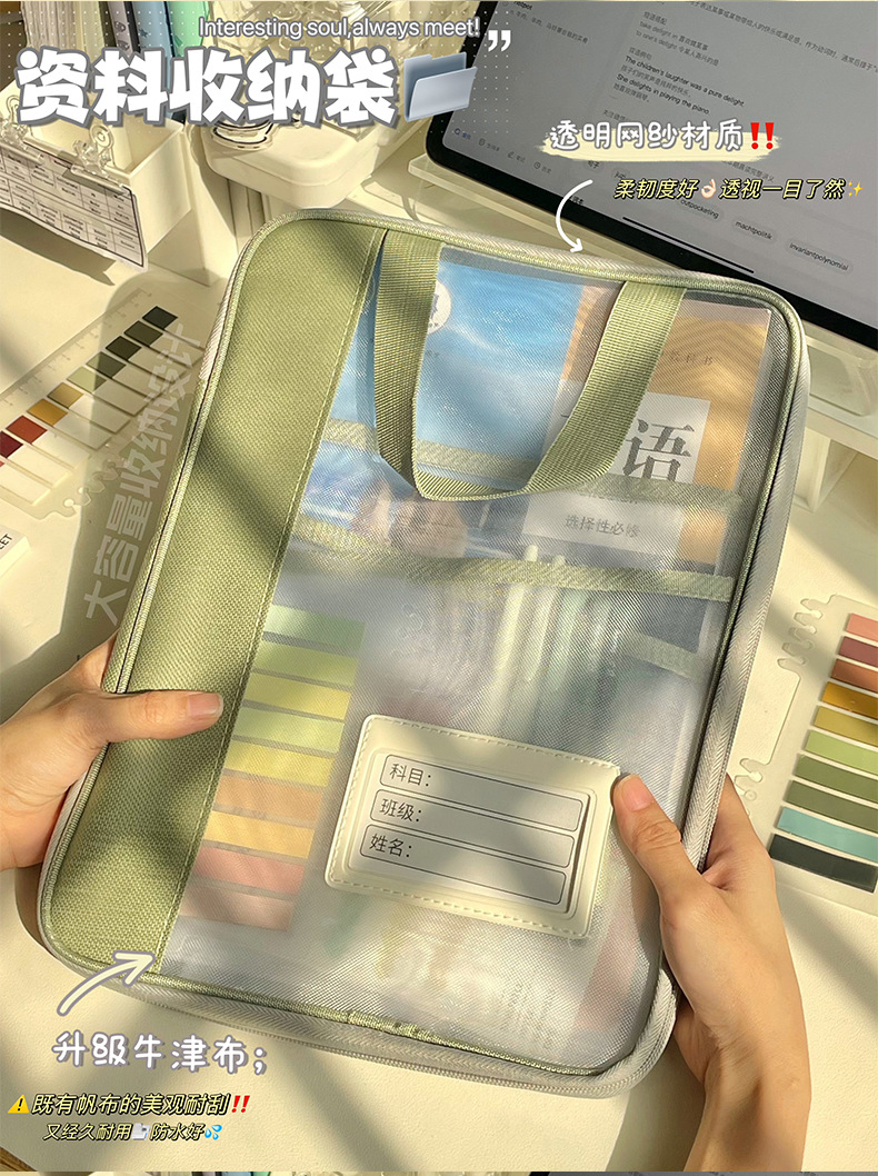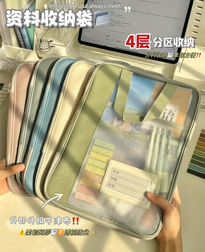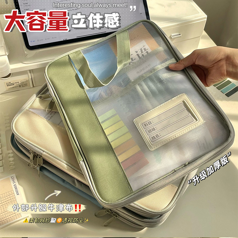 업그레이드 된 L 자형 데이터 저장 가방 A4 계층화 된 두꺼운 메쉬 파일 가방 업그레이드 된 옥스포드 천 방수 소재스토어 가기