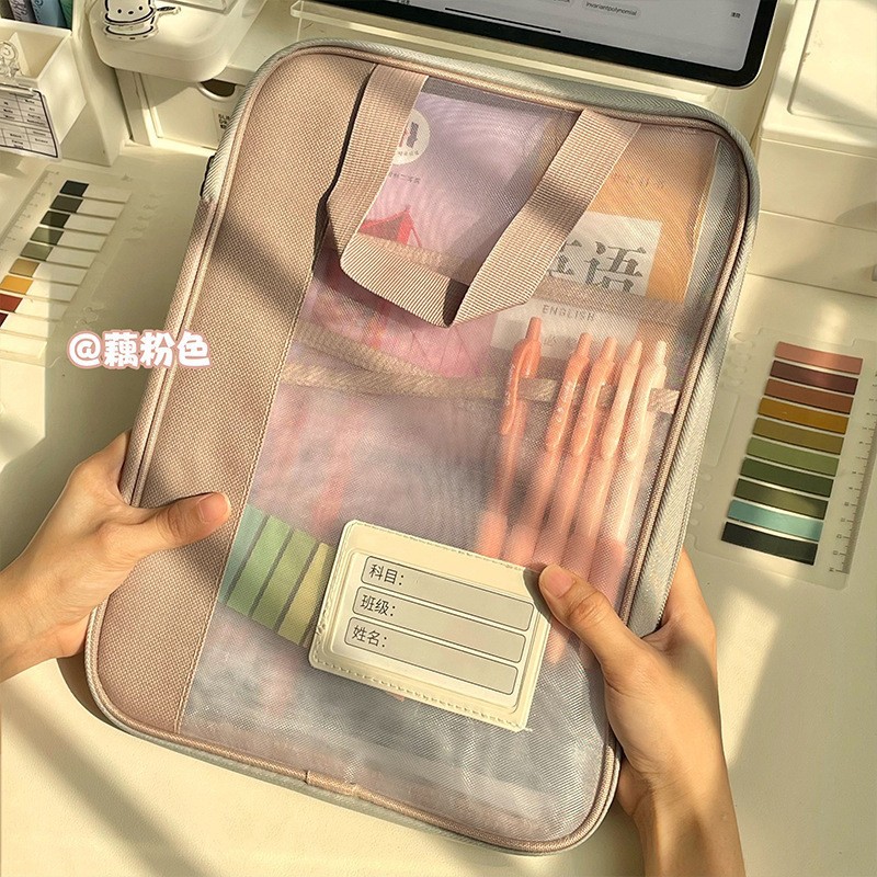 업그레이드 된 L 자형 데이터 저장 가방 A4 계층화 된 두꺼운 메쉬 파일 가방 업그레이드 된 옥스포드 천 방수 소재