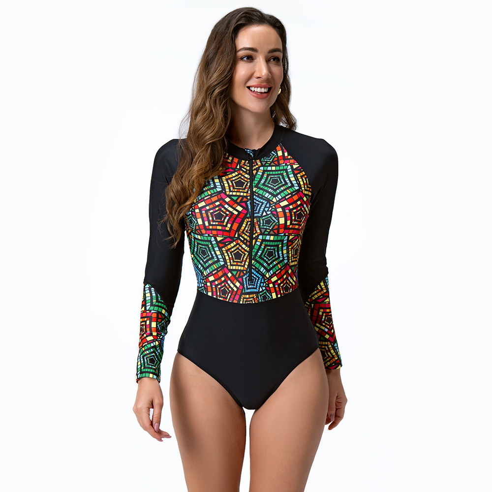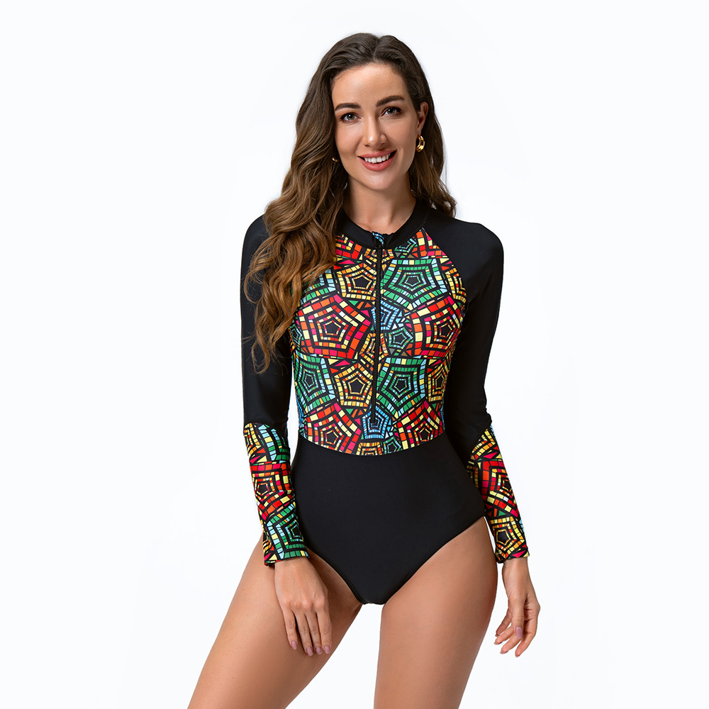 2024 유럽과 미국의 국경 간 수영복 긴팔 지퍼 서핑 세트 다이빙 세트 여성 수영복 비키니