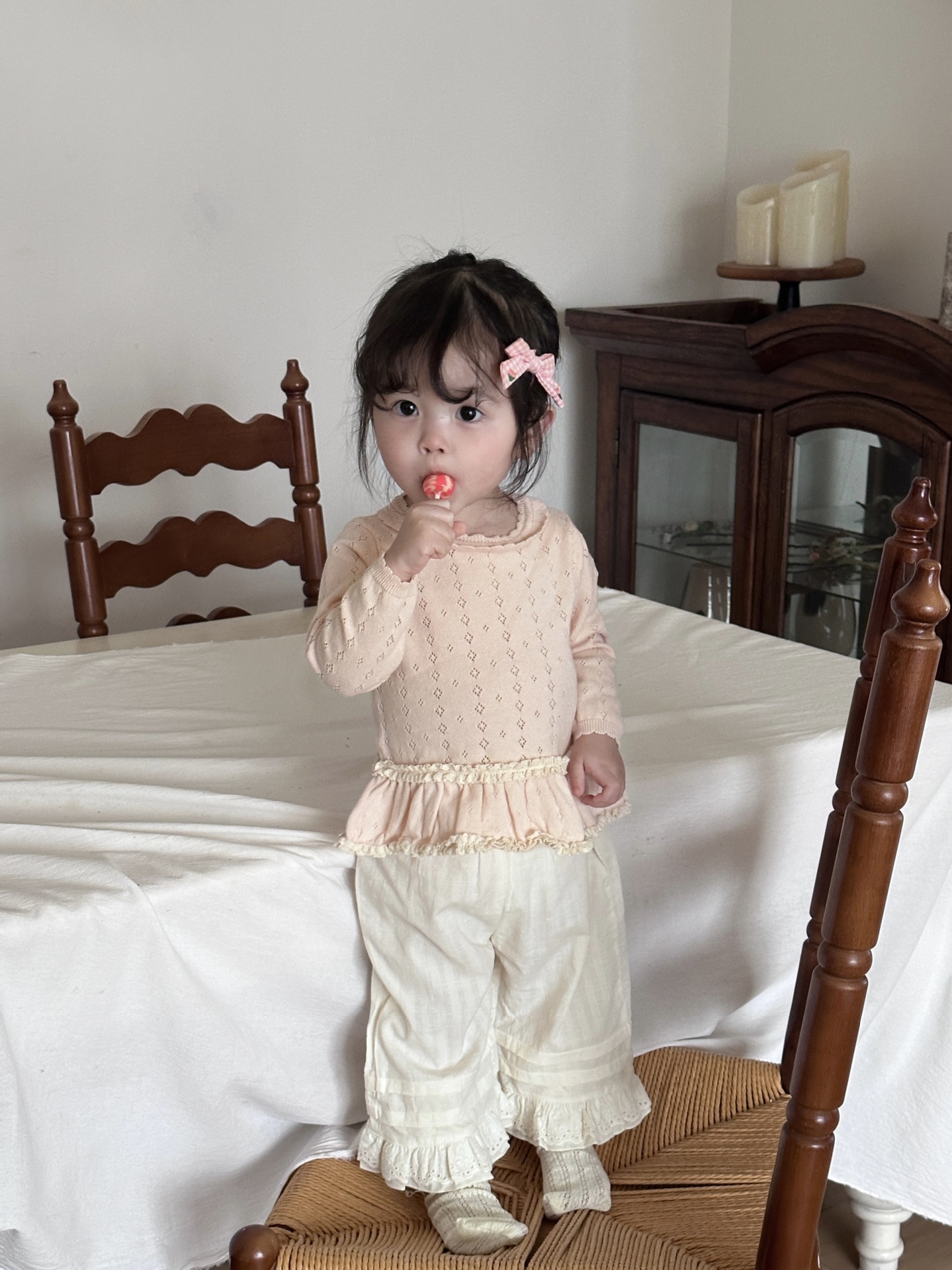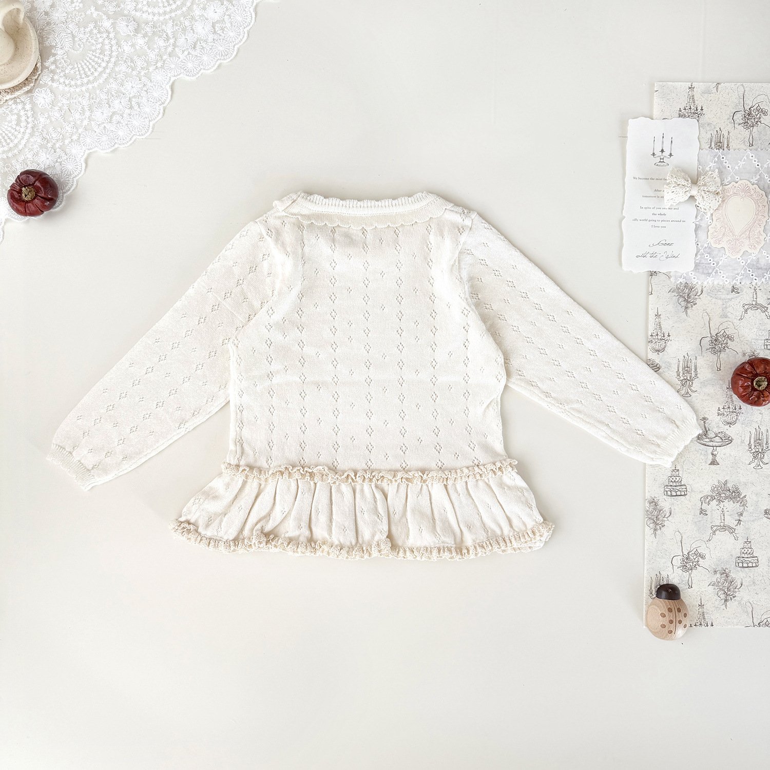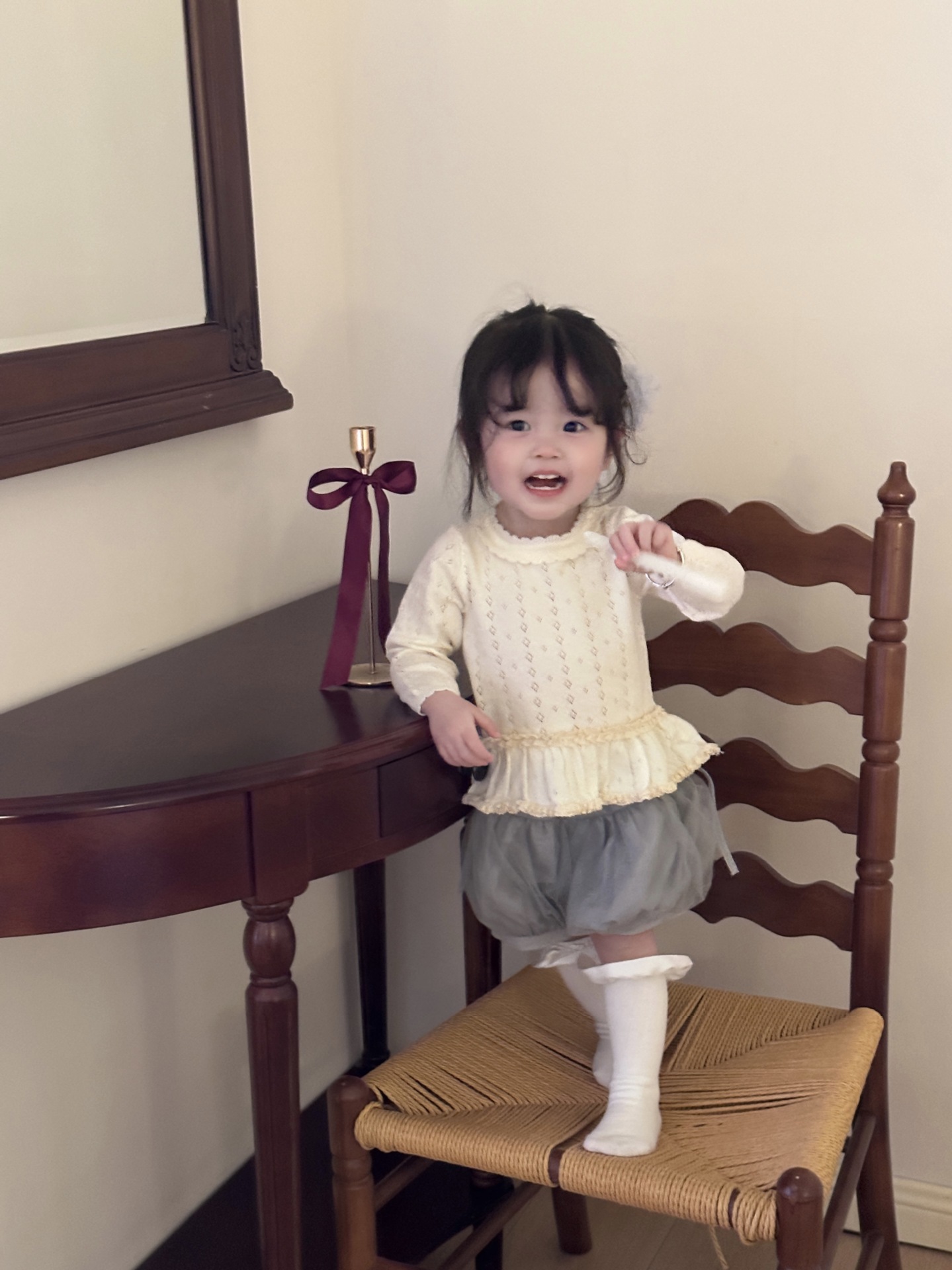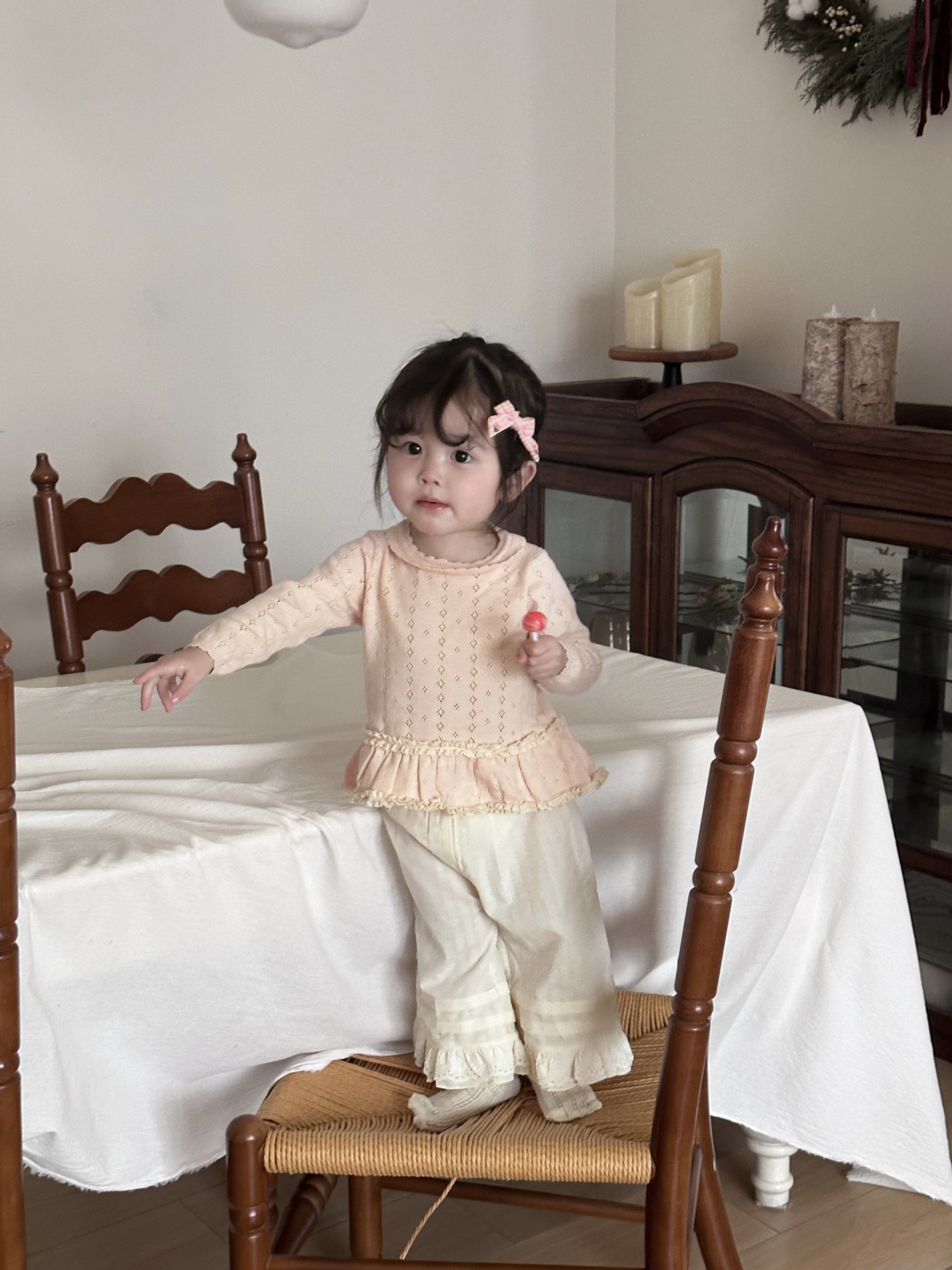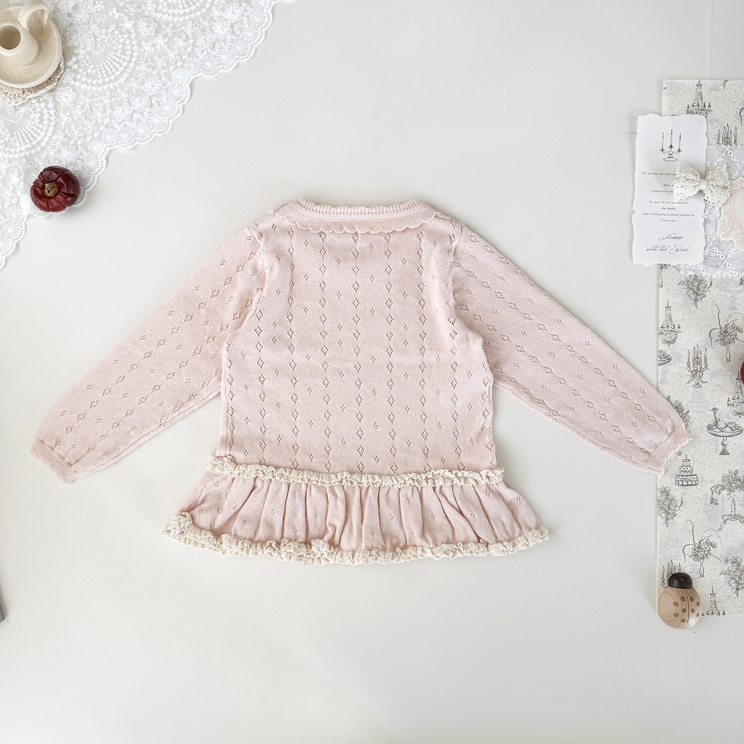 커틀리 스프링 인 베이비 소녀 풀오버 크루 넥 탑 여성용 보물 중공 레이스 스윙 긴 소매 얇은 스웨터스토어 가기