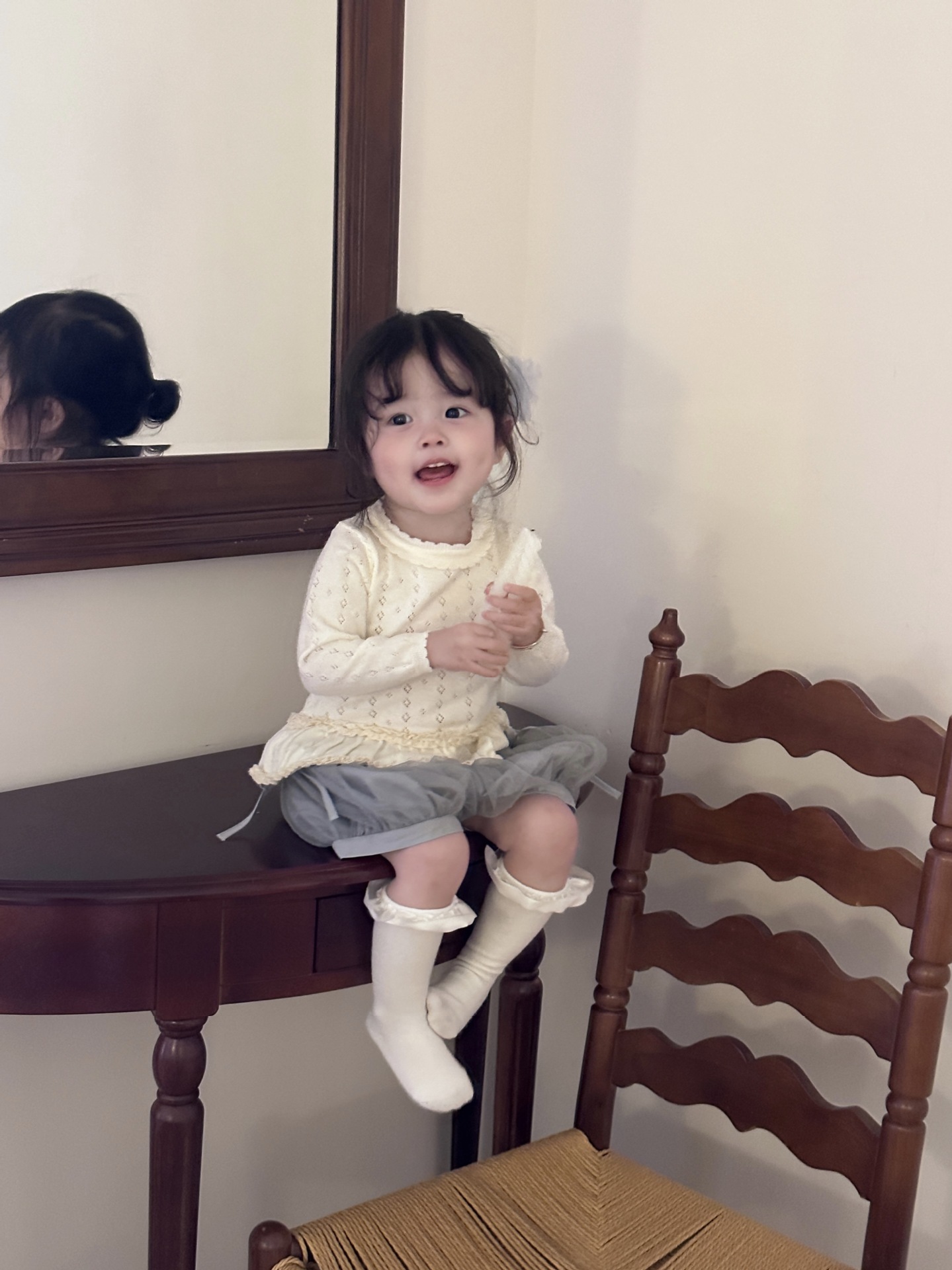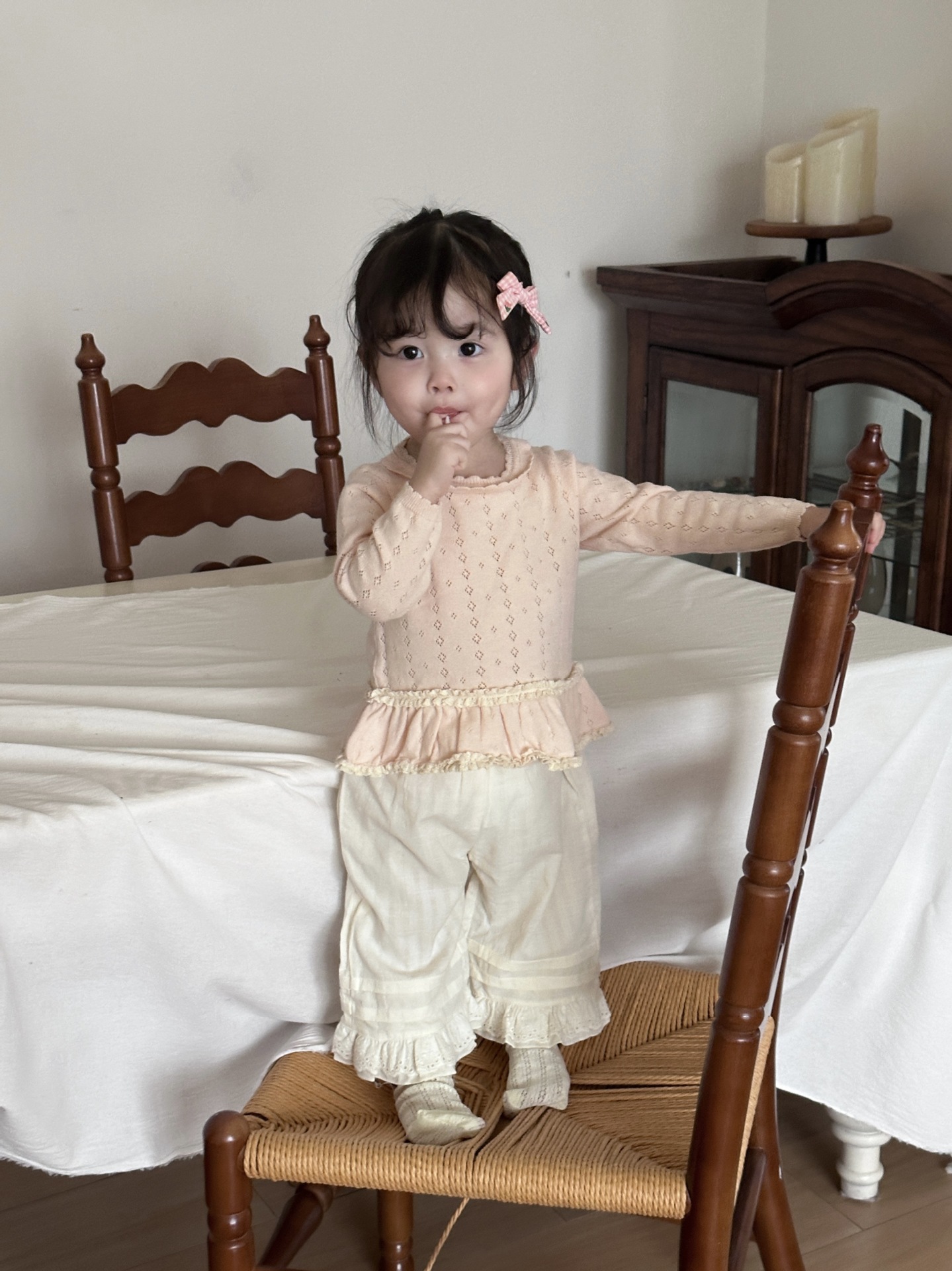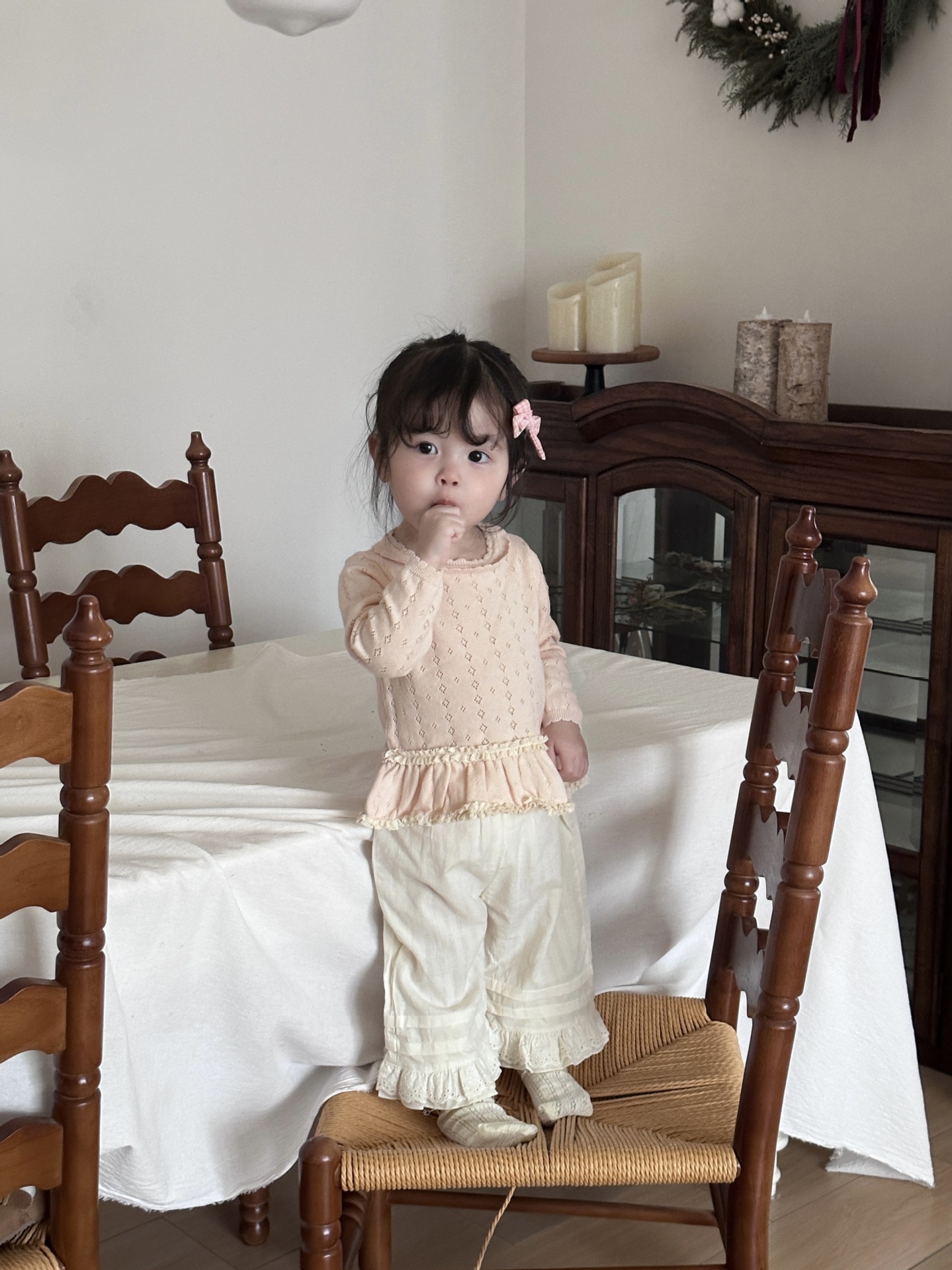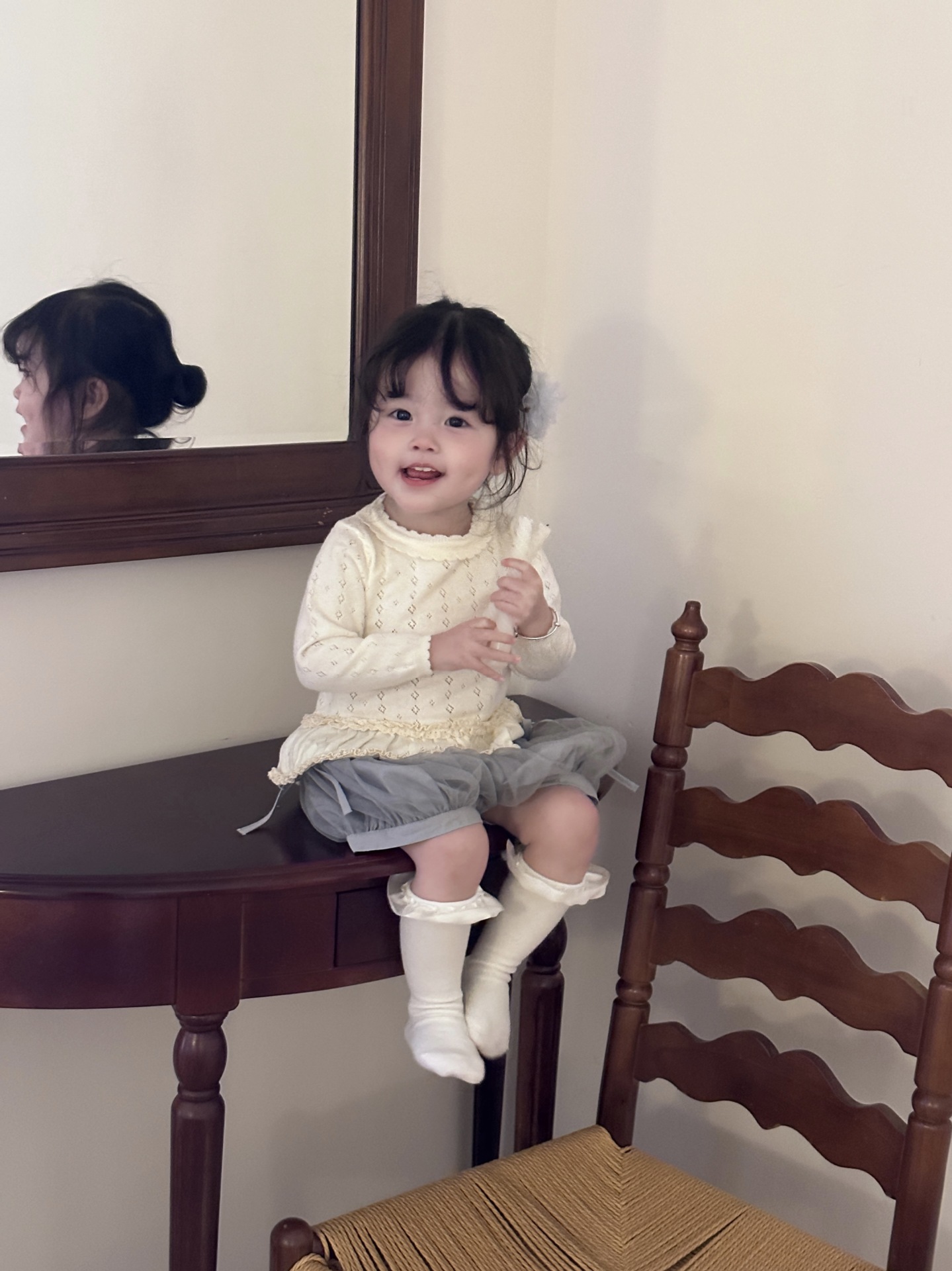 커틀리 스프링 인 베이비 소녀 풀오버 크루 넥 탑 여성용 보물 중공 레이스 스윙 긴 소매 얇은 스웨터스토어 가기