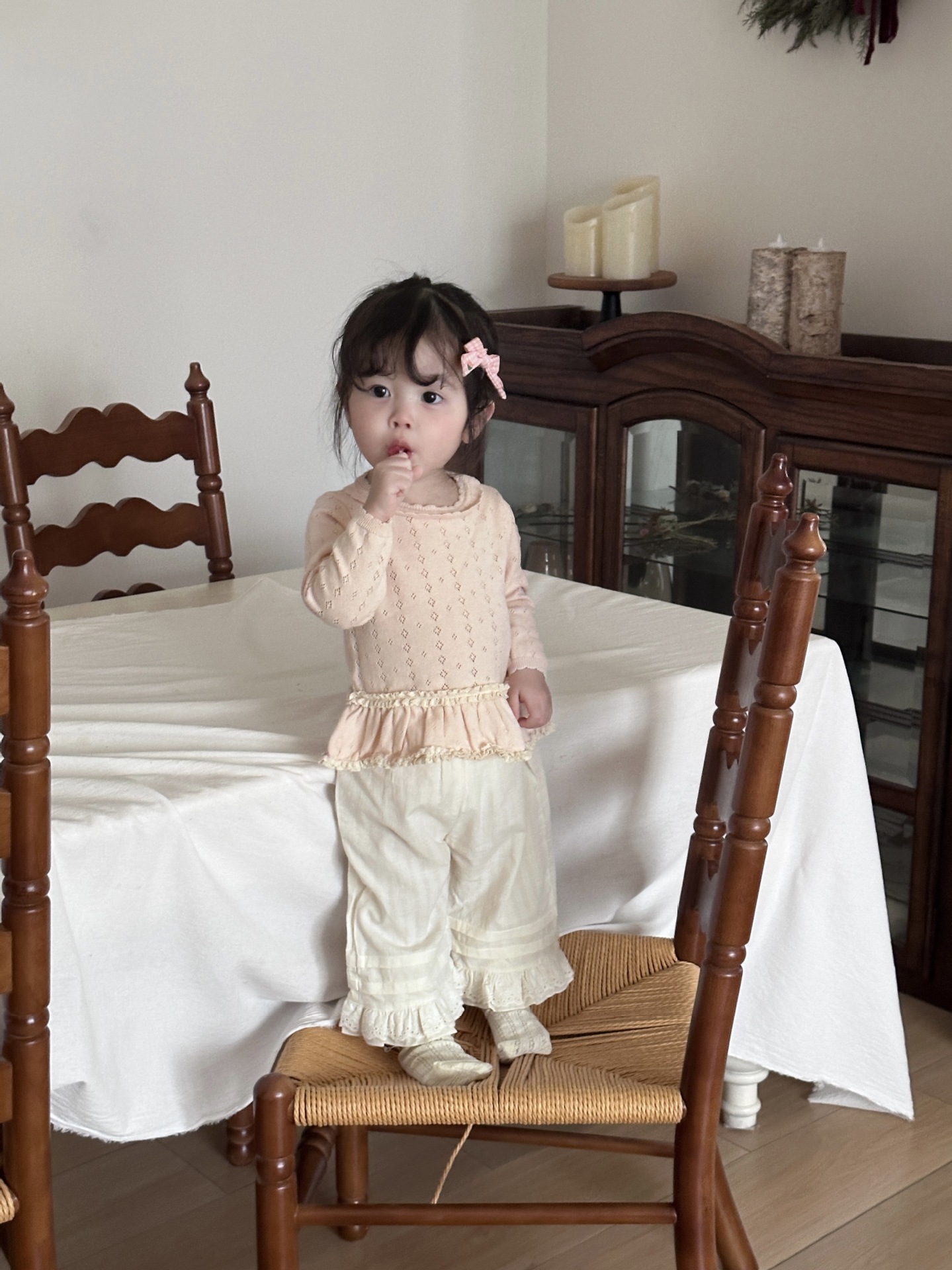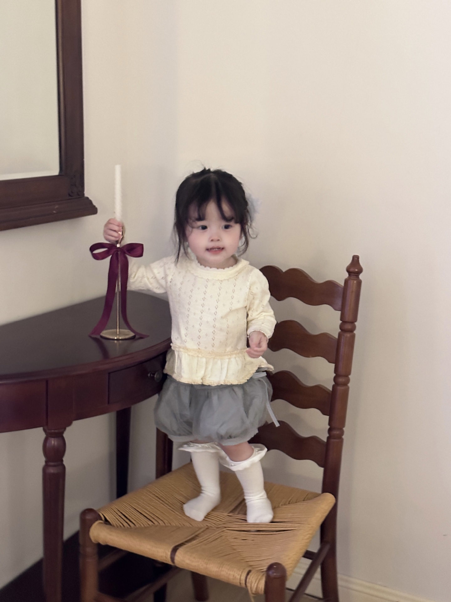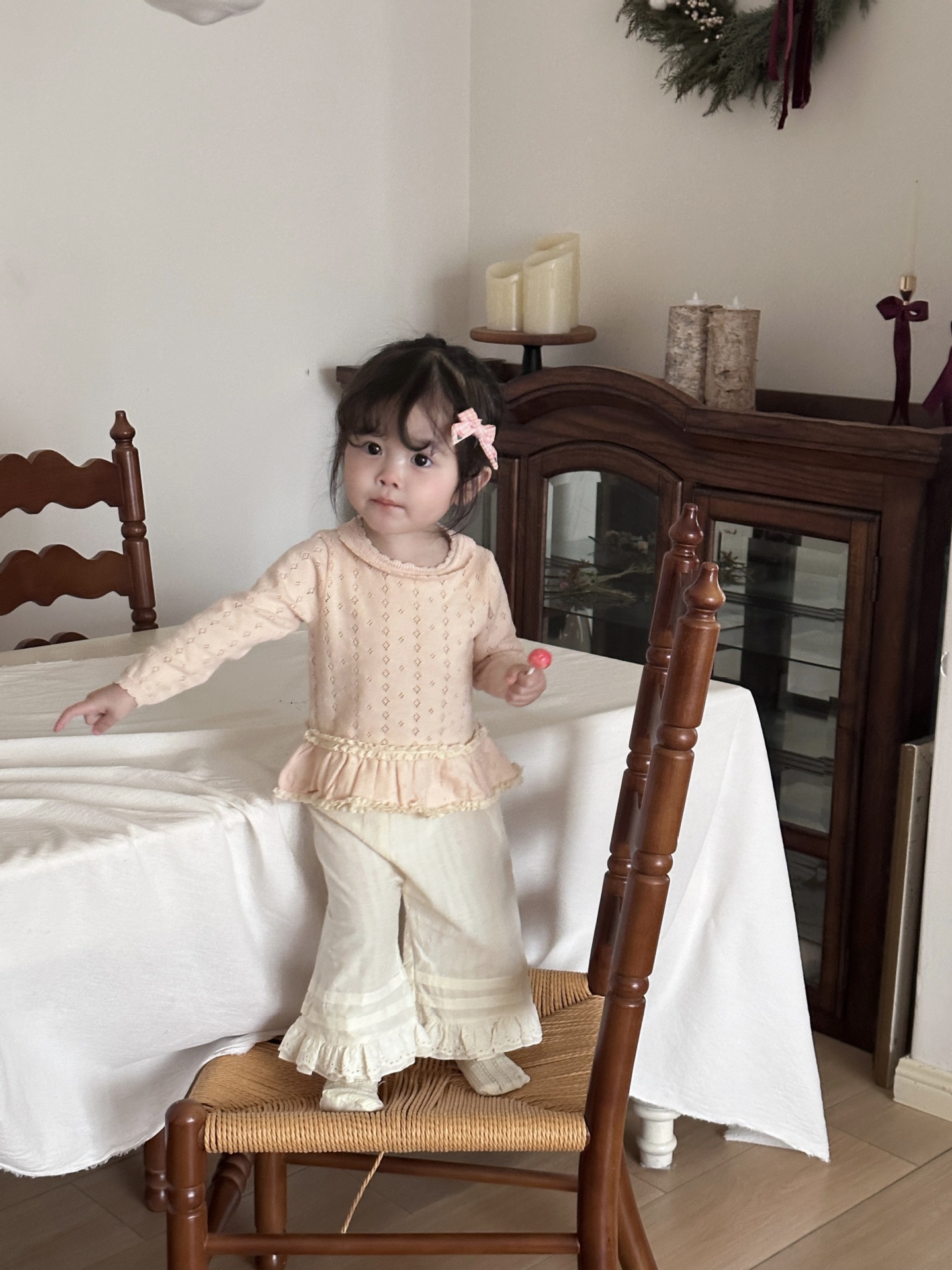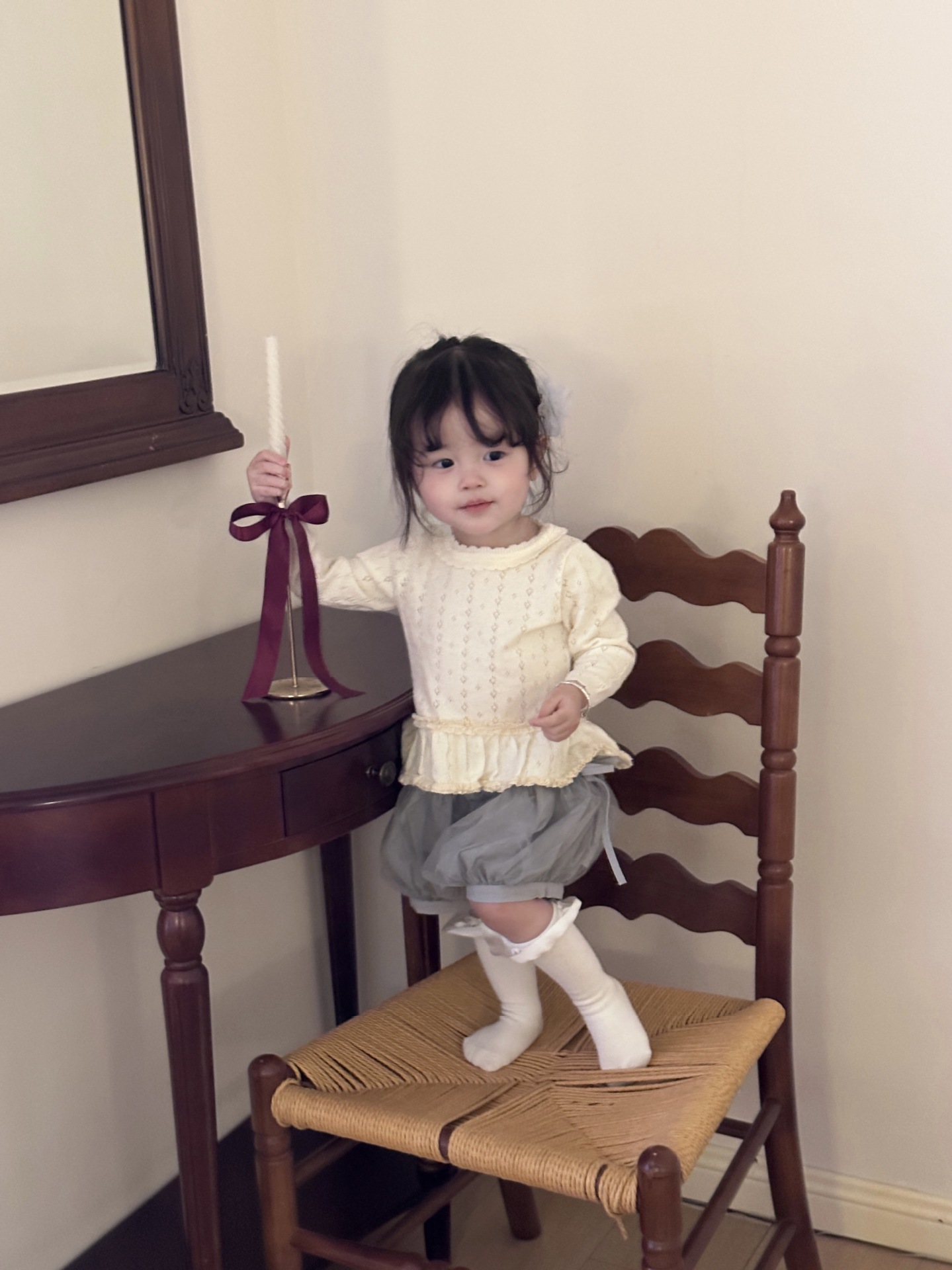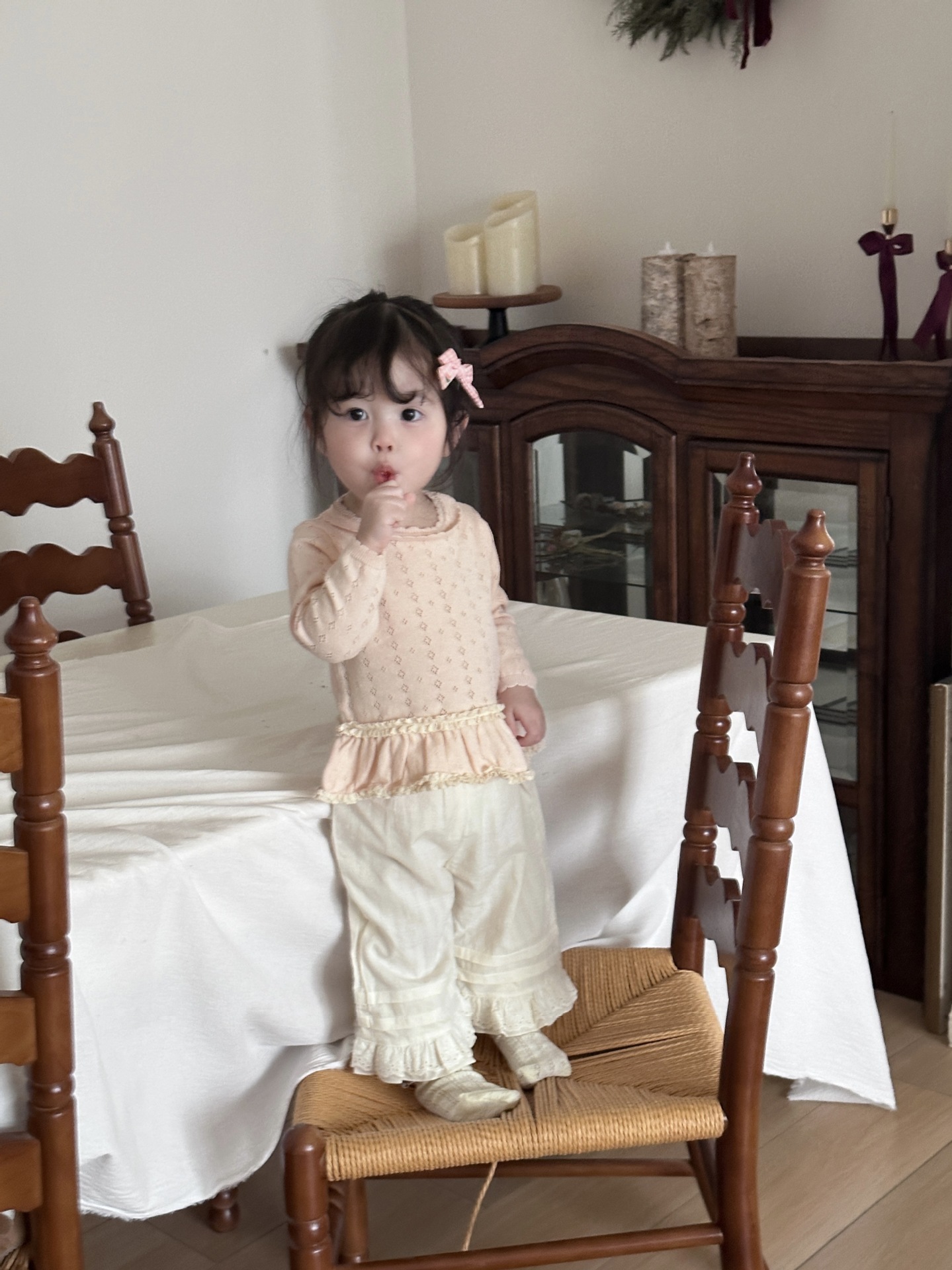 커틀리 스프링 인 베이비 소녀 풀오버 크루 넥 탑 여성용 보물 중공 레이스 스윙 긴 소매 얇은 스웨터스토어 가기