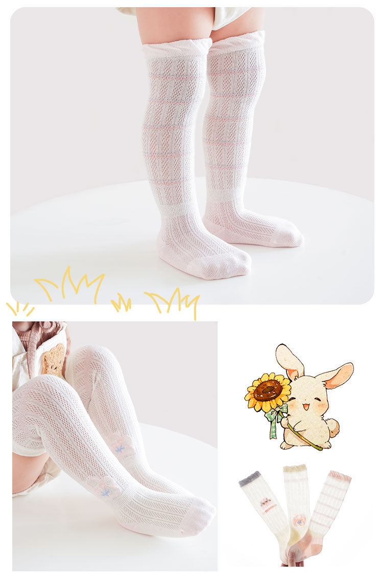아기 높은 스타킹 25 봄과 여름 메쉬 만화 토끼 아기 스타킹 얇은 뼈없는 어린이의 항균 무릎 양말