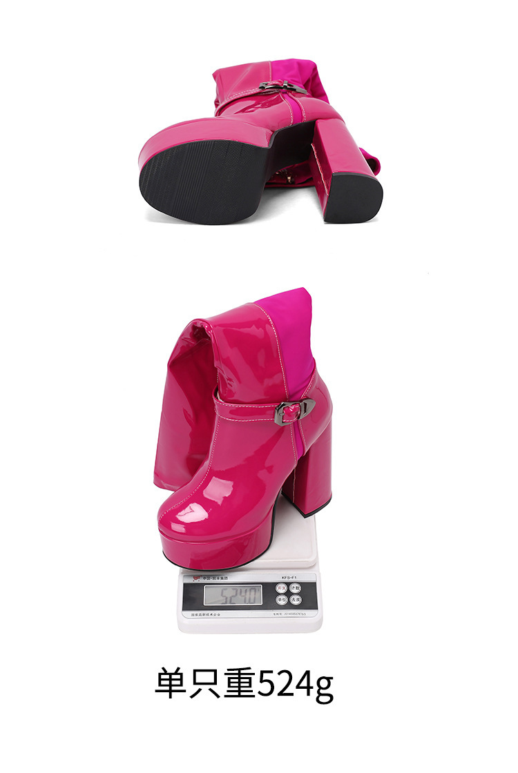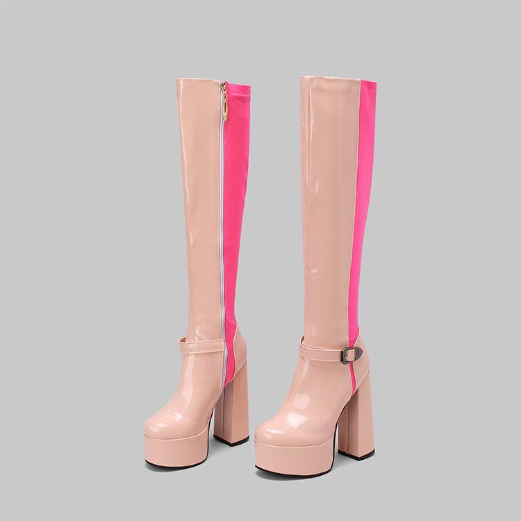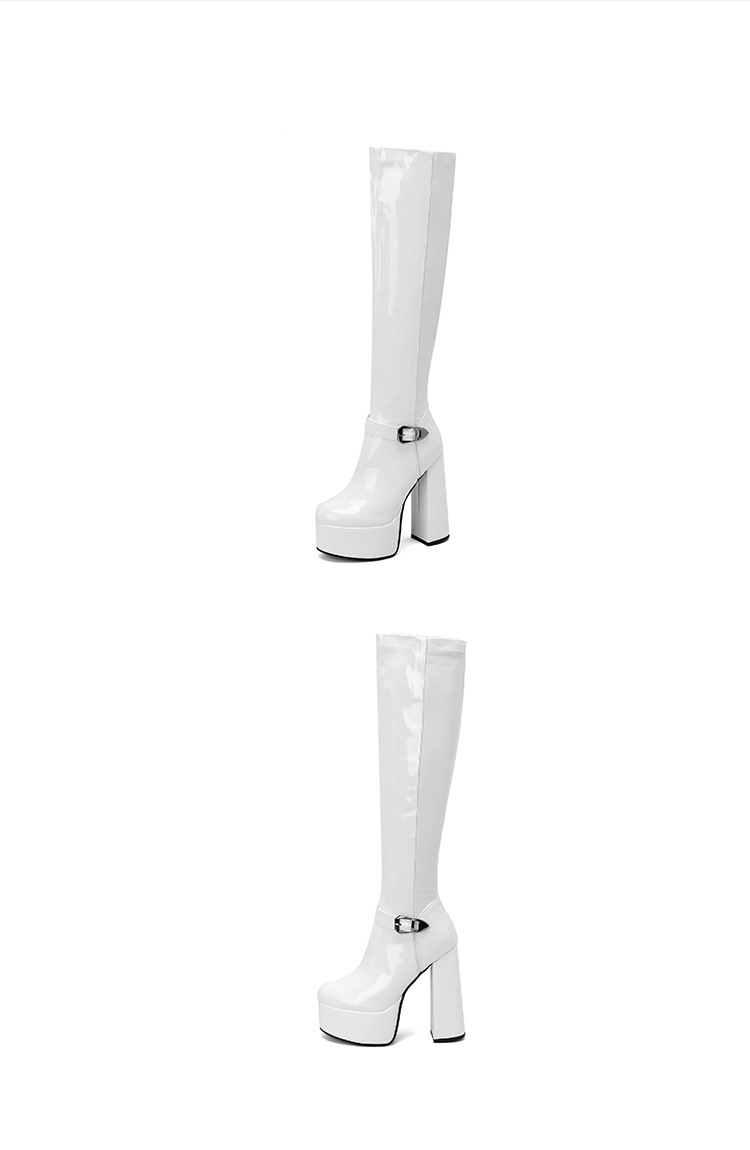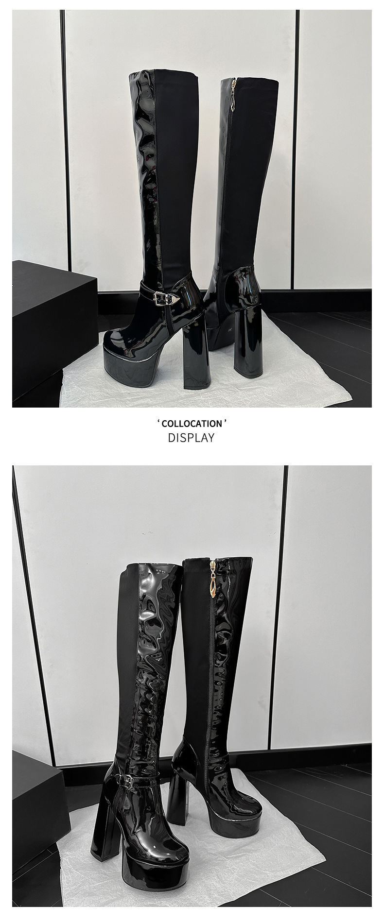 2024 가을과 겨울 새 부츠 여성이지만 두꺼운 무릎 하이힐 두꺼운 바닥 색상과 어울리는 달콤한 댄스 벨트 버클 나이트 부츠 여성