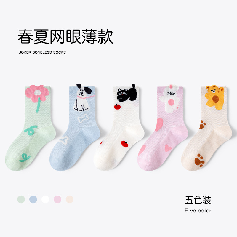 소년과 소녀를위한 어린이 양말 봄과 여름 메시 뼈없는 순수한 빗 코튼 얇은 중형 어린이 냄새 방지 양말