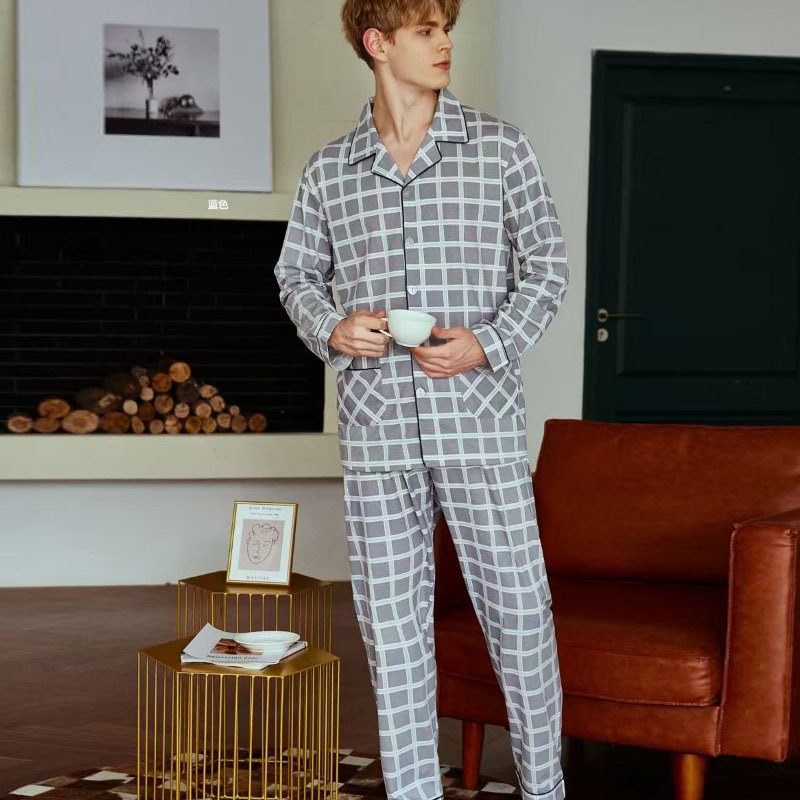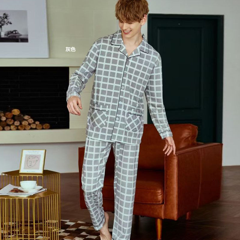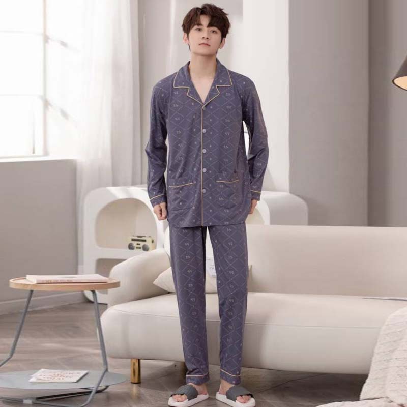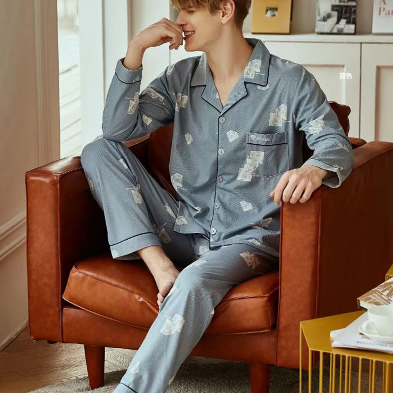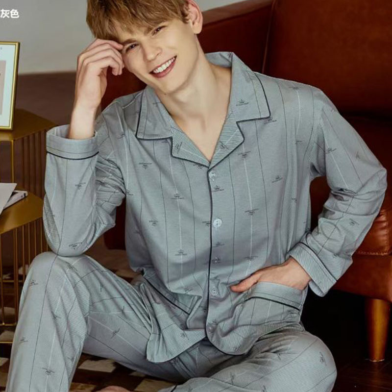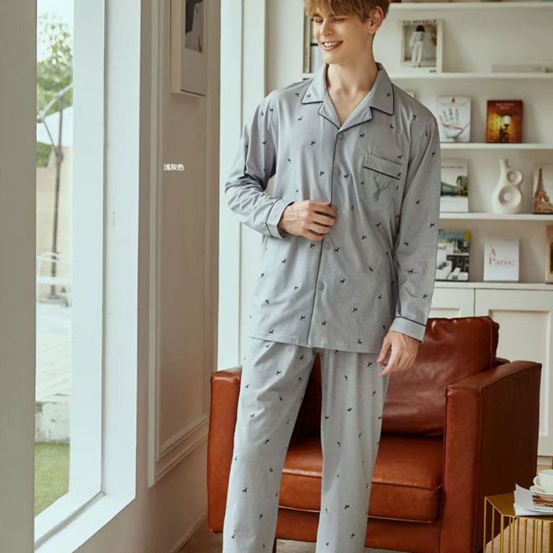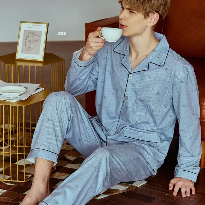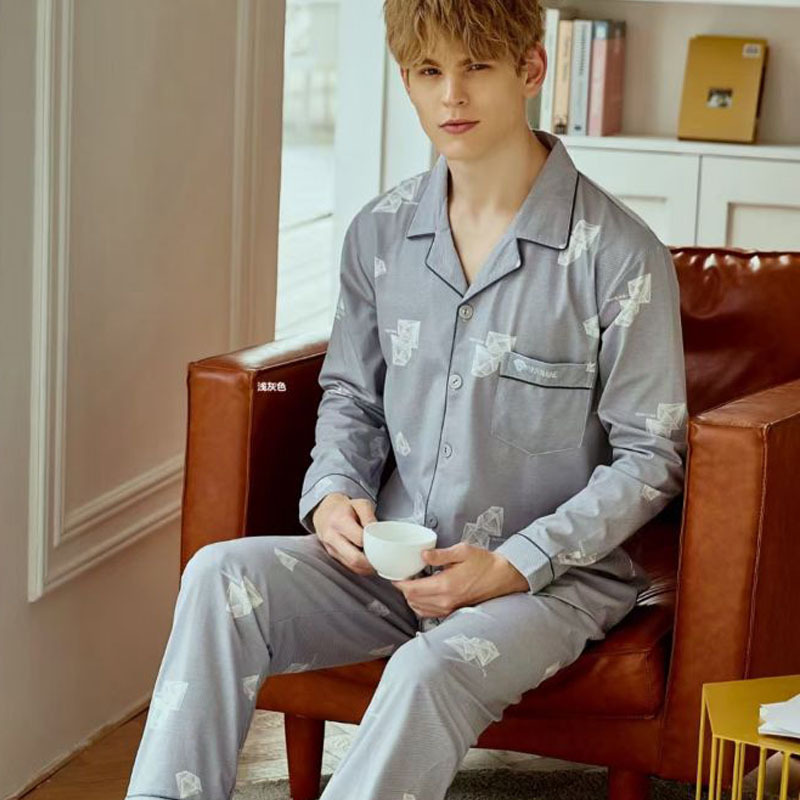 빗질 풀업 코튼 차드 긴팔 바지 25 개의 새로운 패션 세트 파자마 남성 더블 롱 카디건 홈 의류스토어 가기