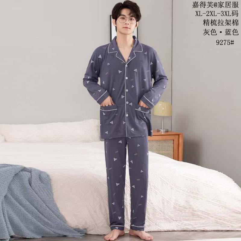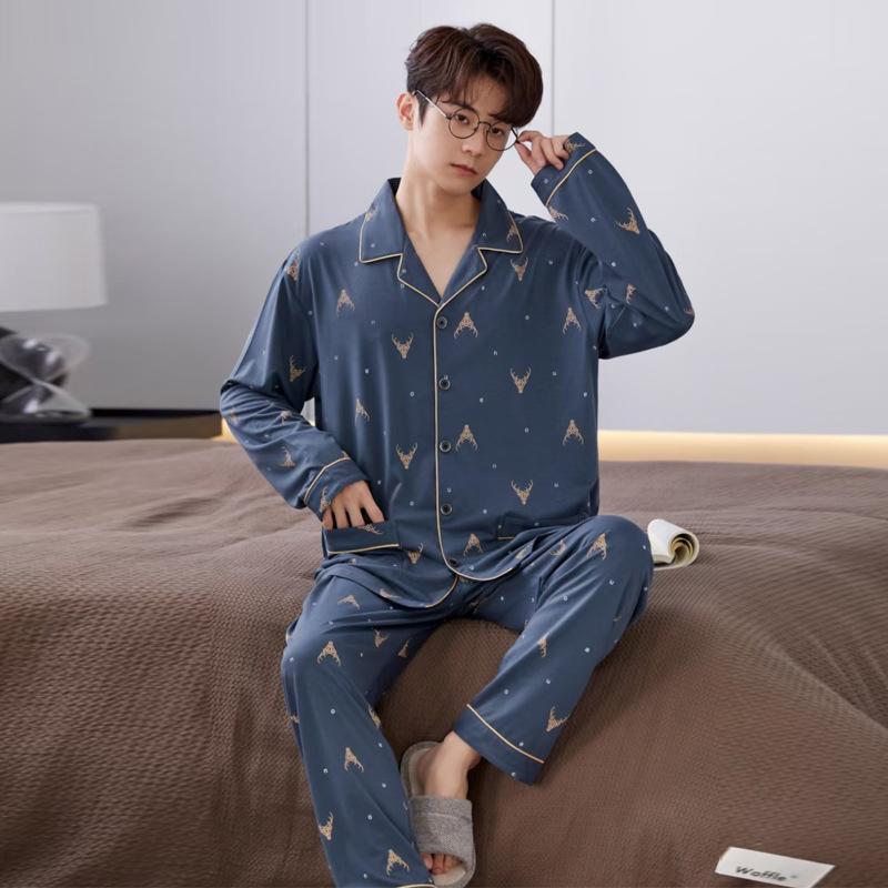 빗질 풀업 코튼 차드 긴팔 바지 25 개의 새로운 패션 세트 파자마 남성 더블 롱 카디건 홈 의류