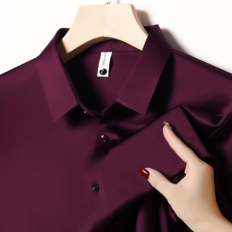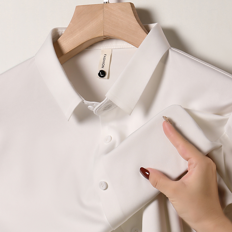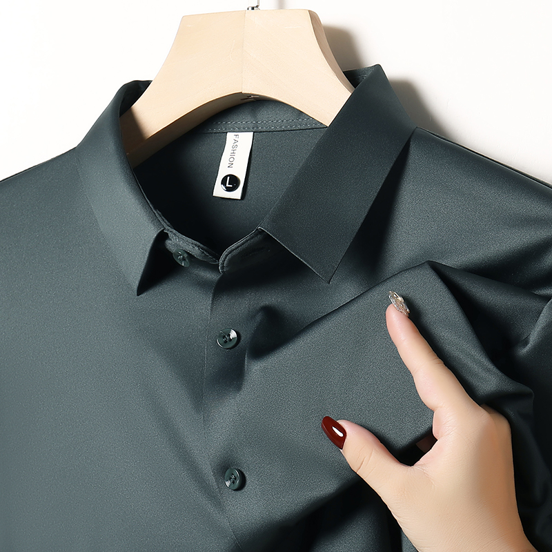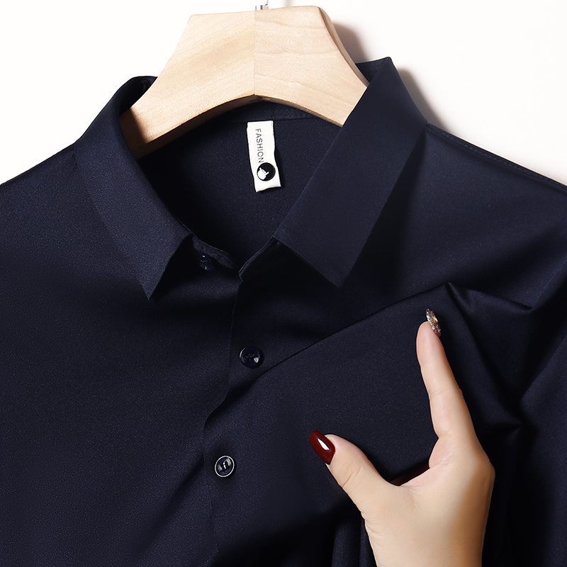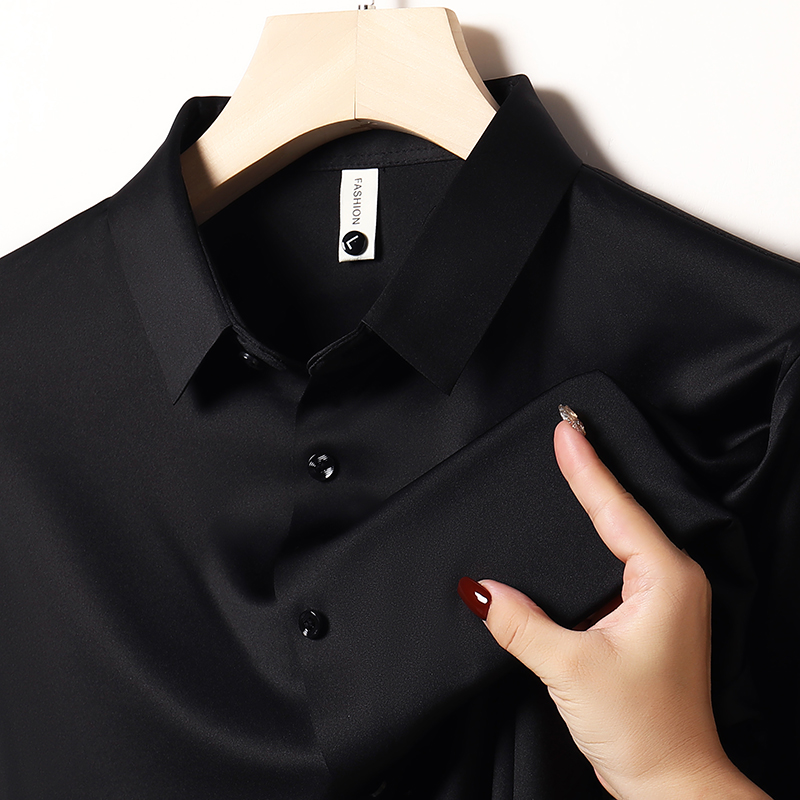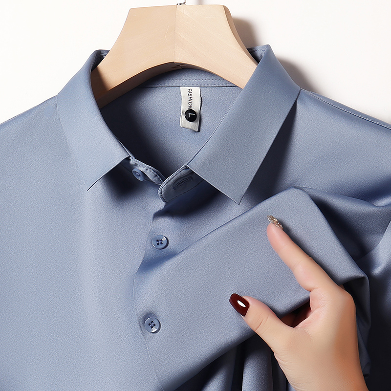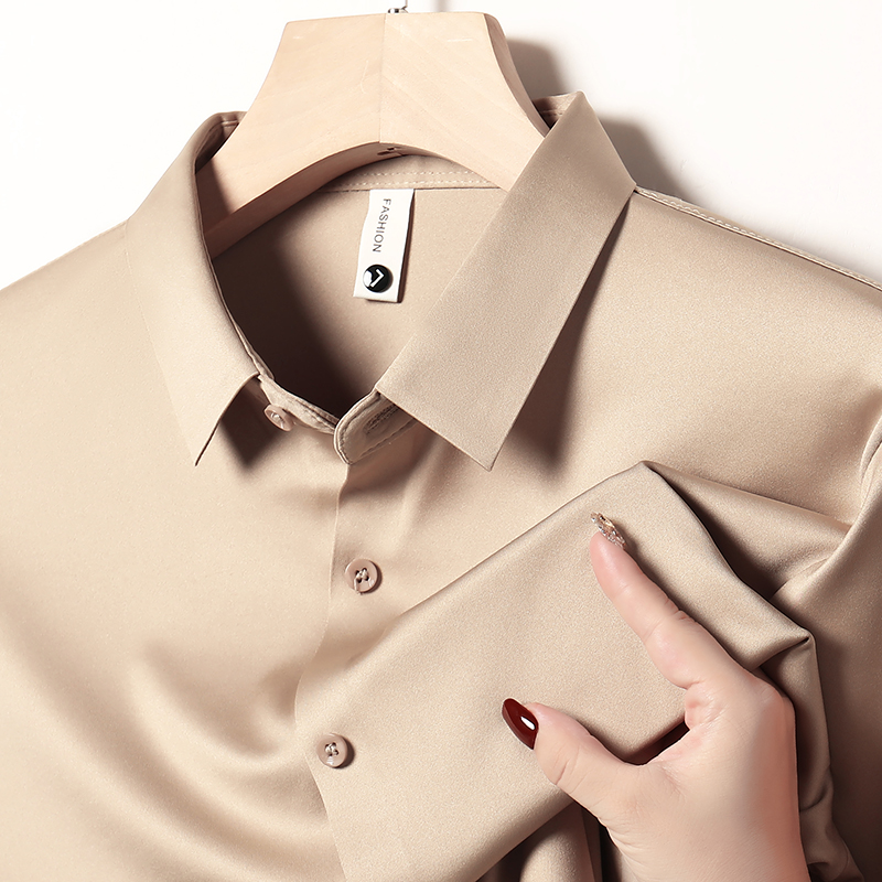 Hengyuanxiang 멀버리 실크 노 아이리스 심리스 셔츠 남성용 긴팔 봄, 가을 탑 비즈니스 캐주얼 솔리드 컬러 드레이프 셔츠 남성용