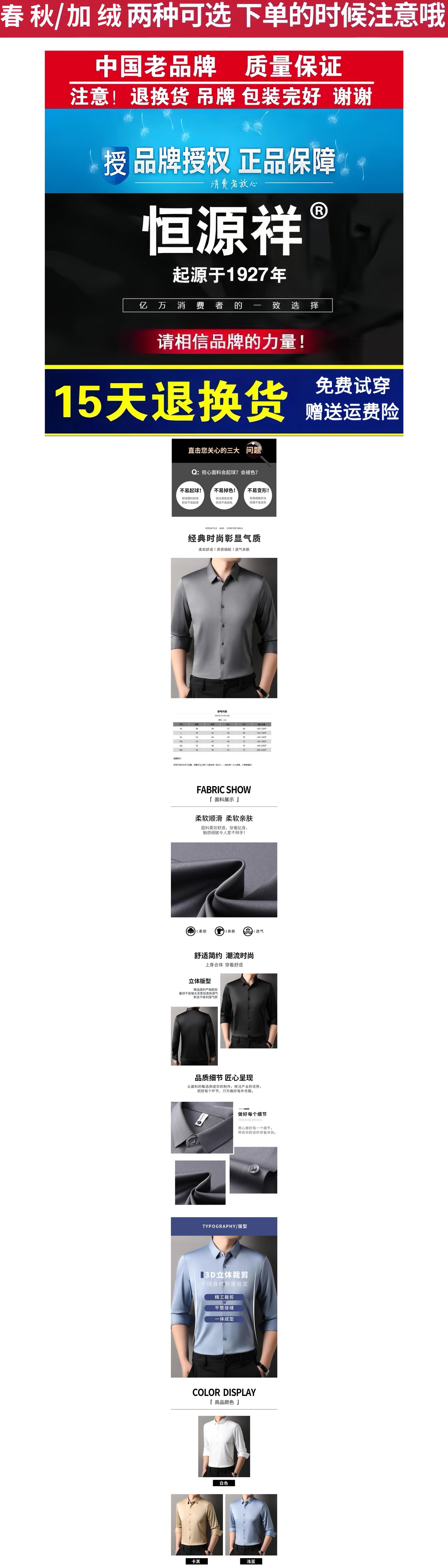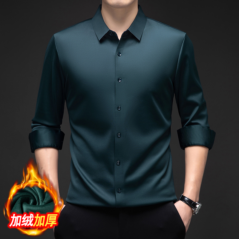 Hengyuanxiang 멀버리 실크 노 아이리스 심리스 셔츠 남성용 긴팔 봄, 가을 탑 비즈니스 캐주얼 솔리드 컬러 드레이프 셔츠 남성용스토어 가기