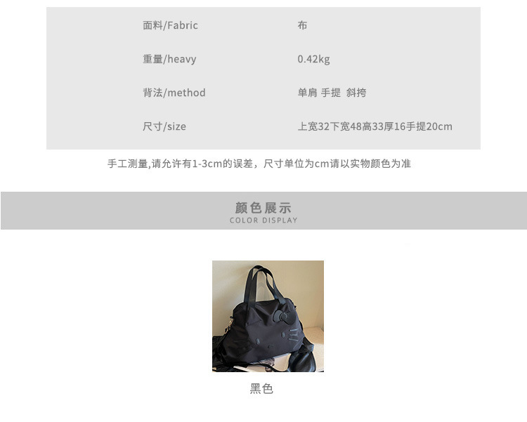 大容量短途旅行袋KT出差行李包休闲托特包单肩包可套拉杆箱手提包