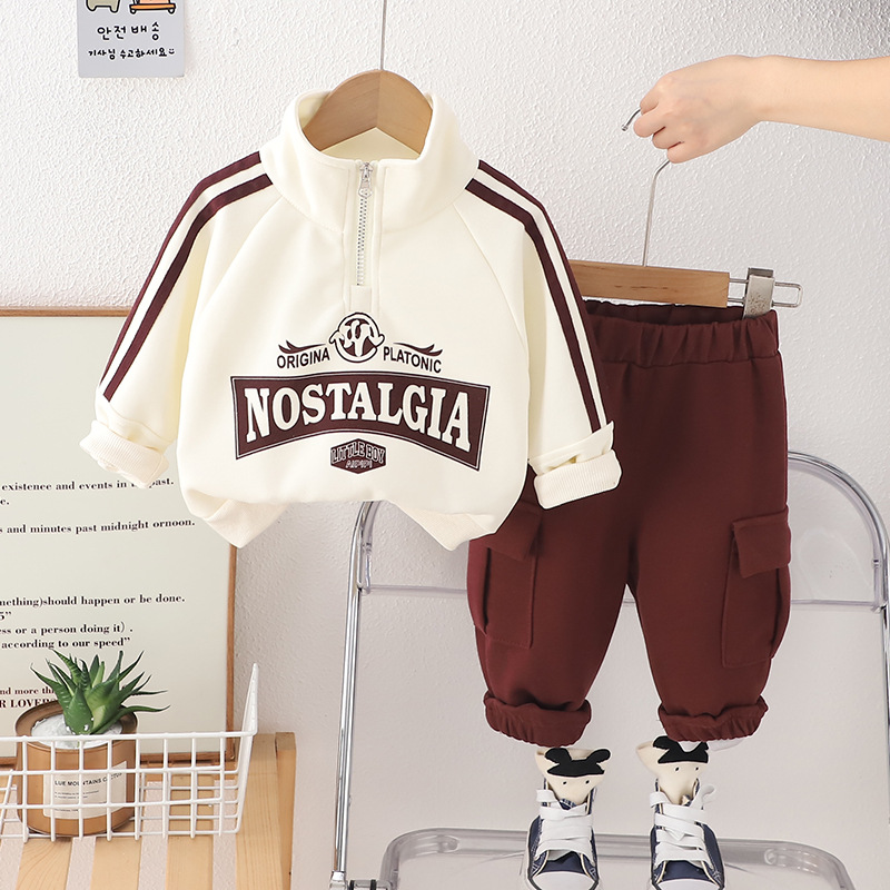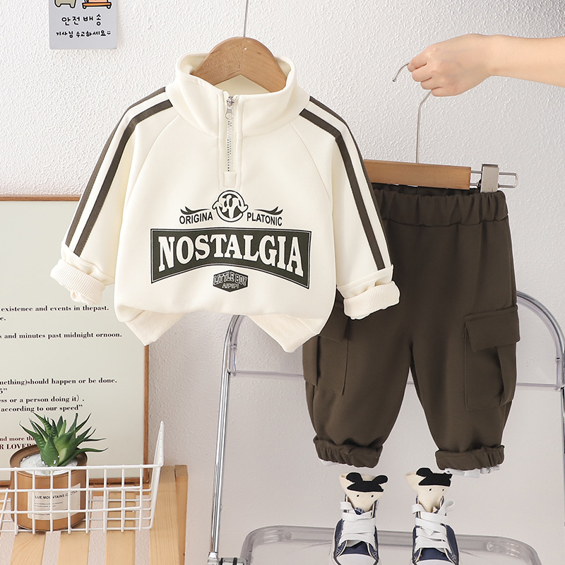 2025 년 어린이 잘 생긴 반 지퍼 입체 스웨터 세트 2025 년 봄과 가을 새로운 소년 소녀 레저 스포츠 봄 의류스토어 가기